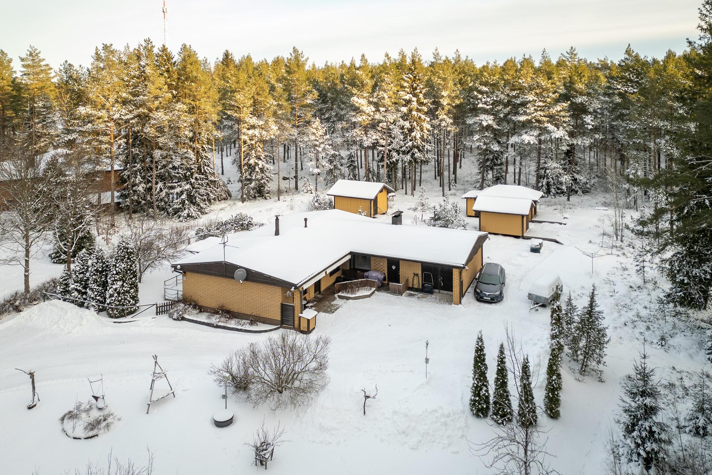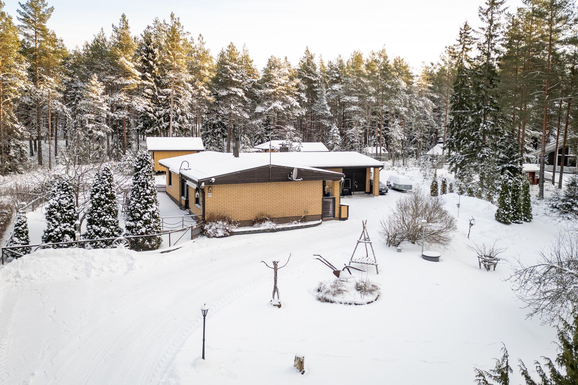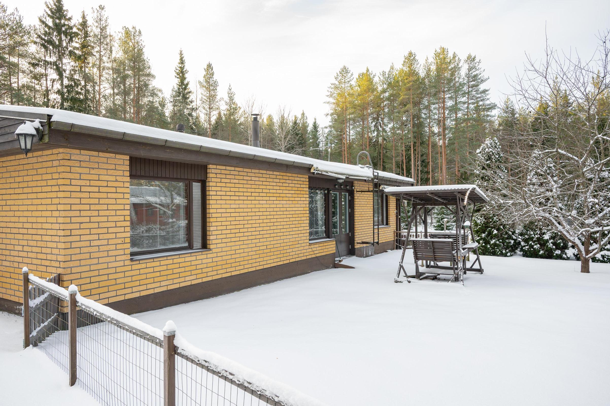 Yhteen tasoon rakennettu talo on valmistunut vuonna 1979 ja asuintilaa löytyy 119 neliötä. Huonejako on selkeä ja kodin sydän muodostuu olohuoneen ja ruokailutilan kokonaisuudesta, johon varaava takka tuo lämpöä sekä tunnelmaa. Keittiössä on kaikki tarpeellinen arjen ruoanlaittoon ja kodin tilat on suunniteltu toimiviksi perheen tarpeisiin. Käytännölliset säilytystilat sekä useat erilliset piharakennukset helpottavat arjen järjestelyjä.