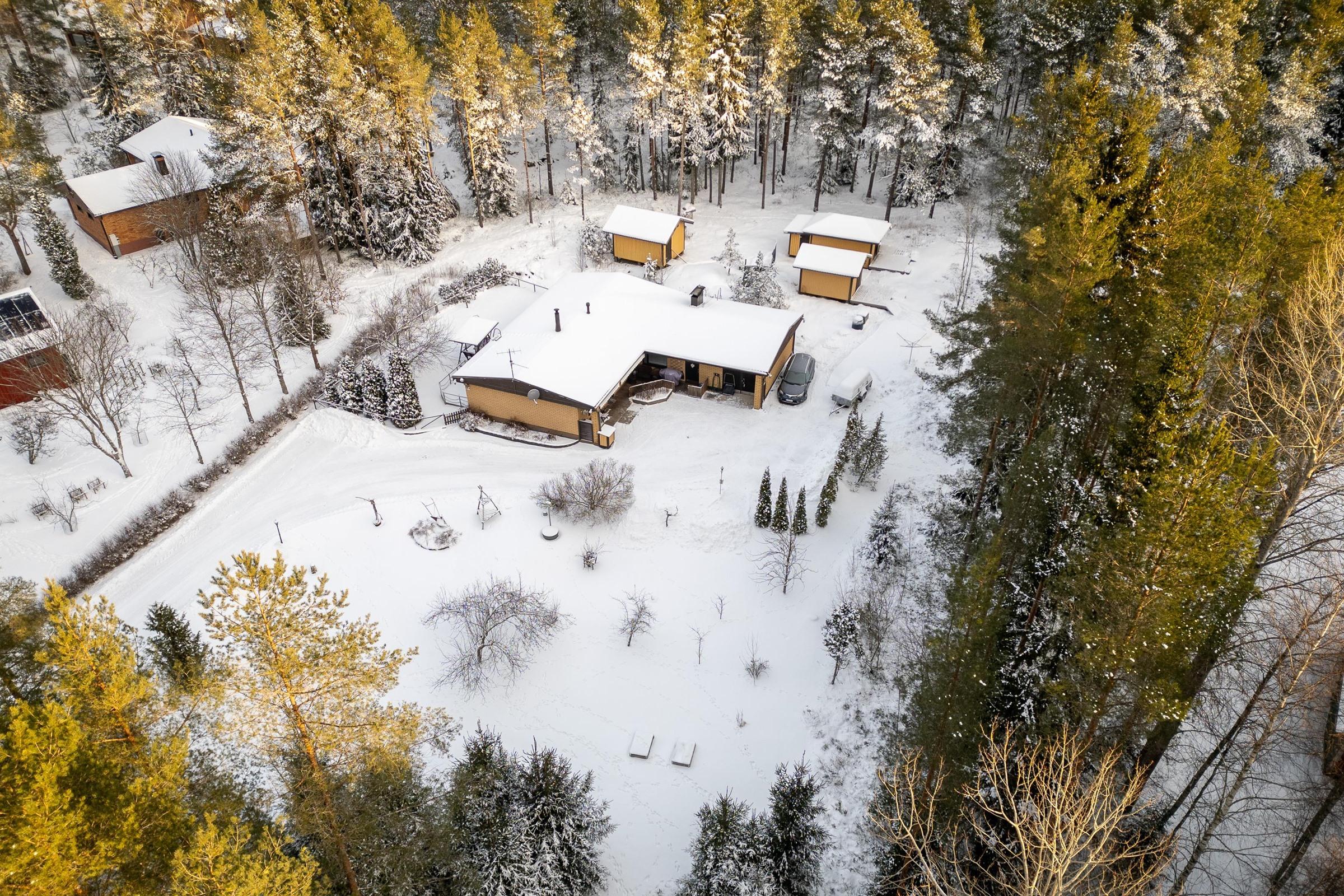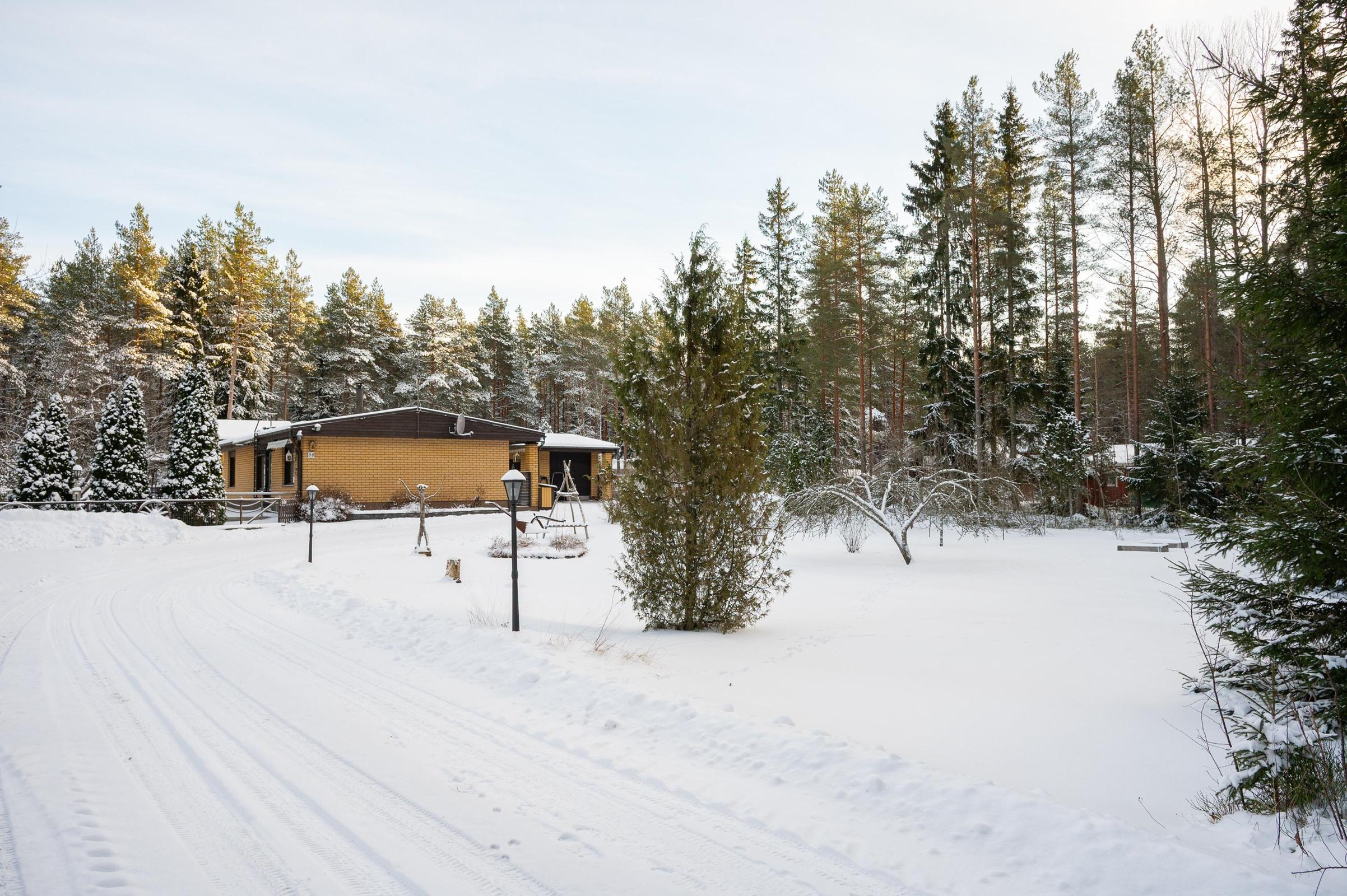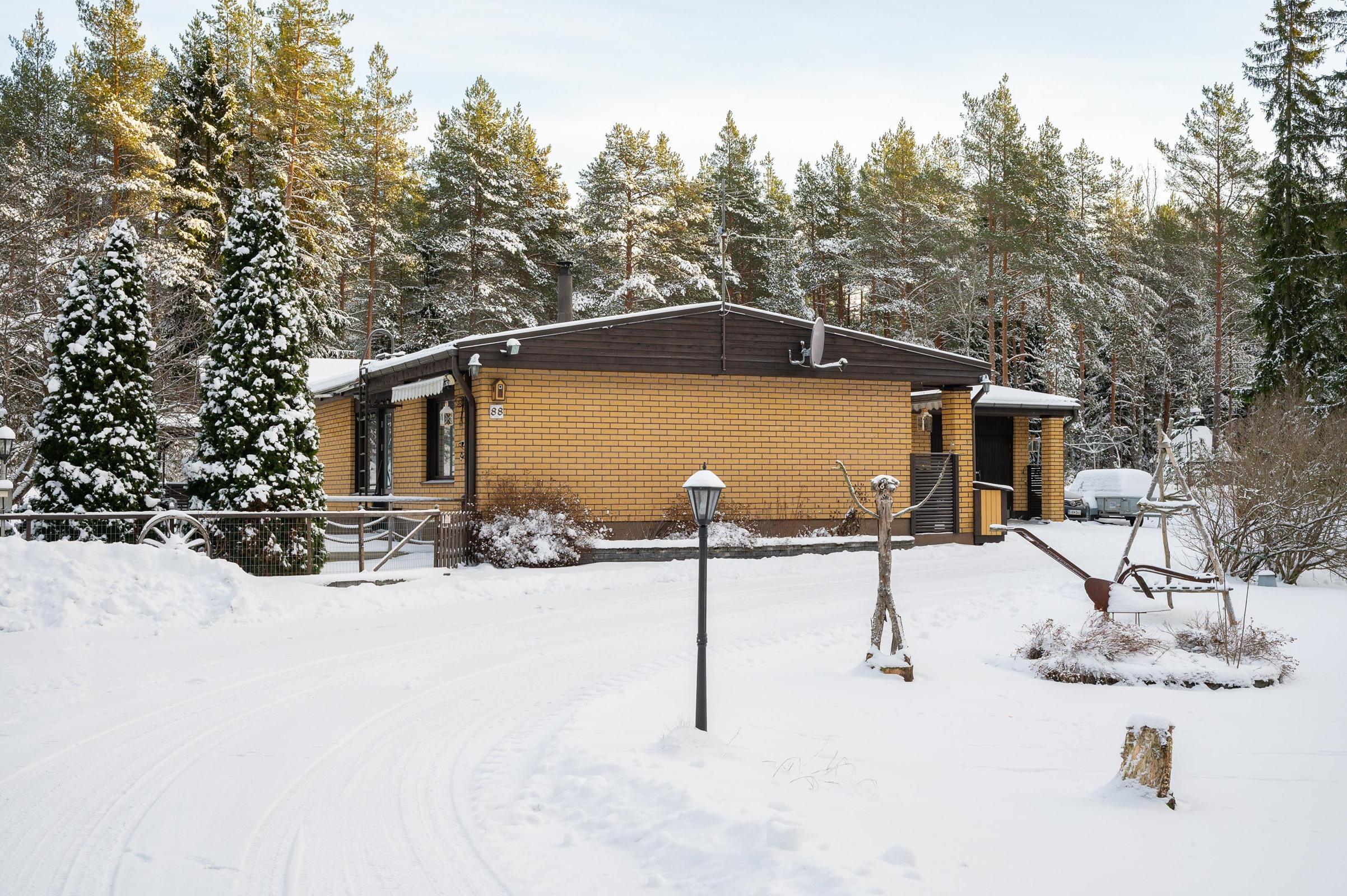 Yhteen tasoon rakennettu talo on valmistunut vuonna 1979 ja asuintilaa löytyy 119 neliötä. Huonejako on selkeä ja kodin sydän muodostuu olohuoneen ja ruokailutilan kokonaisuudesta, johon varaava takka tuo lämpöä sekä tunnelmaa. Keittiössä on kaikki tarpeellinen arjen ruoanlaittoon ja kodin tilat on suunniteltu toimiviksi perheen tarpeisiin. Käytännölliset säilytystilat sekä useat erilliset piharakennukset helpottavat arjen järjestelyjä.