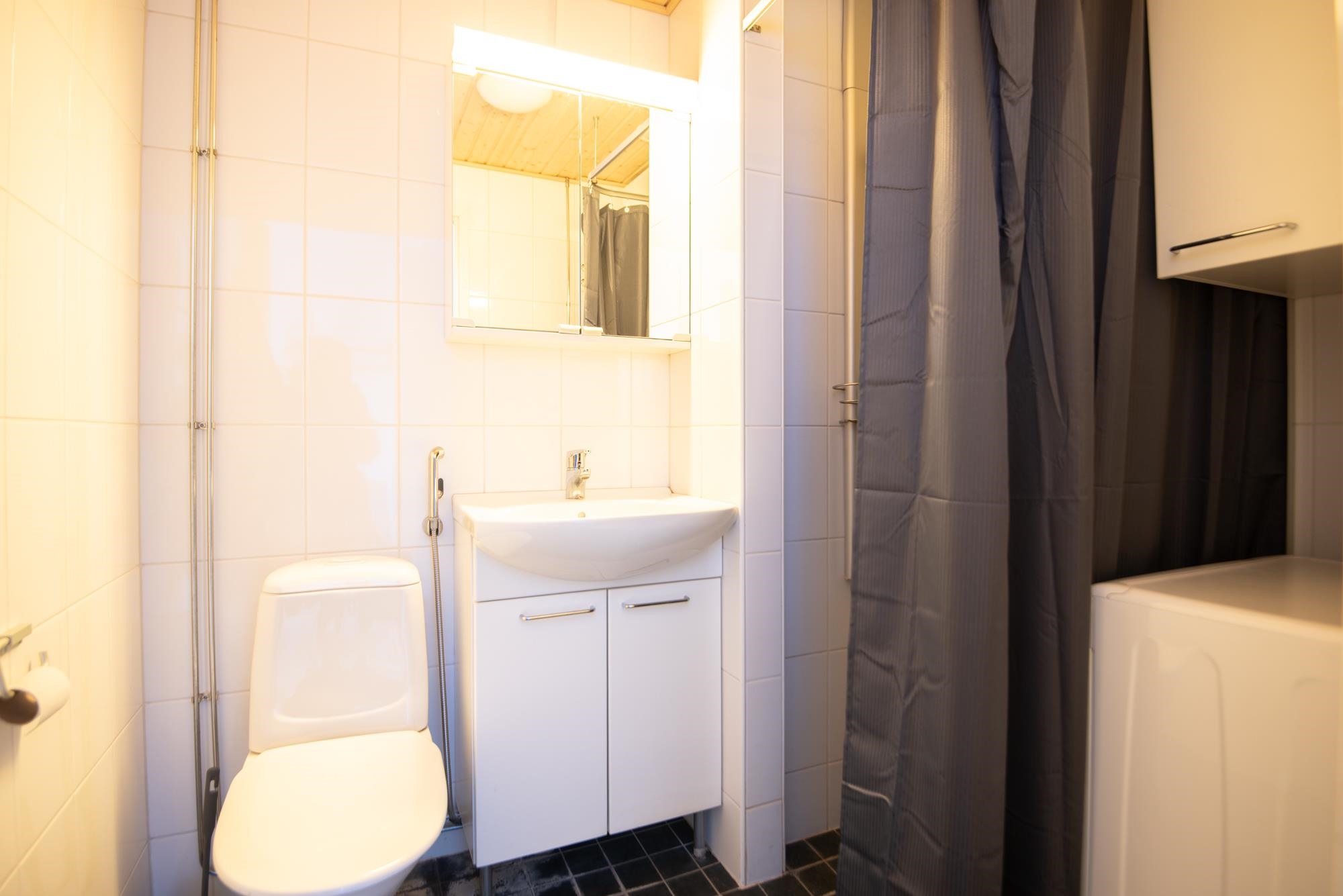 - Kylpyhuone, suihku, peilikaappi, allaskaappi, pesukoneliitäntä.