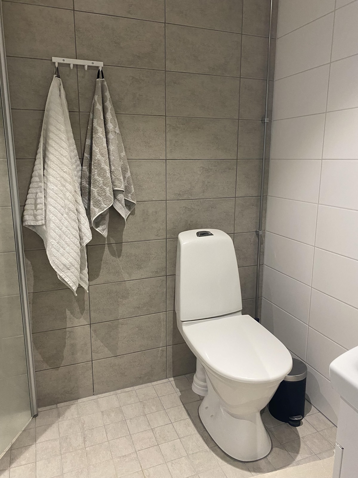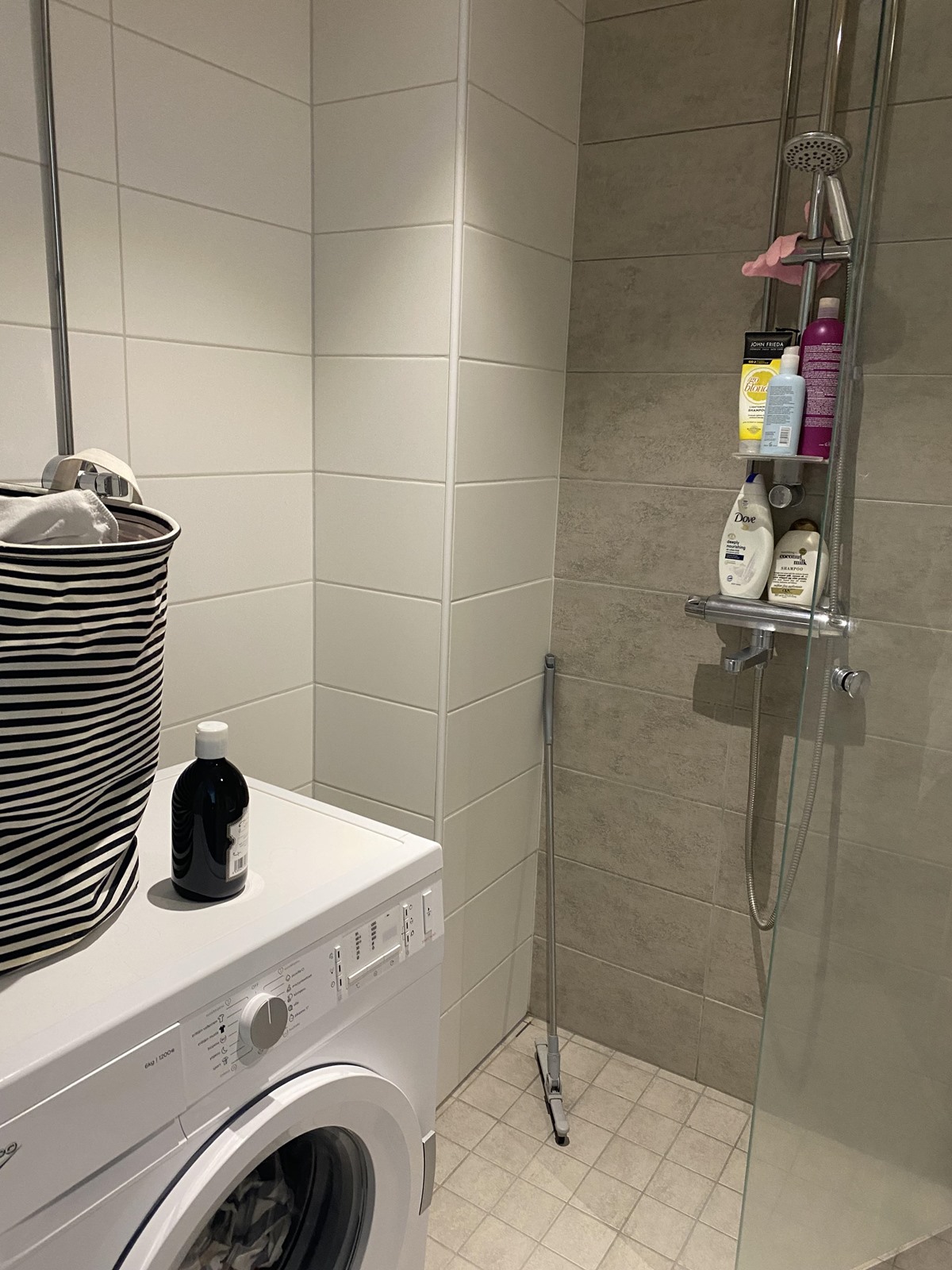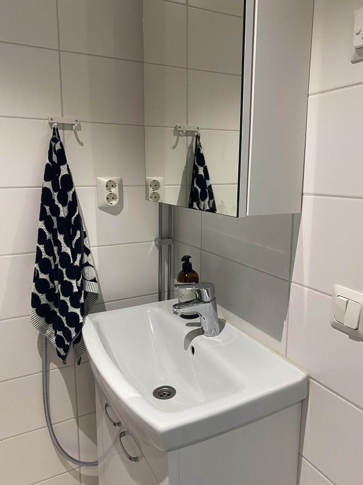 - Suihku, suihkuseinä, peilikaappi, allaskaappi, pesukoneliitäntä, lattialämmitys, kiinteät valaisimet.
