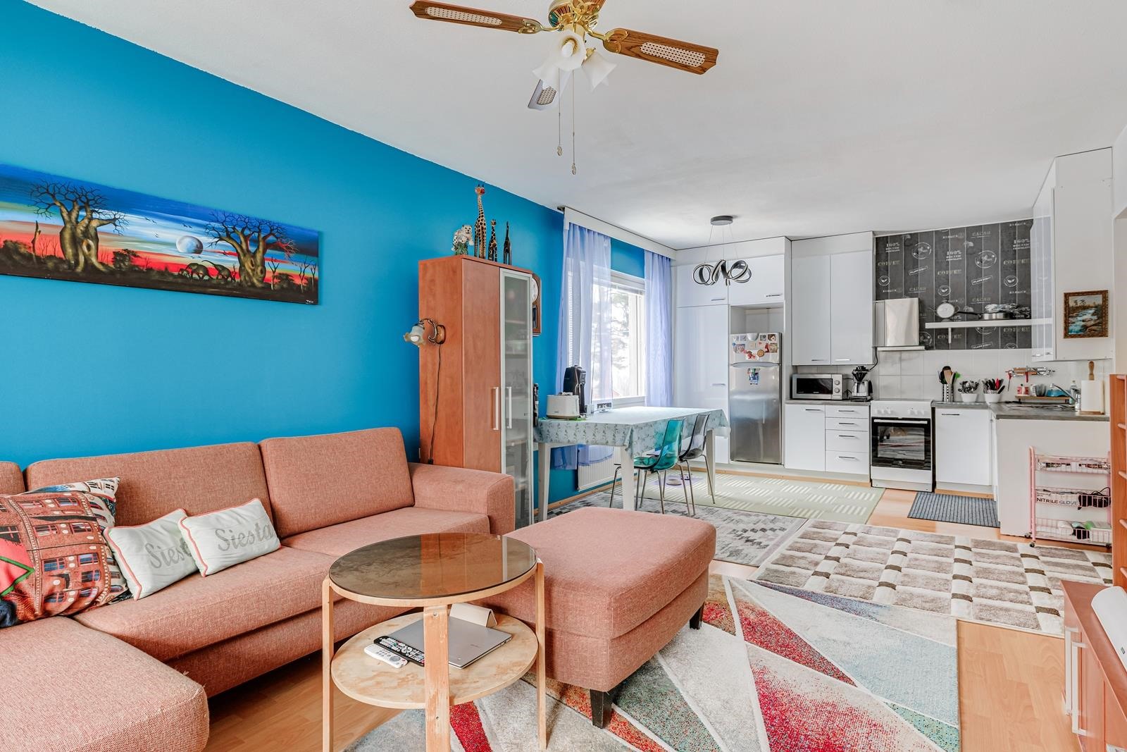 Avara viihtyisä koti tarjolla aivan Kymintehtaan koulun läheisyydessä. Valoisa kulmahuoneisto hissitalossa. Täällä on poistettu olohuoneen ja keittiön väliseinä ja saatu ihastuttava tupakeittiö, joka todella lisää asumismukavuutta sekä tuo valoisan ja viihtyisän tunnelman. Kylpyhuone on laatoitettu ja pesukoneelle on paikkansa. Lasitettu parveke. 54,5 m2 Hoitovastike 223,45 e / kk. Toinen kerros.