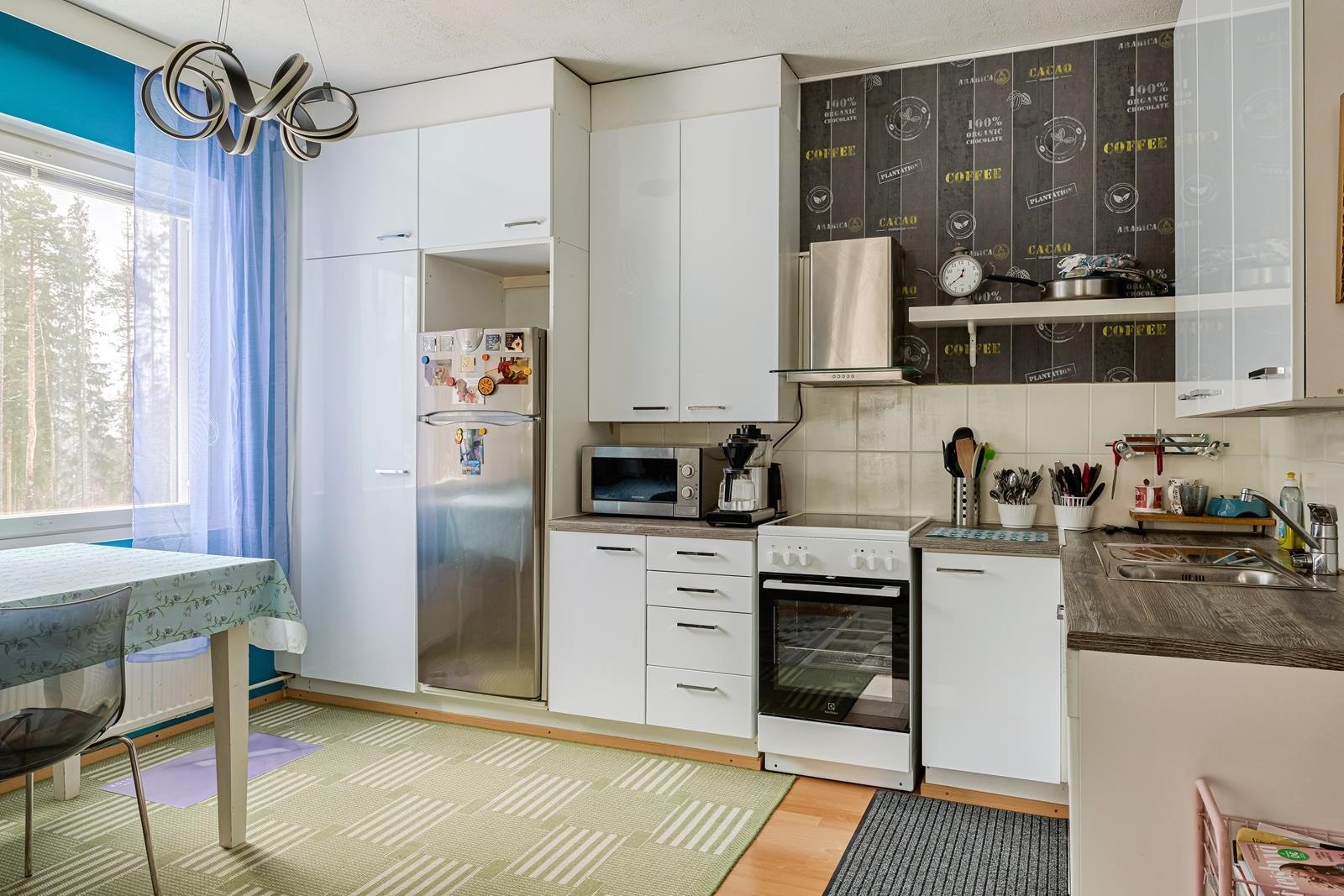 - Jenkkikaappi, keraaminen liesi, liesituuletin, astianpesukone.