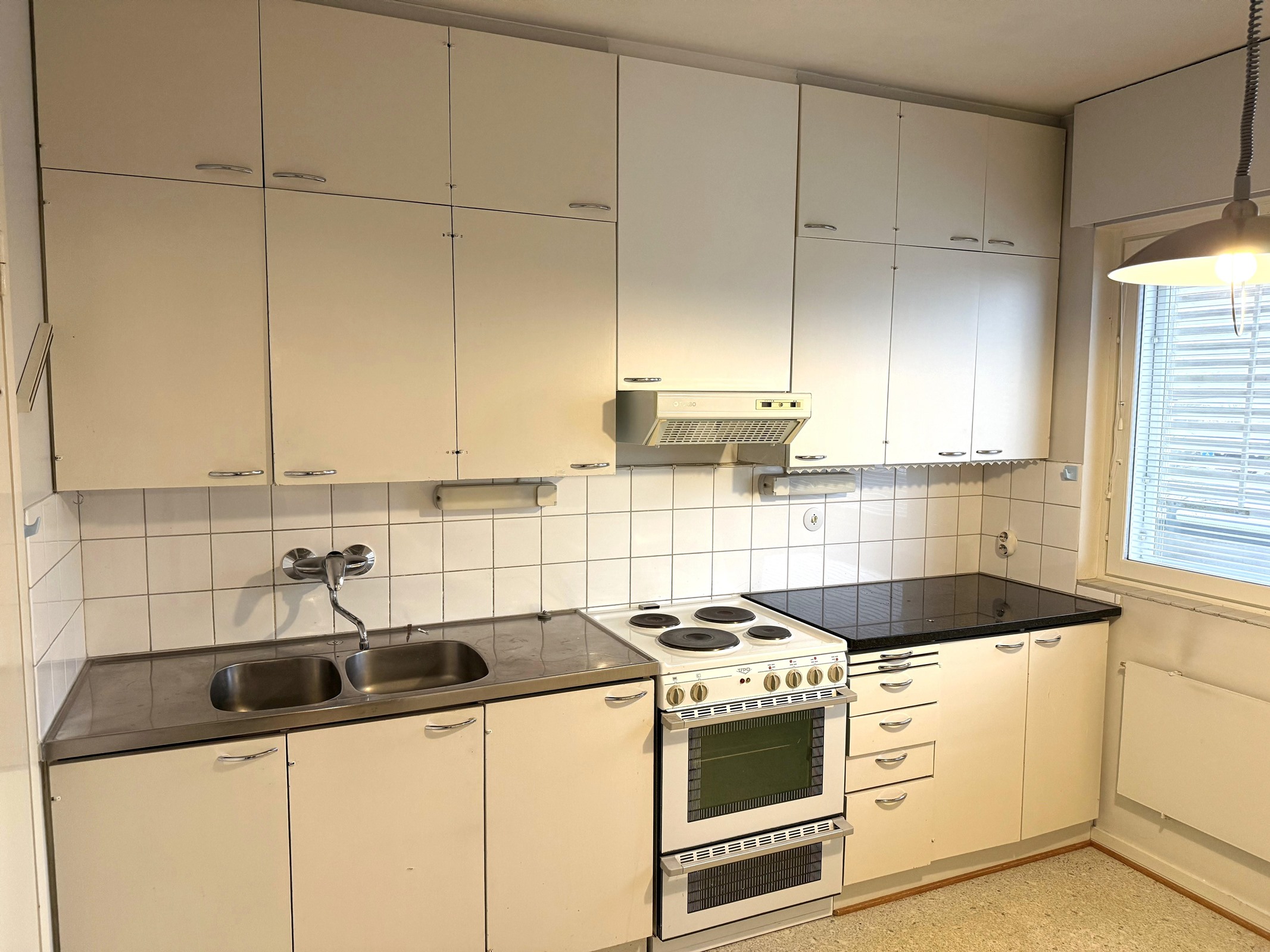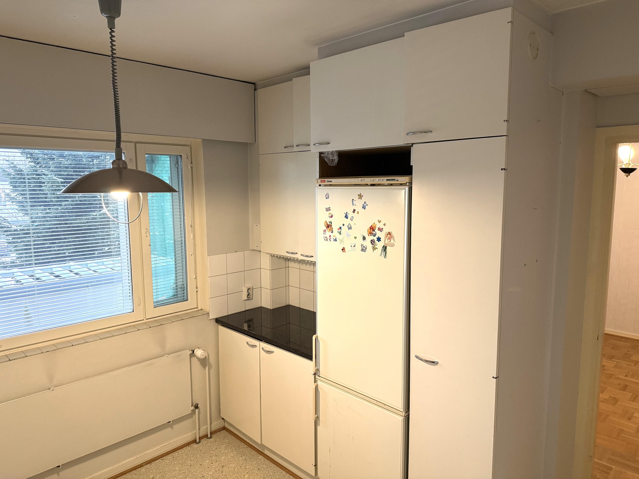 - Jääkaappipakastin, lattialiesi, liesituuletin, kaapistot, kiinteät valaisimet.