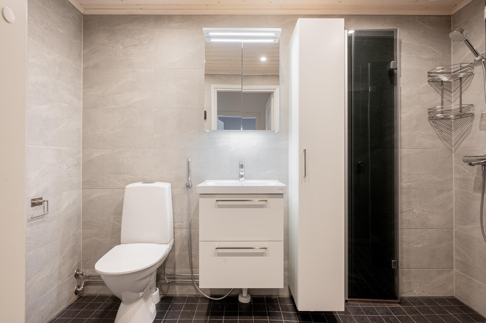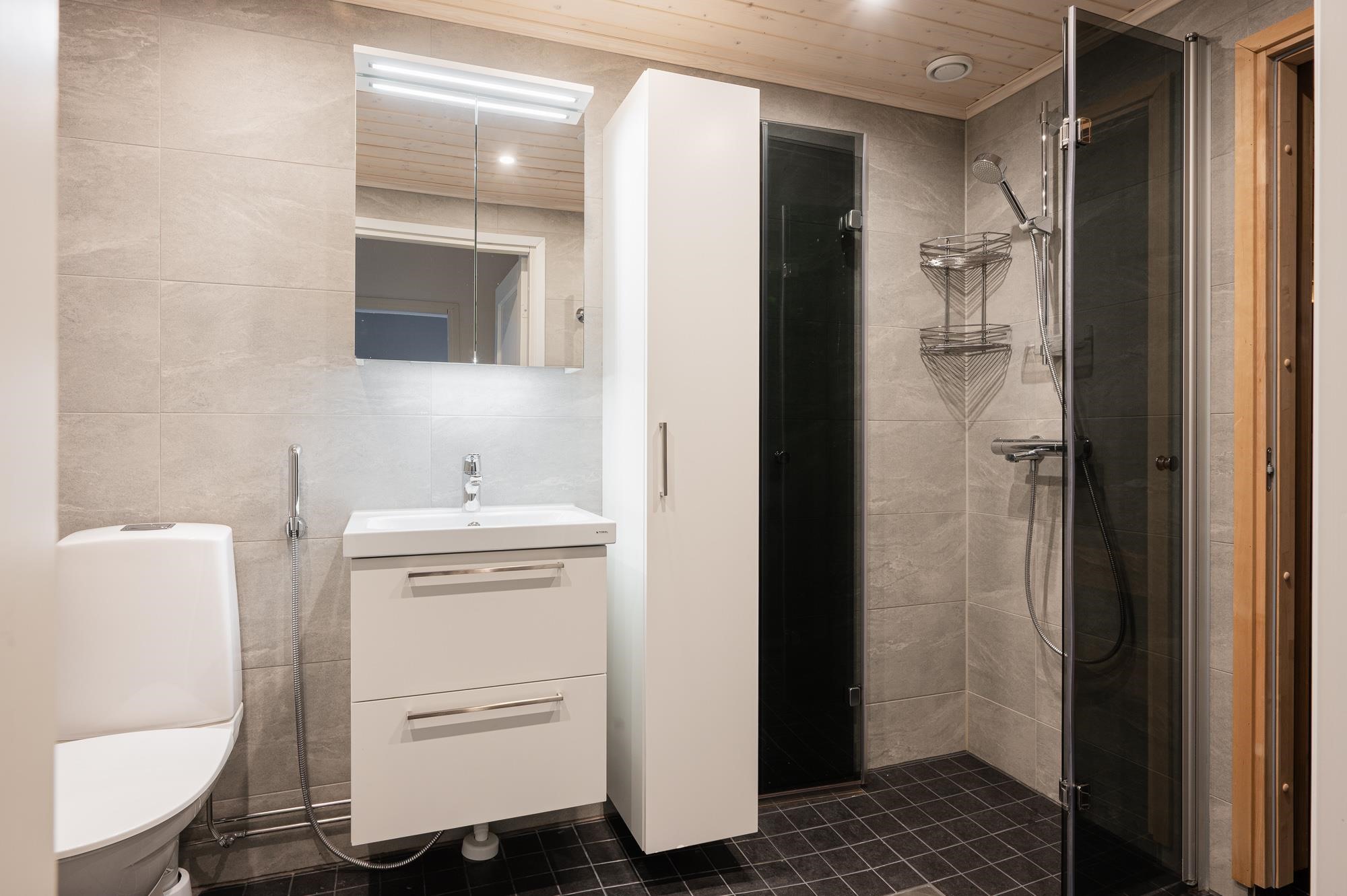 - Sauna, sähkökiuas, kylpyhuone, suihku, suihkuseinä taittuvat, peilikaappi, allaskaappi, pesukoneliitäntä, lattialämmitys sähkö, korkea kaappi, pyyhepatteri. Tilat saneerattu 2022, Bauhaus/kylpymaailma toteuttanut työn