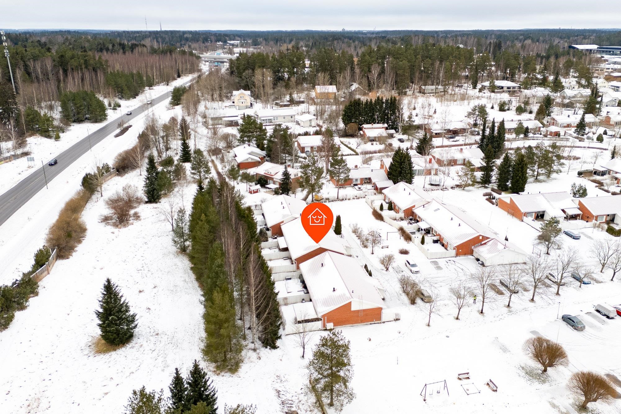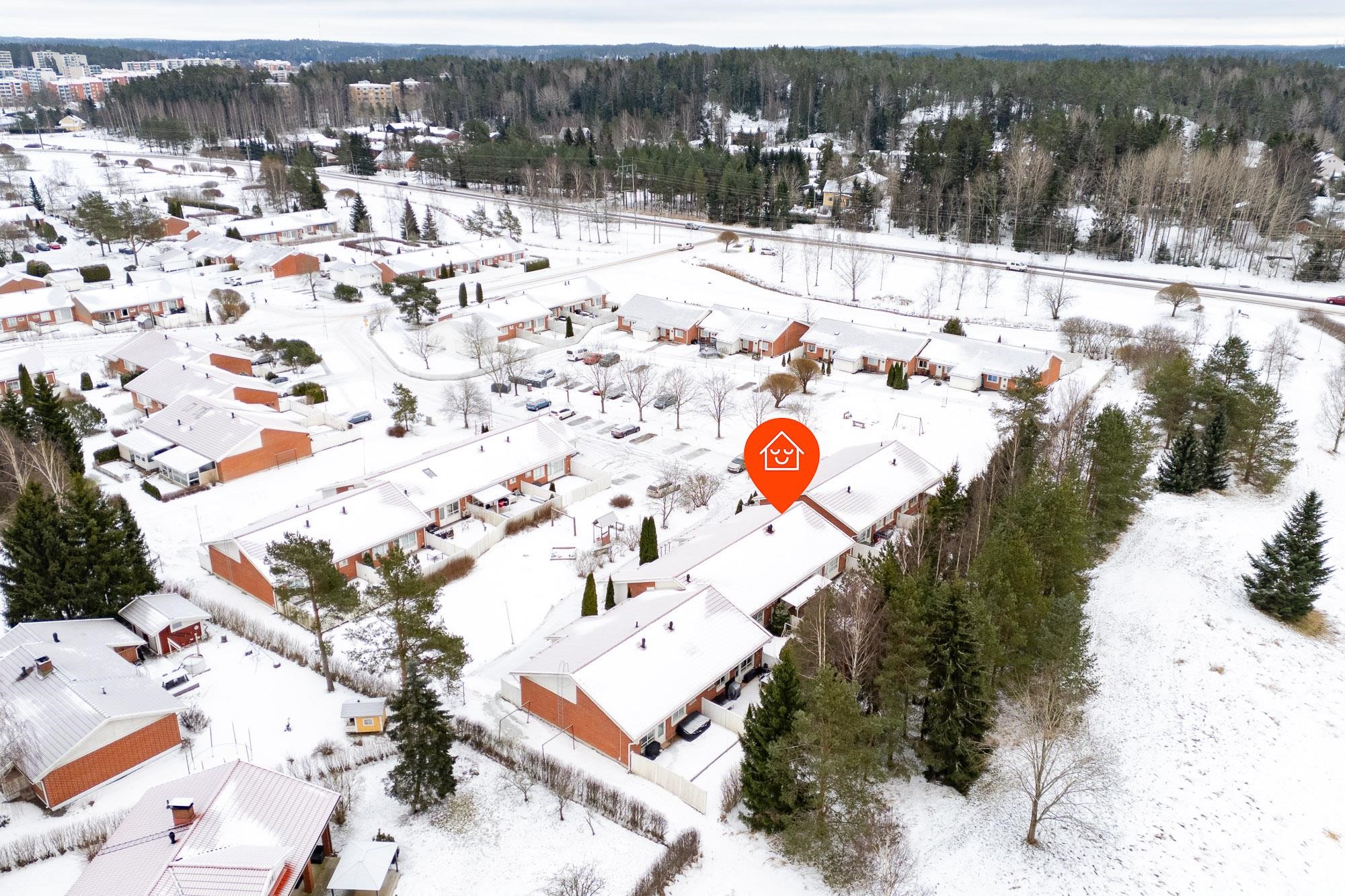 Asunto sijaitsee rauhallisella alueella, kuitenkin lähellä Kaarinan kattavia palveluja. Päivittäiset palvelut, kuten kaupat ja koulut, ovat kävelymatkan päässä, ja alueen vehreä ympäristö tarjoaa mahdollisuudet ulkoiluun ja rentoutumiseen. Liikenneyhteydet ovat sujuvat, esimerkiksi Turun ja Helsingin suuntaan, ja alueella on myös suunnitteilla parannuksia, jotka nopeuttavat kulkemista entisestään, esimerkiksi Paraisille.