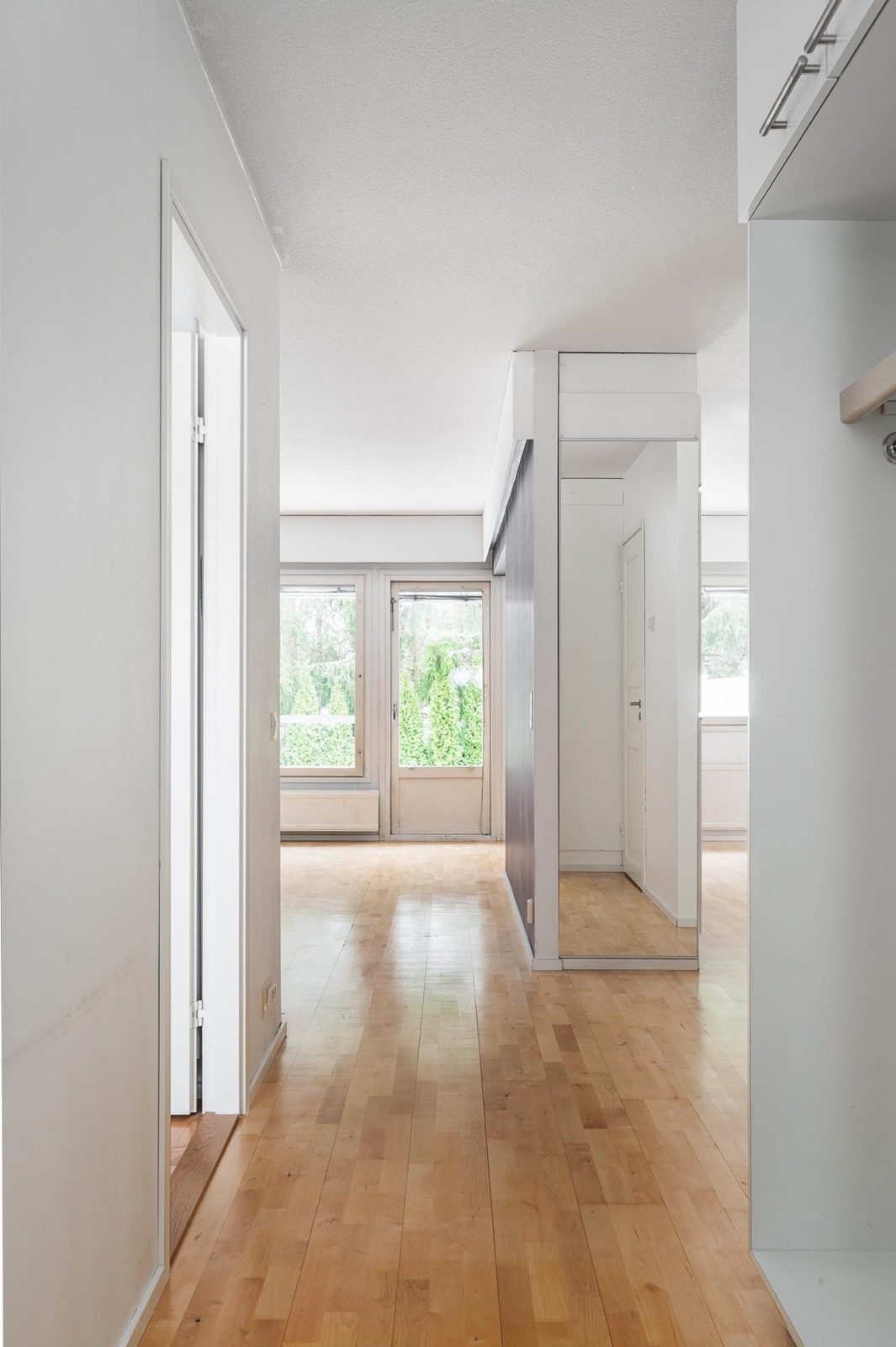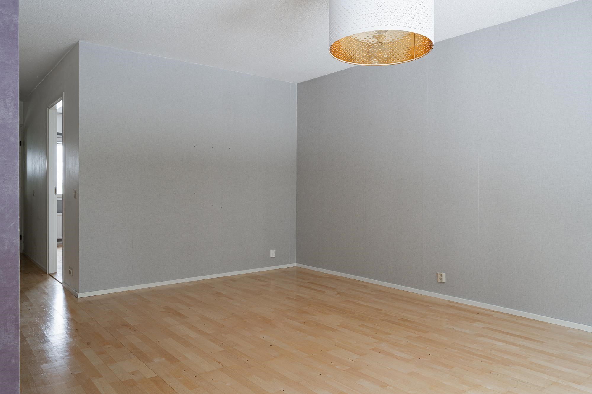 Keittiö: parketti, seinät tapetti/maalattu. Olohuone: parketti, seinät tapetti. Makuuhuone 1: laminaatti, seinät lasikuitutapetti. Kylpyhuone: laatoitettu. Eteinen: parketti, seinät maalattu. Tuulikaappi: laatta, seinät maalattu.
