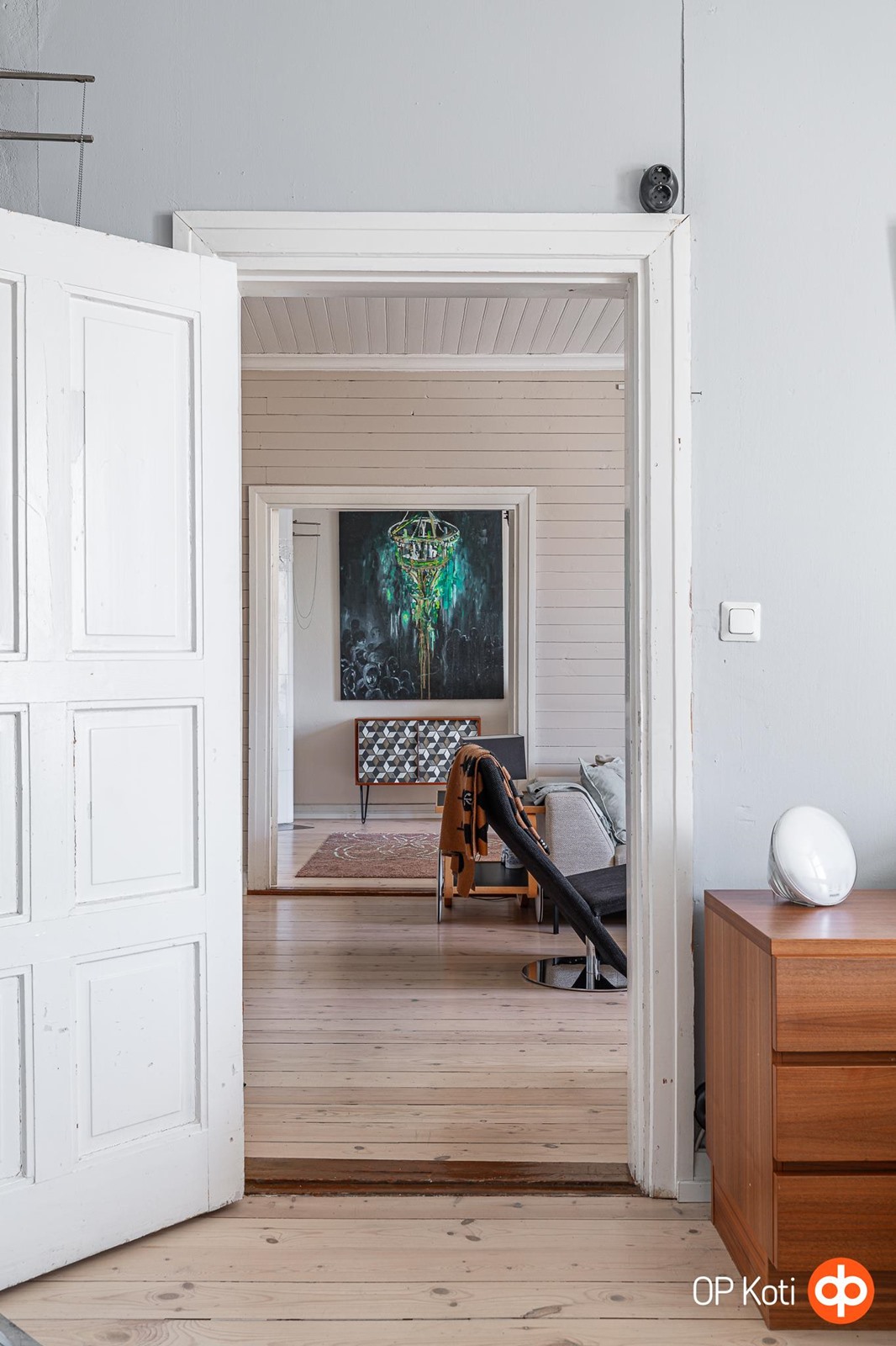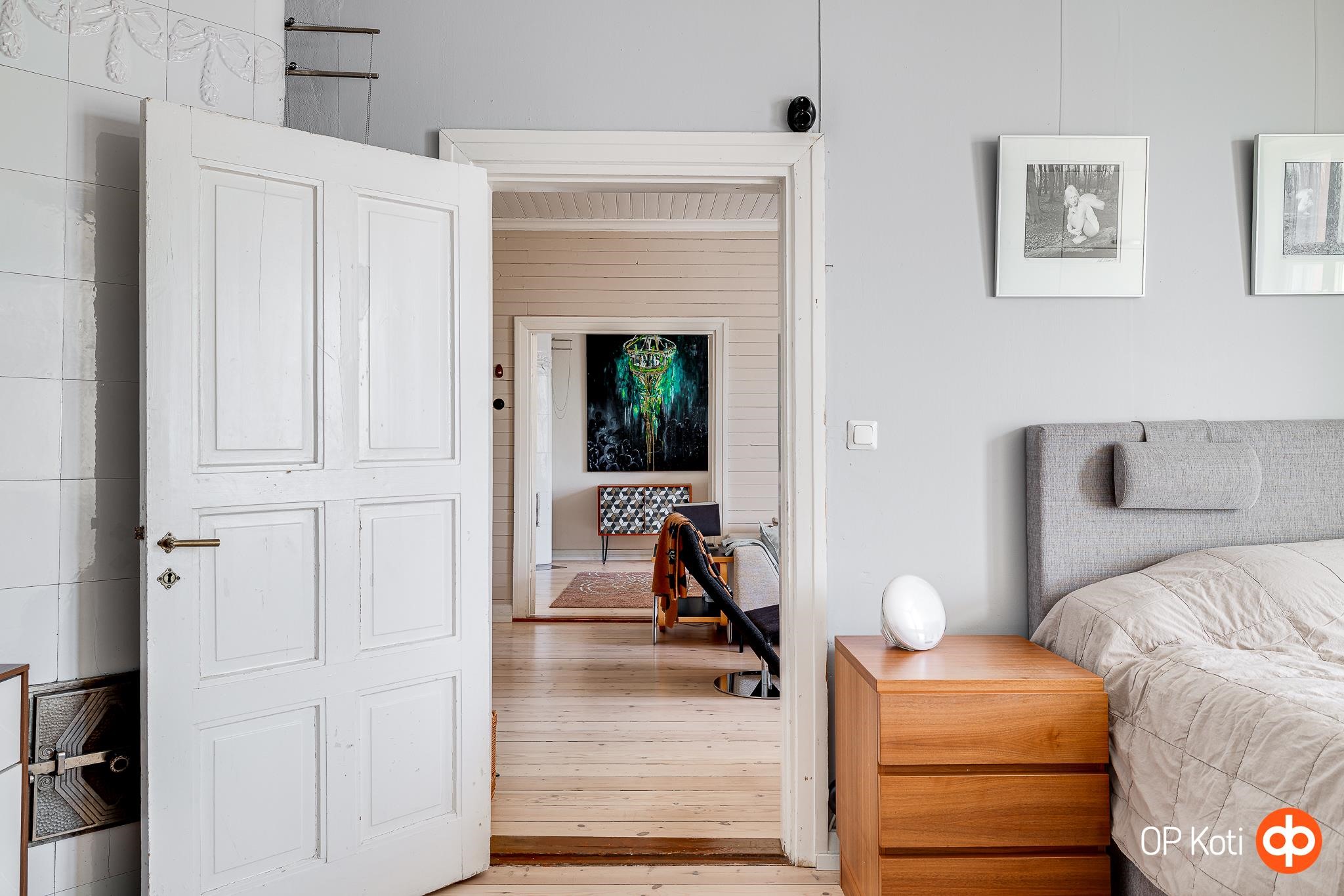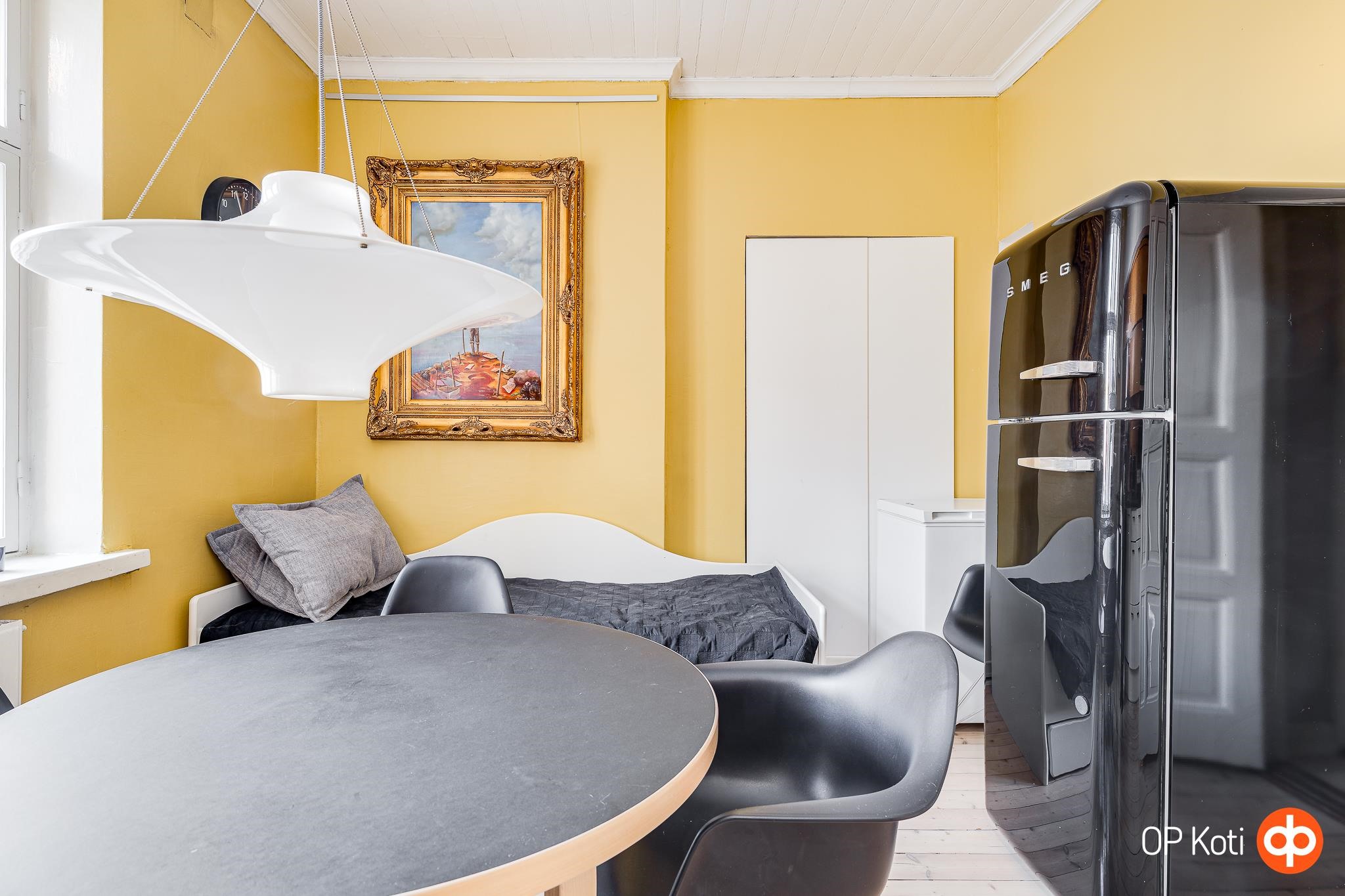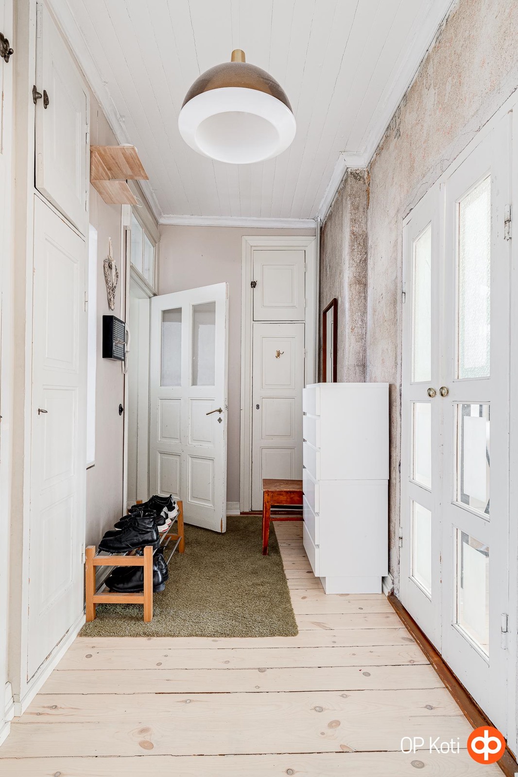 Historiallisessa miljöössä sijaitsevan huoneiston pohjaratkaisu tarjoaa selkeät ja väljät tilat. Valoisassa olohuoneessa aamuaurinko toivottaa tervetulleeksi uuteen päivään. Keittiö on nykyaikaisesti varusteltu, ja siellä on laadukas kivitaso sekä käytännölliset, uusitut alakaapit. Makuuhuoneiden ikkunat avautuvat rauhalliseen suuntaan, ja pienen makuuhuoneen puolapuut tarjoavat mahdollisuuden vaikka kotijumppaan. Säilytystilaa on runsaasti sekä asuntoon kuuluvissa komeroissa että yhtiön vintti- ja kellarivarastoissa. Tässä kodissa yhdistyvät vanhan talon arvokkuus ja tämän päivän mukavuudet sopivalla tavalla.
