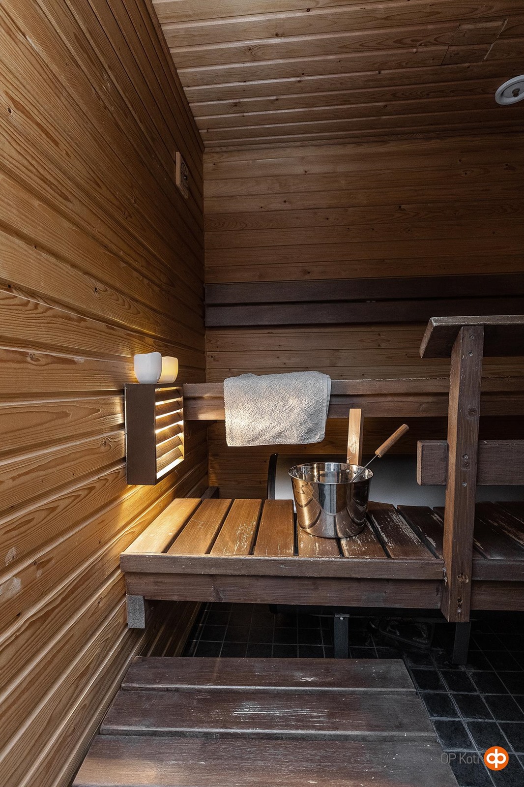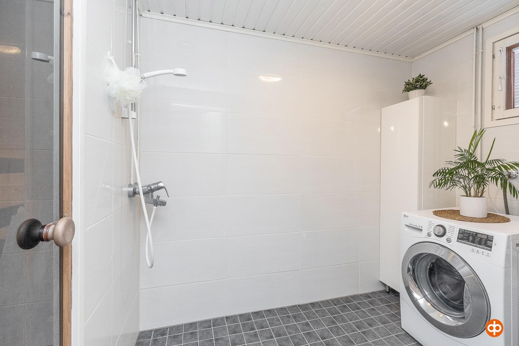 - Sauna, sähkökiuas, kylpyhuone, erillinen wc, suihku, peilit, allaskaappi, pesukoneliitäntä, lattialämmitys, kiinteät valaisimet. Varaaja vaihdettu saunaan, wc-istuin uusittu 2025.