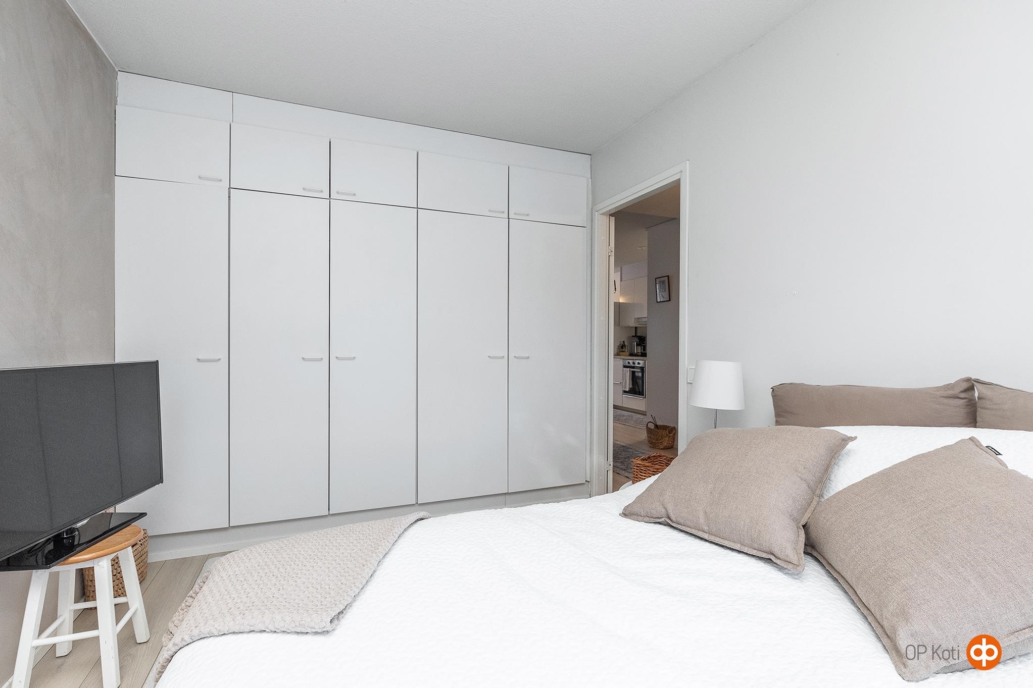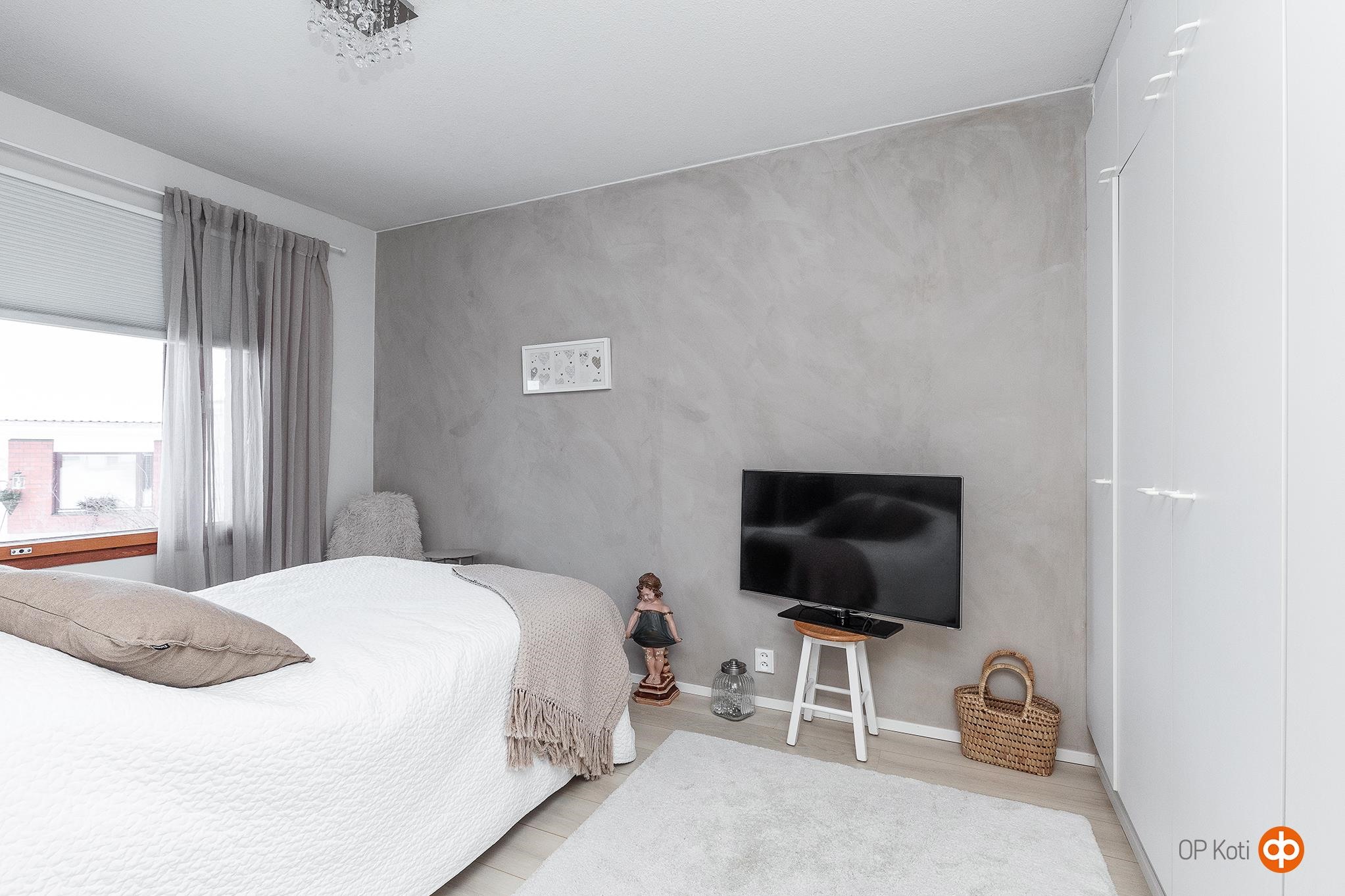 Makuuhuoneessa on rauhallinen tunnelma ja toimivat kaapistot. Vuonna 2012 remontoitu kylpyhuone on siistikuntoinen ja selkeälinjainen, ja erillinen wc sijaitsee kätevästi eteiskäytävän yhteydessä.