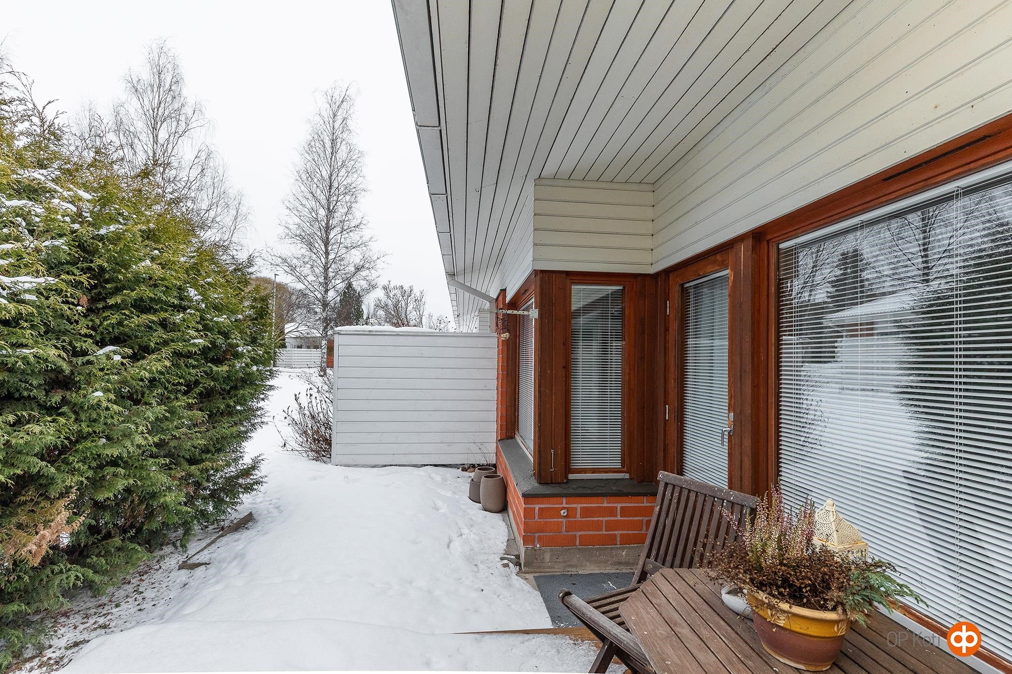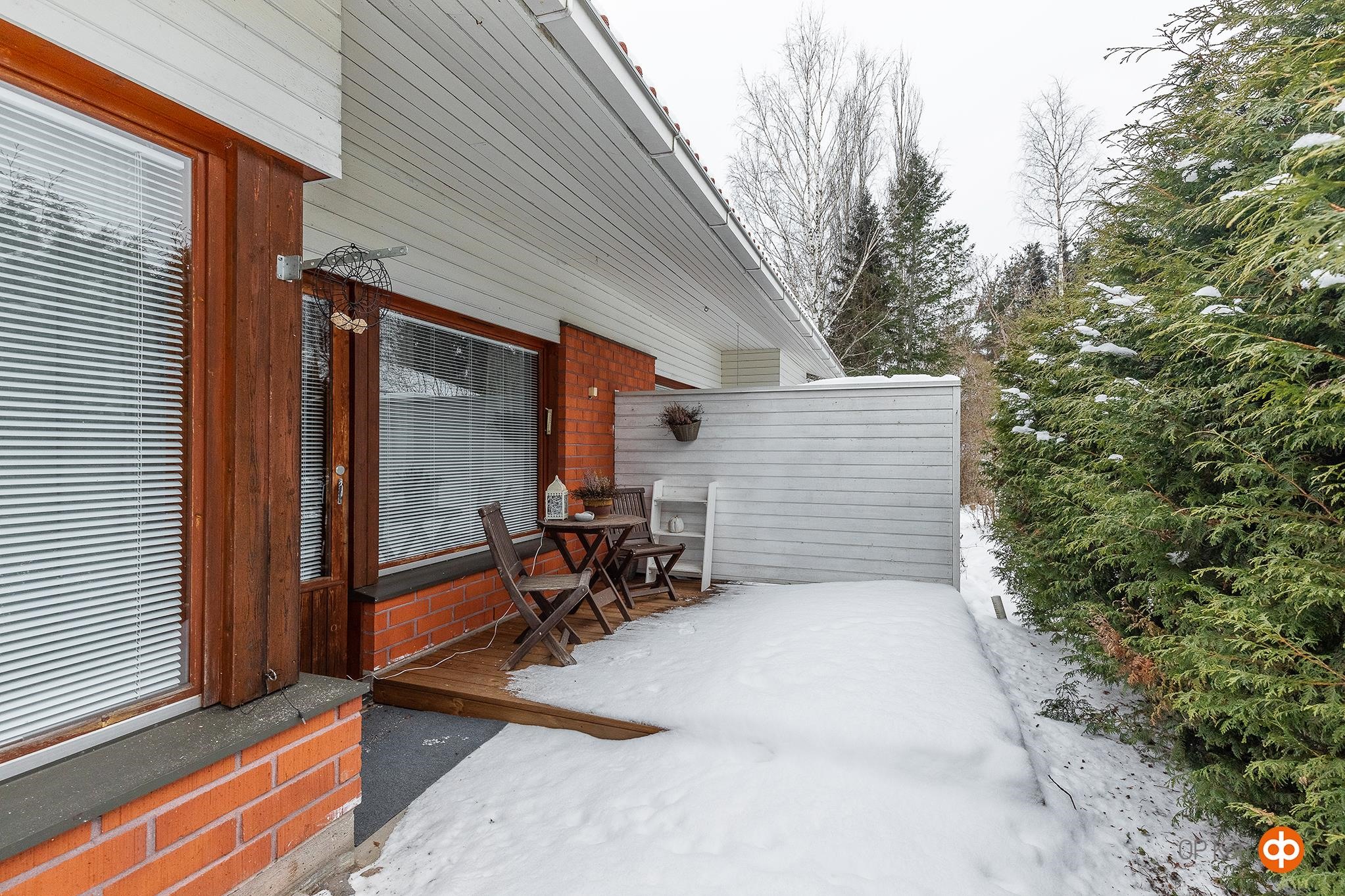 Olohuoneesta avautuu kulku takapihalle, missä odottaa vuonna 2025 uusittu, hyvin suojaisa terassi. Yksityinen ja viihtyisä terassialue sopii mainiosti sekä oleskeluun että kesäisiin illanviettoihin. Asunnon käytössä on lisäksi autokatospaikka ja noin 4 m² lämmin varasto.