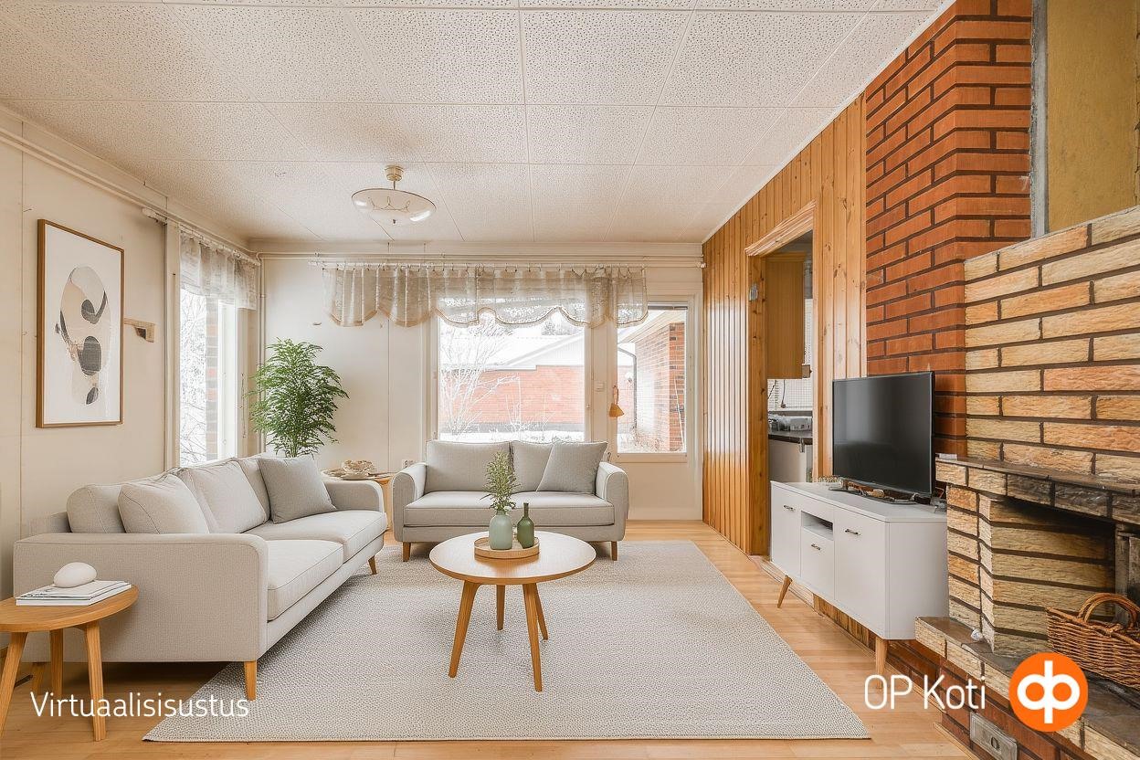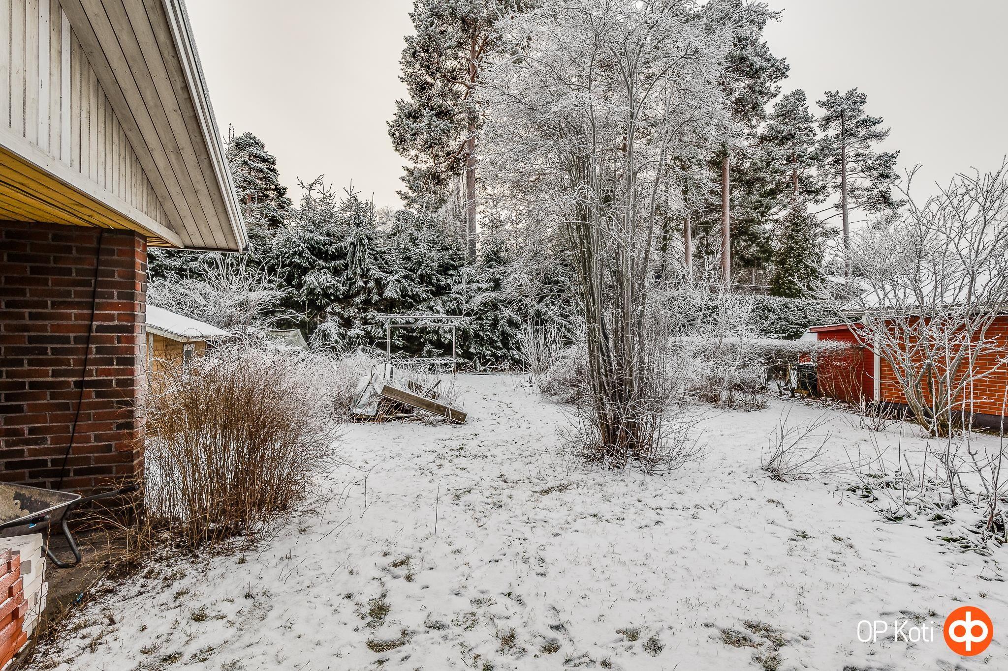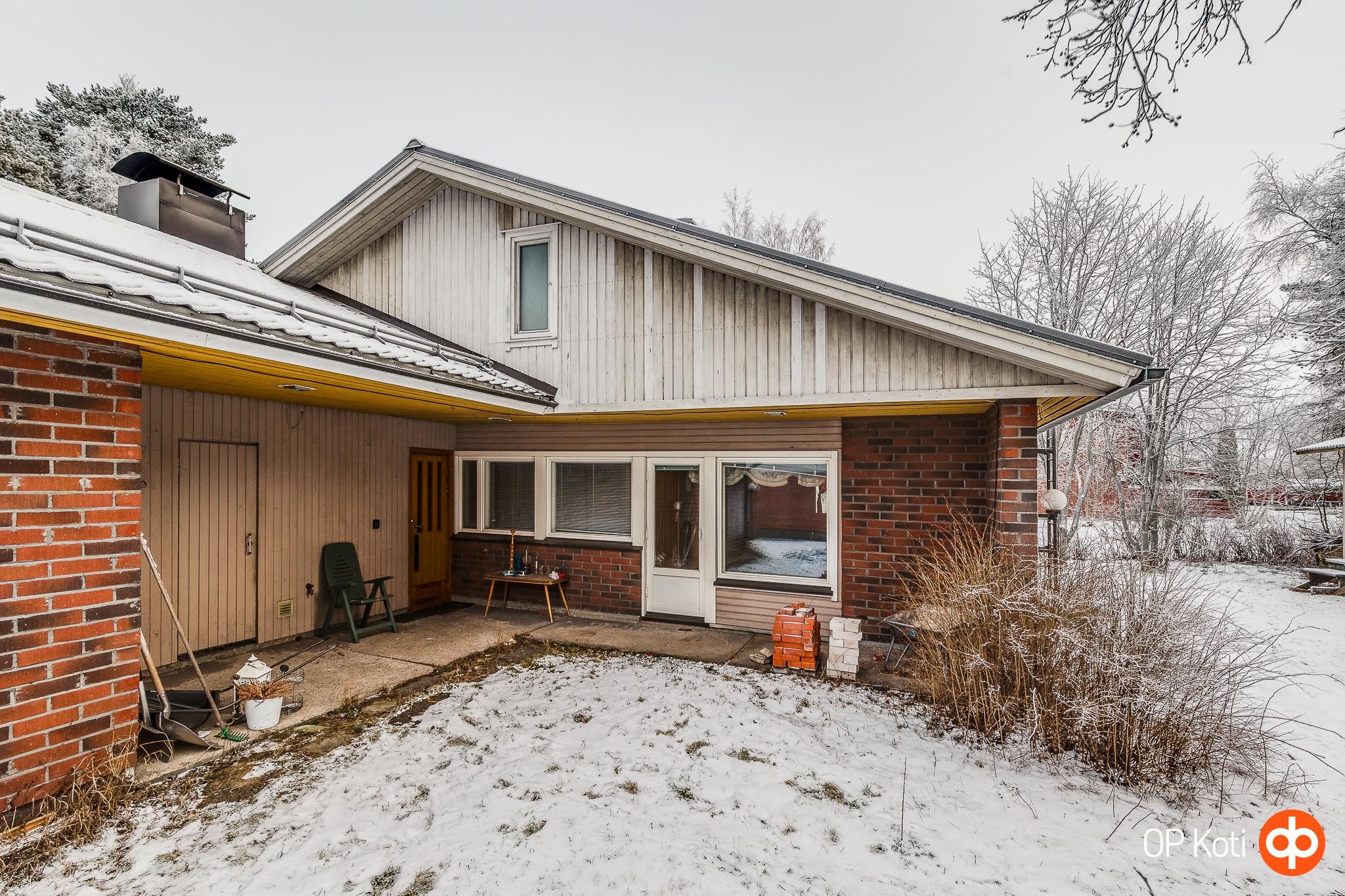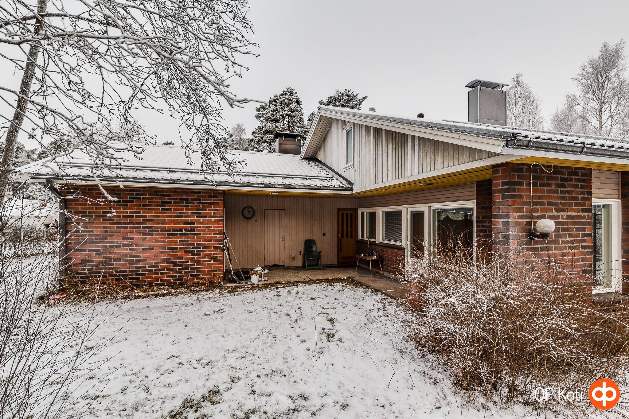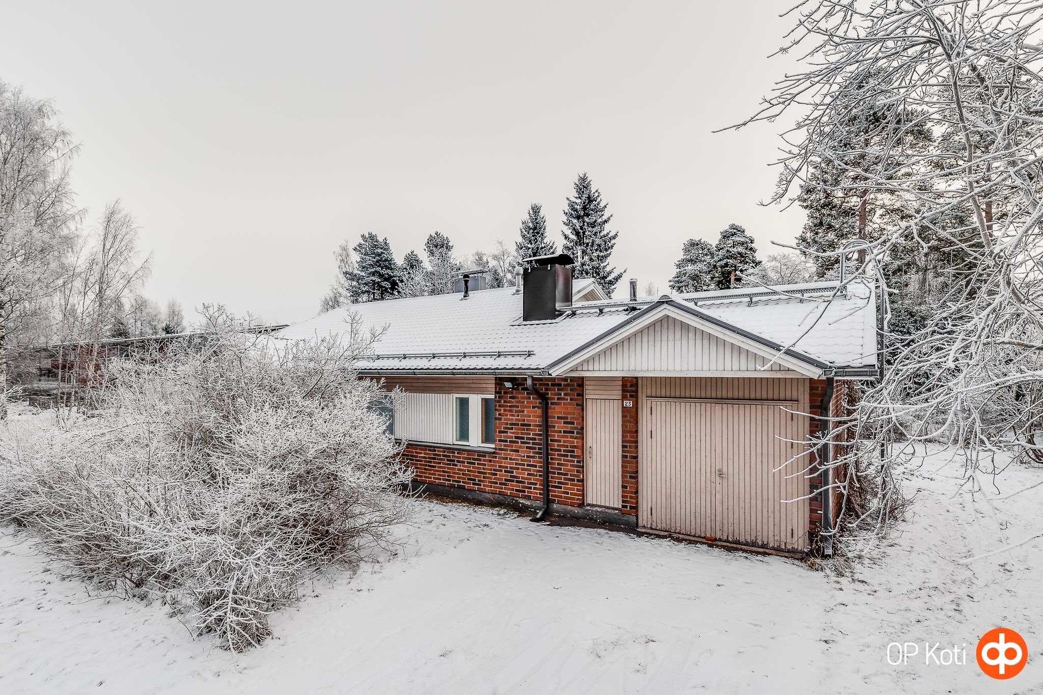 Tämä vuonna 1975 rakennettu talo on omalla 940 m² kulmatontilla. Vuonna 2005 talossa on tehty vesikaton korotus. Erillinen 24 m² liiteri.
