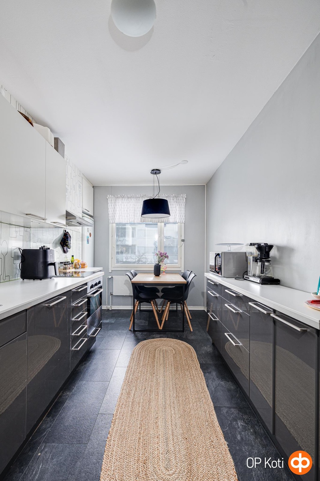 Tämä siistikuntoinen ja hyvin varusteltu kaksio sopii mainiosti helppoa ja vaivatonta asumista arvostavalle. Asunnossa on tilava olohuone, ja sen yhteydessä oleva lasitettu parveke tarjoaa rauhallisen paikan nauttia aamukahvista tai seurata vuodenaikojen vaihtelua. Keittiö on käytännöllinen ja varusteltu kaikilla tarpeellisilla mukavuuksilla. Vaatehuone ja kellarivarasto tuovat lisätilaa säilytykseen. Asunnossa valmis vuokralainen, joten tämä koti on hyvä vaihtoehto myös sijoitukseen.