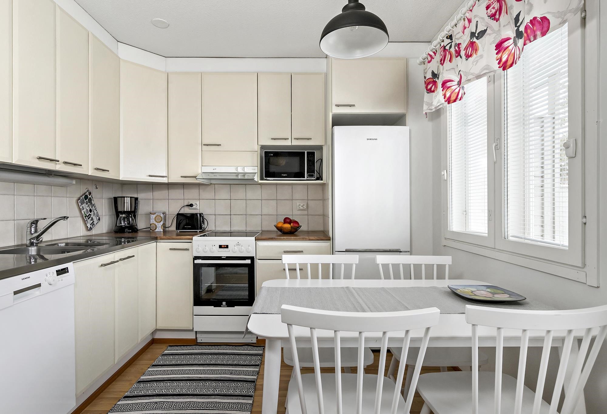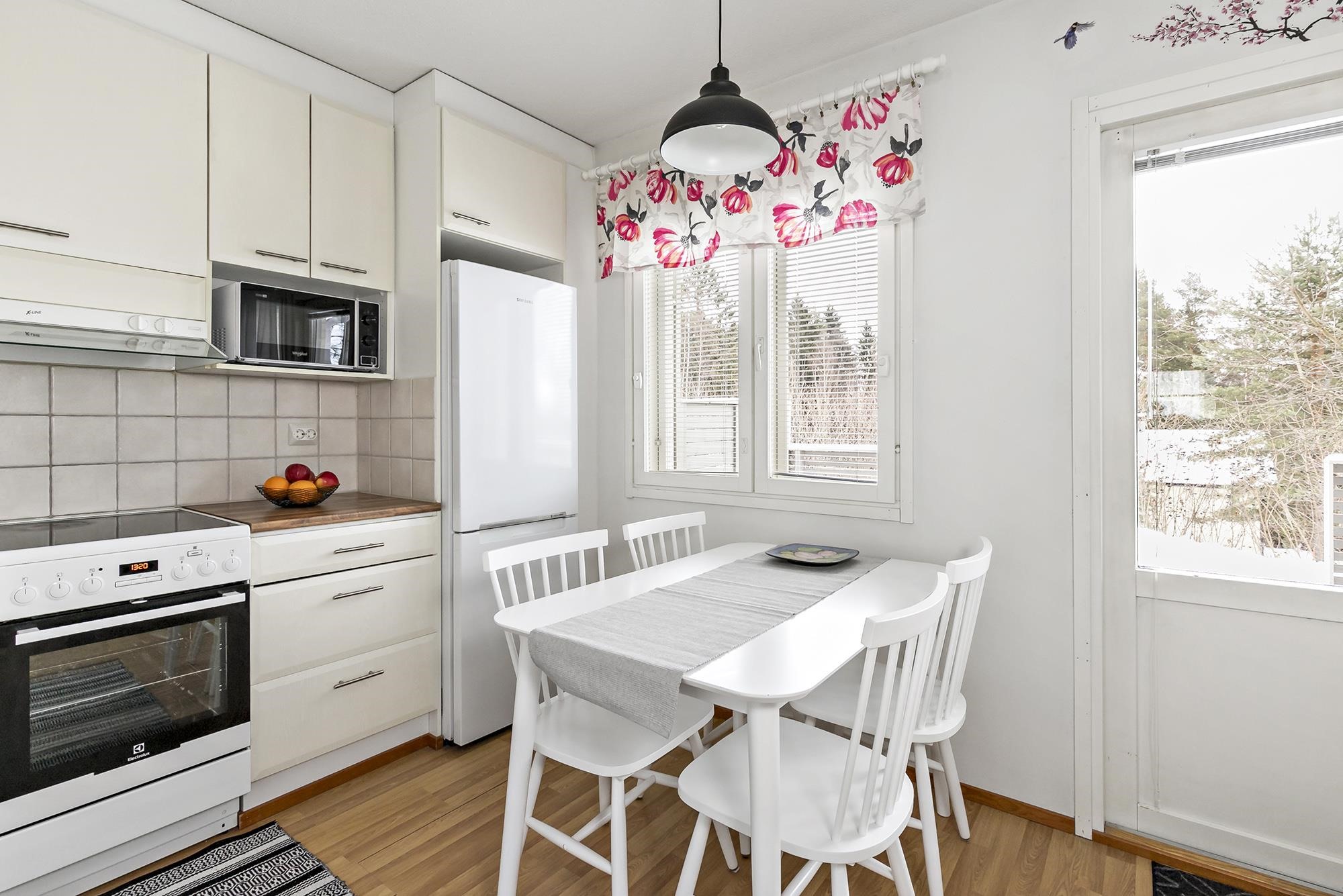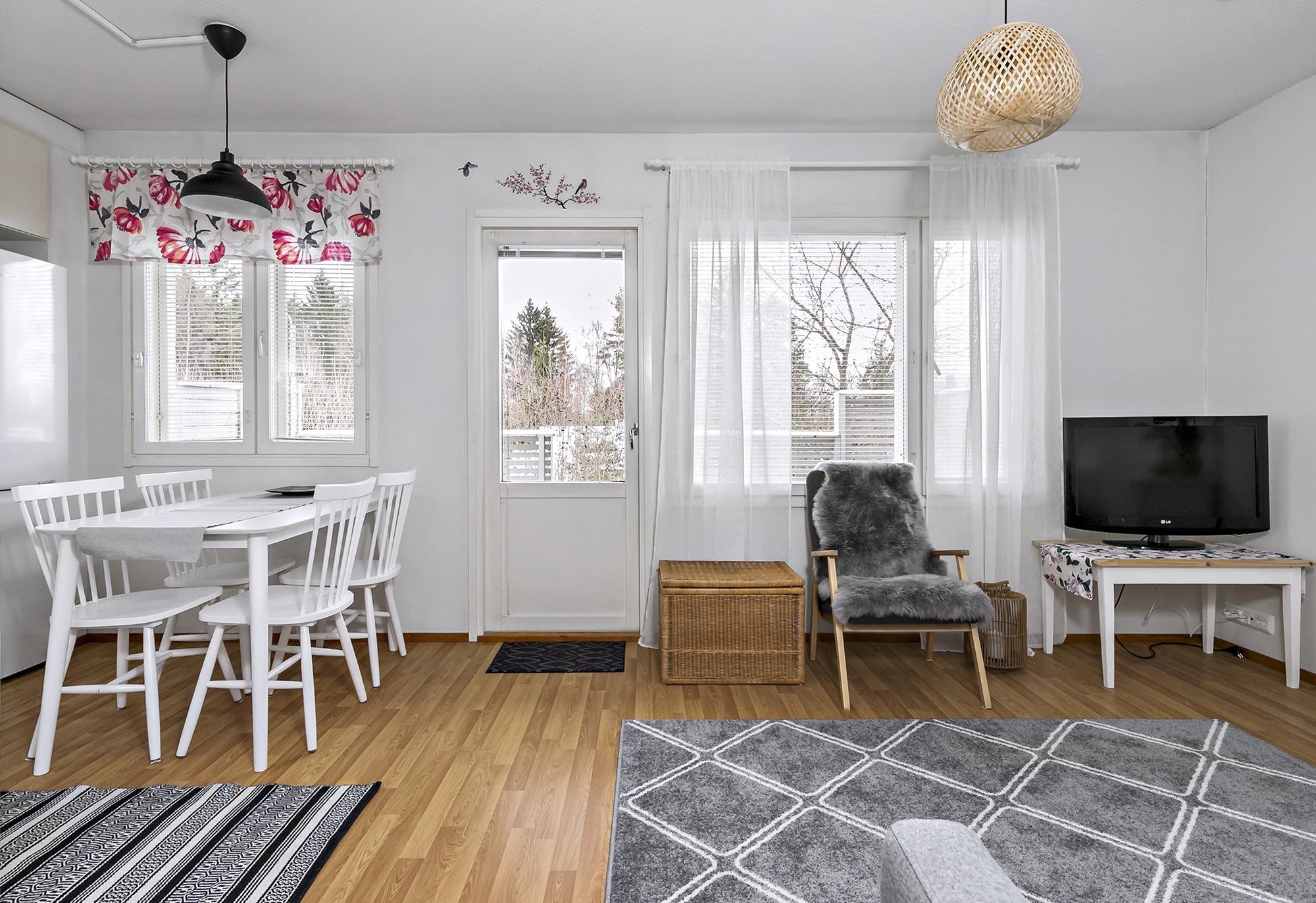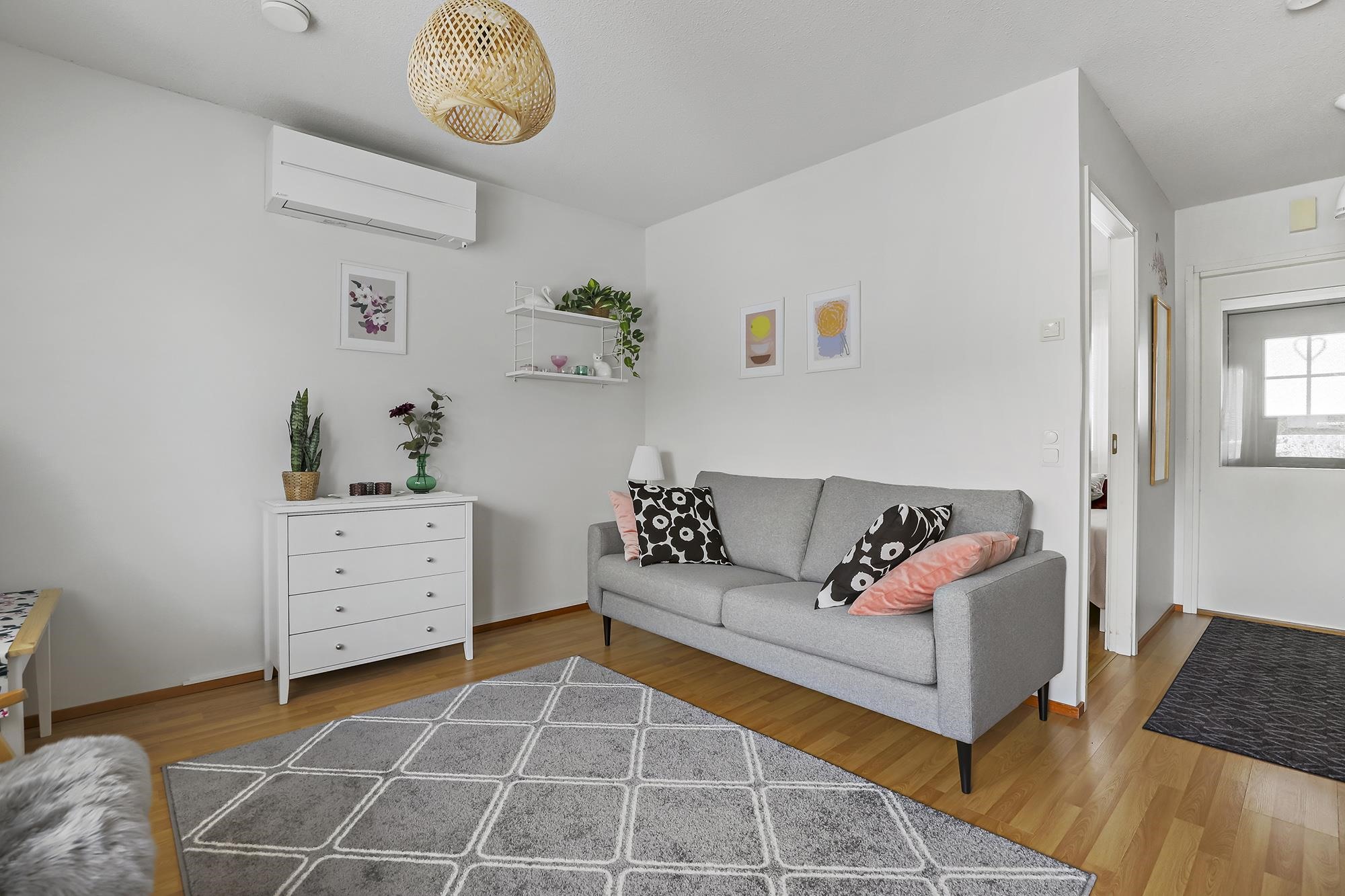 Ihastuttava ja valoisa rivitalon (2010) saunallinen päätyasunto rauhallisella sijainnilla, palvelujen tuntumassa. Avarassa, huolella suunnitellussa ja esteettömässä asunnossa on makuuhuoneen lisäksi moderni olohuoneeseen yhdistyvä avokeittiö. Sieltä käynti terassille, joka kesällä muuttuu toiseksi olohuoneeksi. Asumismukavuutta lisäävät lattialämmitys ja ilmalämpöpumppu.