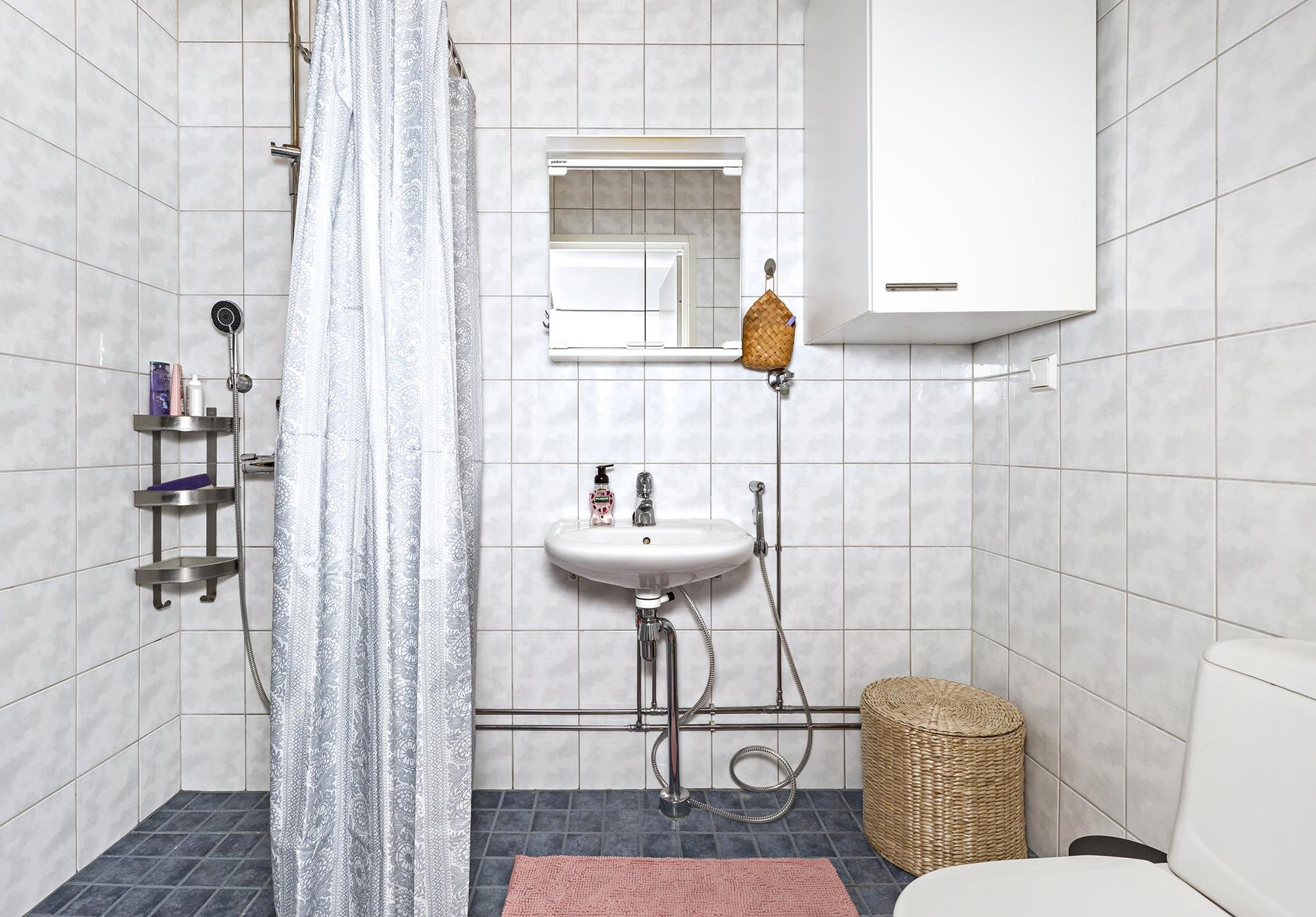 - Sauna, sähkökiuas, kylpyhuone, suihku, peilikaappi, pesukoneliitäntä, lattialämmitys, wc.