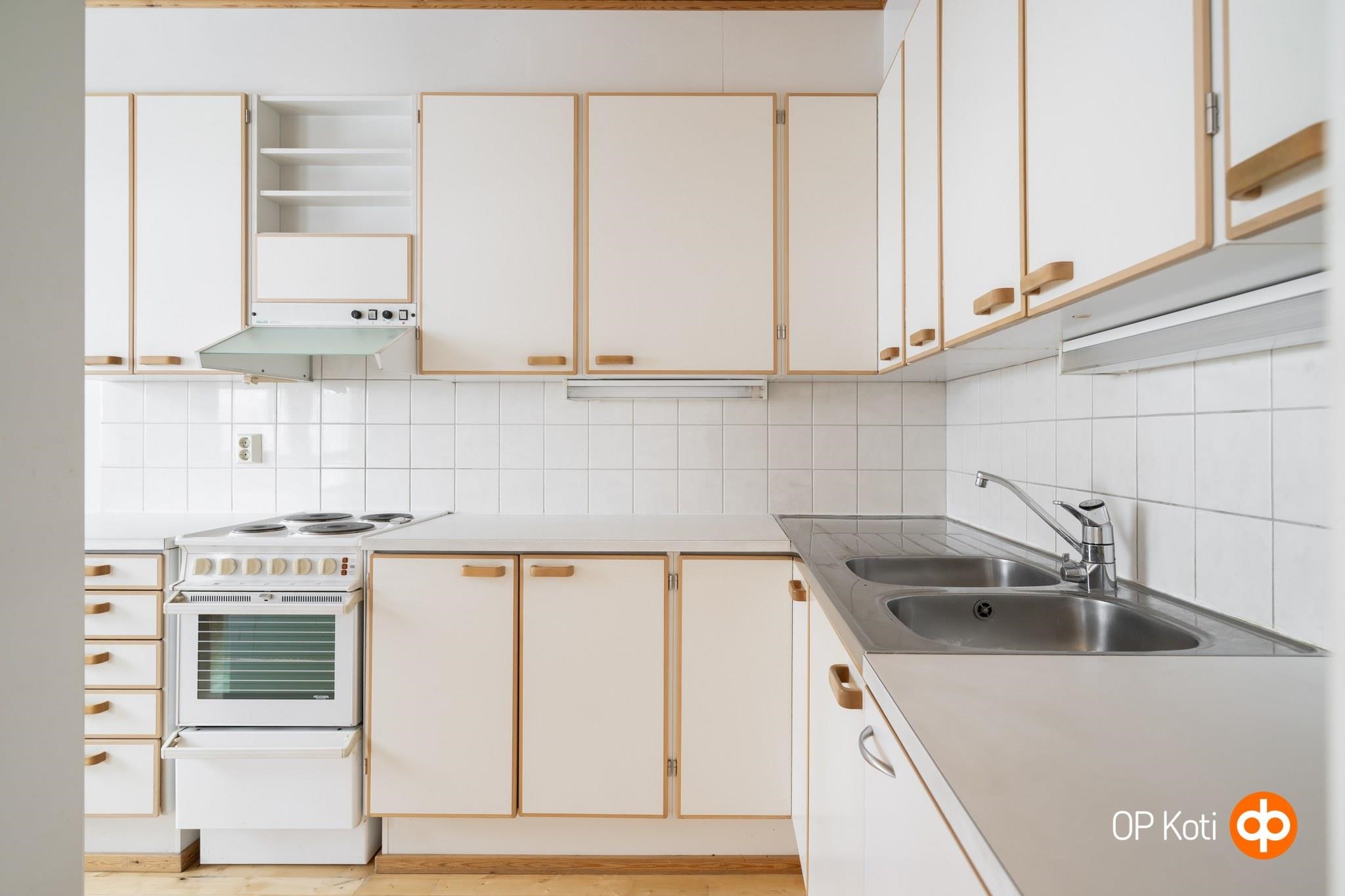 - Jääkaappipakastin, sähköliesi, liesituuletin, kaapistot, kiinteät valaisimet.