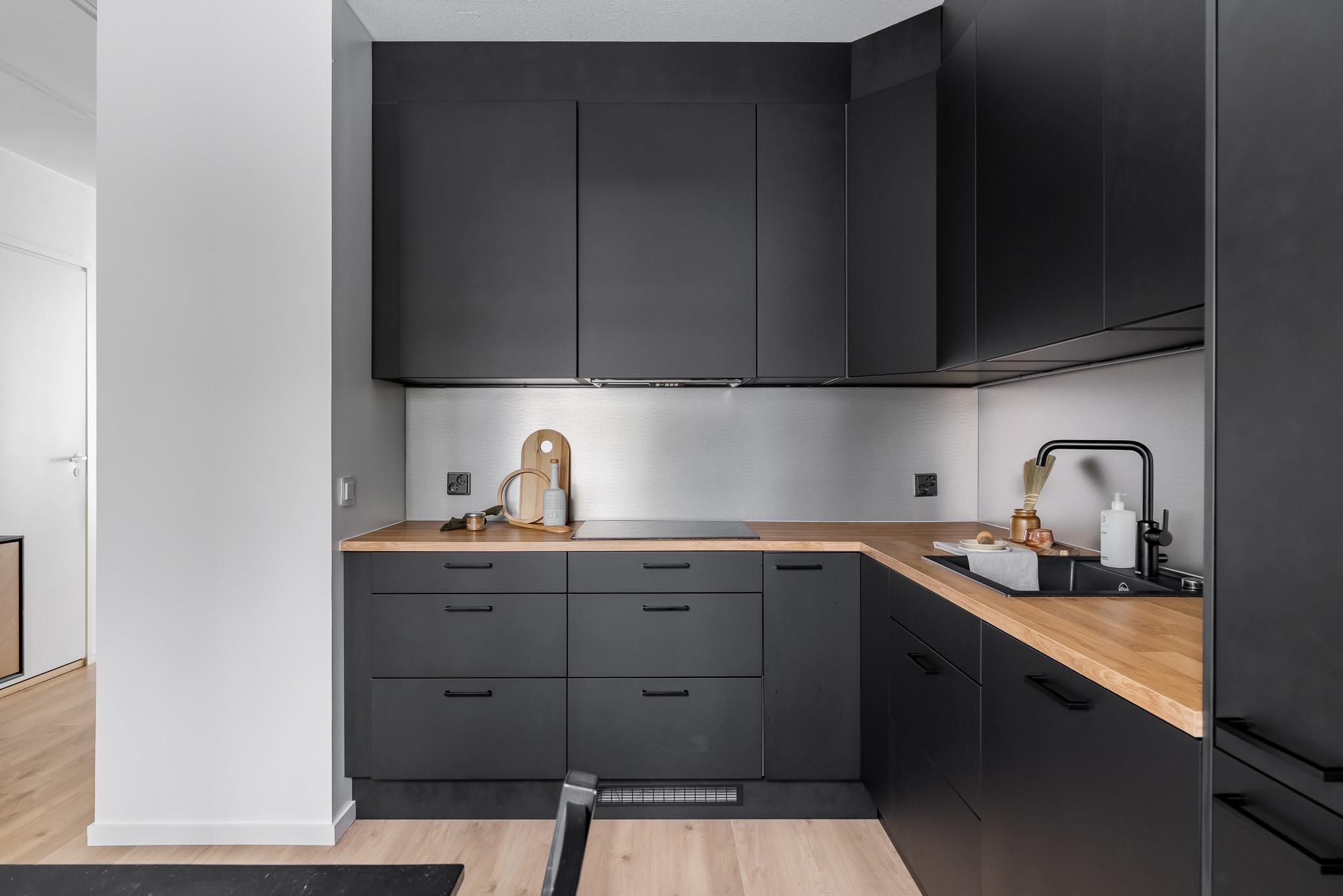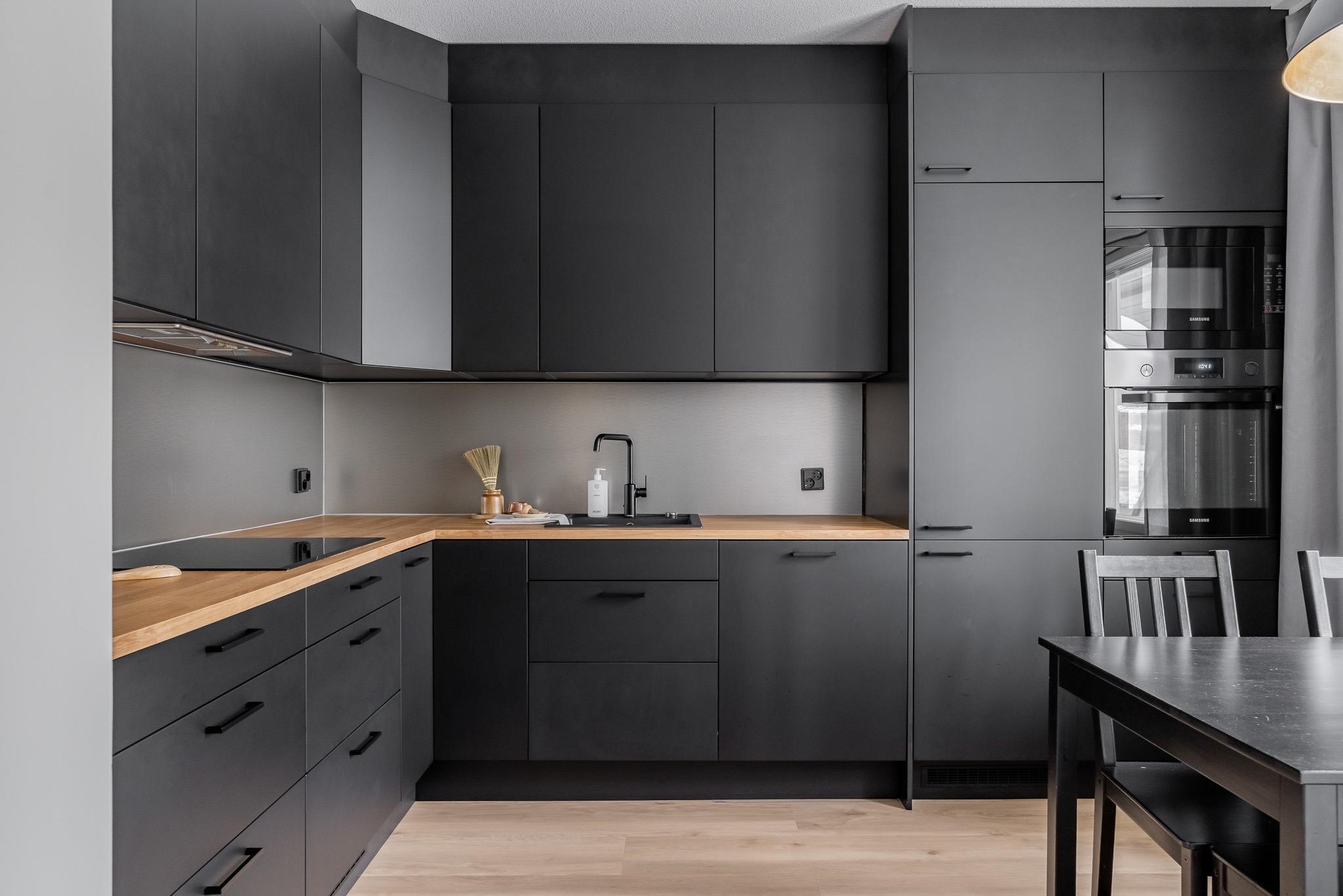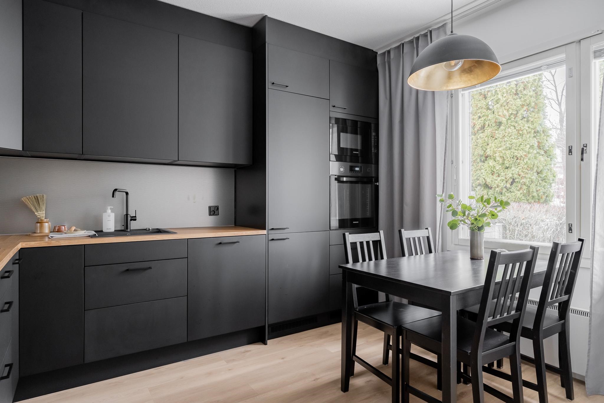 - Integroitu jääkaappipakastin, integroitu erillisuuni, induktioliesi, liesituuletin, integroitu mikroaaltouuni, integroitu astianpesukone, kaapistot ja kiinteät valaisimet. Gigantin Epoq-keittiö, remontoitu 2022.
