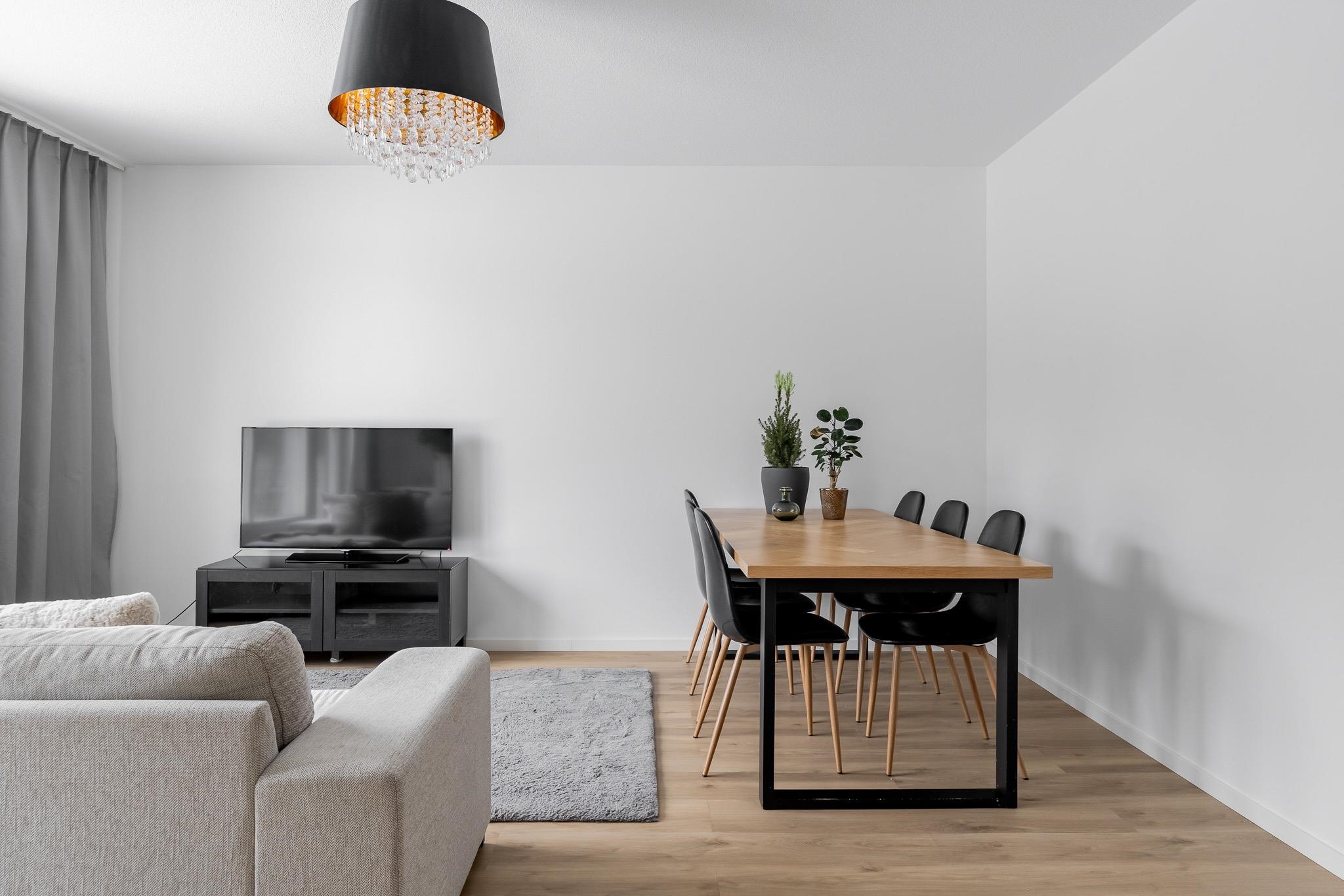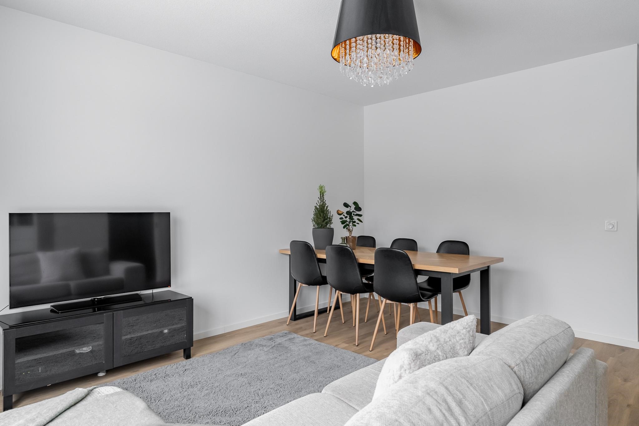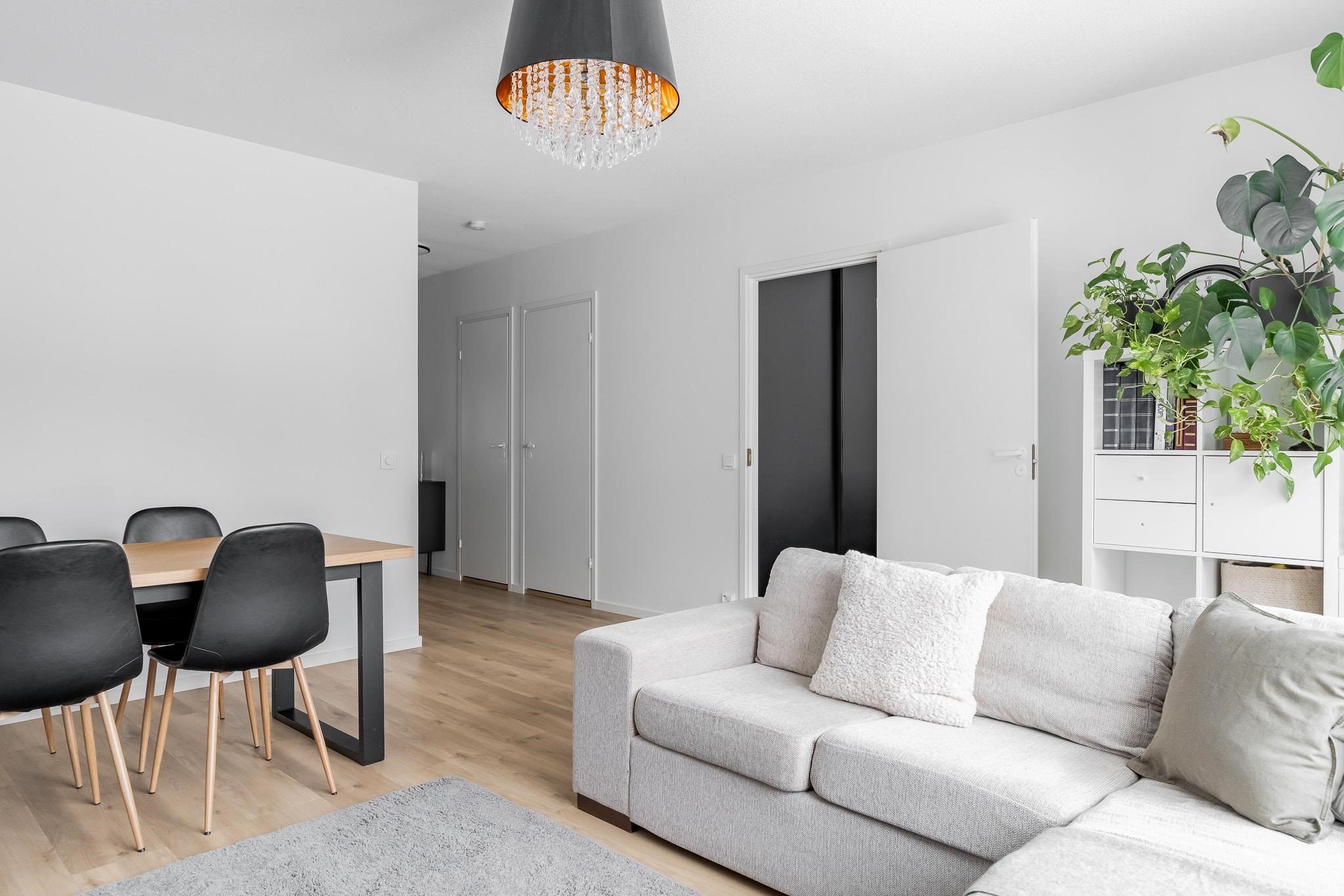 Keittiö on varustettu Gigantin Epoq-kaapistoilla, ja säilytystilaa on runsaasti. Olohuone on tilava ja sieltä on kulku aidatulle takapihalle. Luksusta tuo käyttöullakko, johon pääsee eteisestä (laskettavat portaat). Asuntoon kuuluu autokatospaikka sekä varasto.