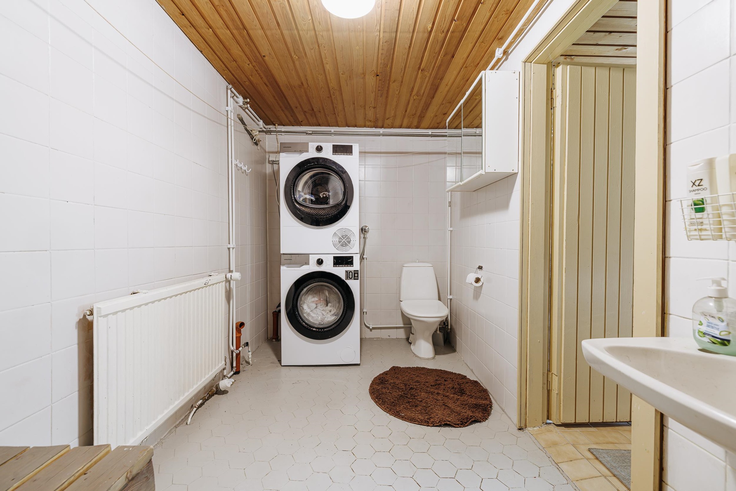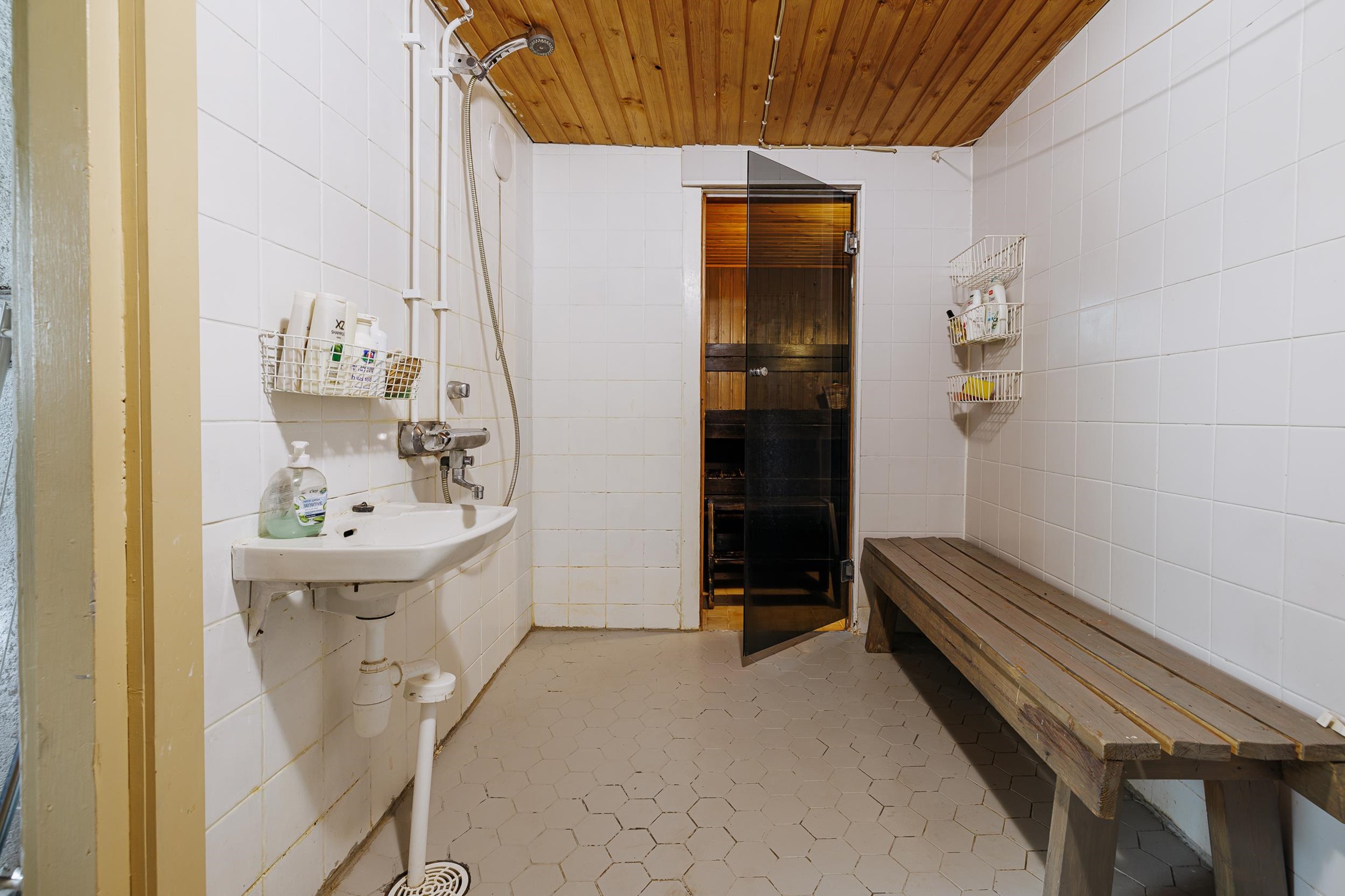 - Sauna, sähkökiuas, erillinen wc, suihku, suihkukaappi, peilit, peilikaappi, kaapit, allaskaappi, pesukoneliitäntä, lattialämmitys, kiinteät valaisimet.