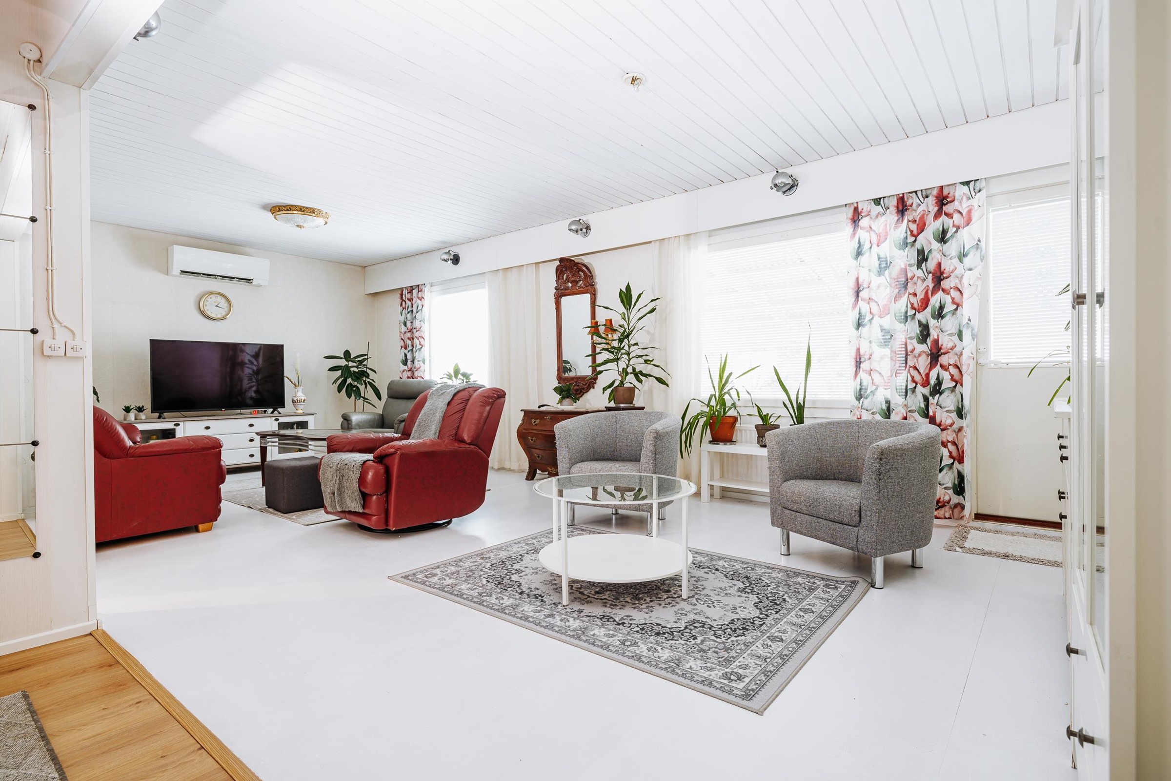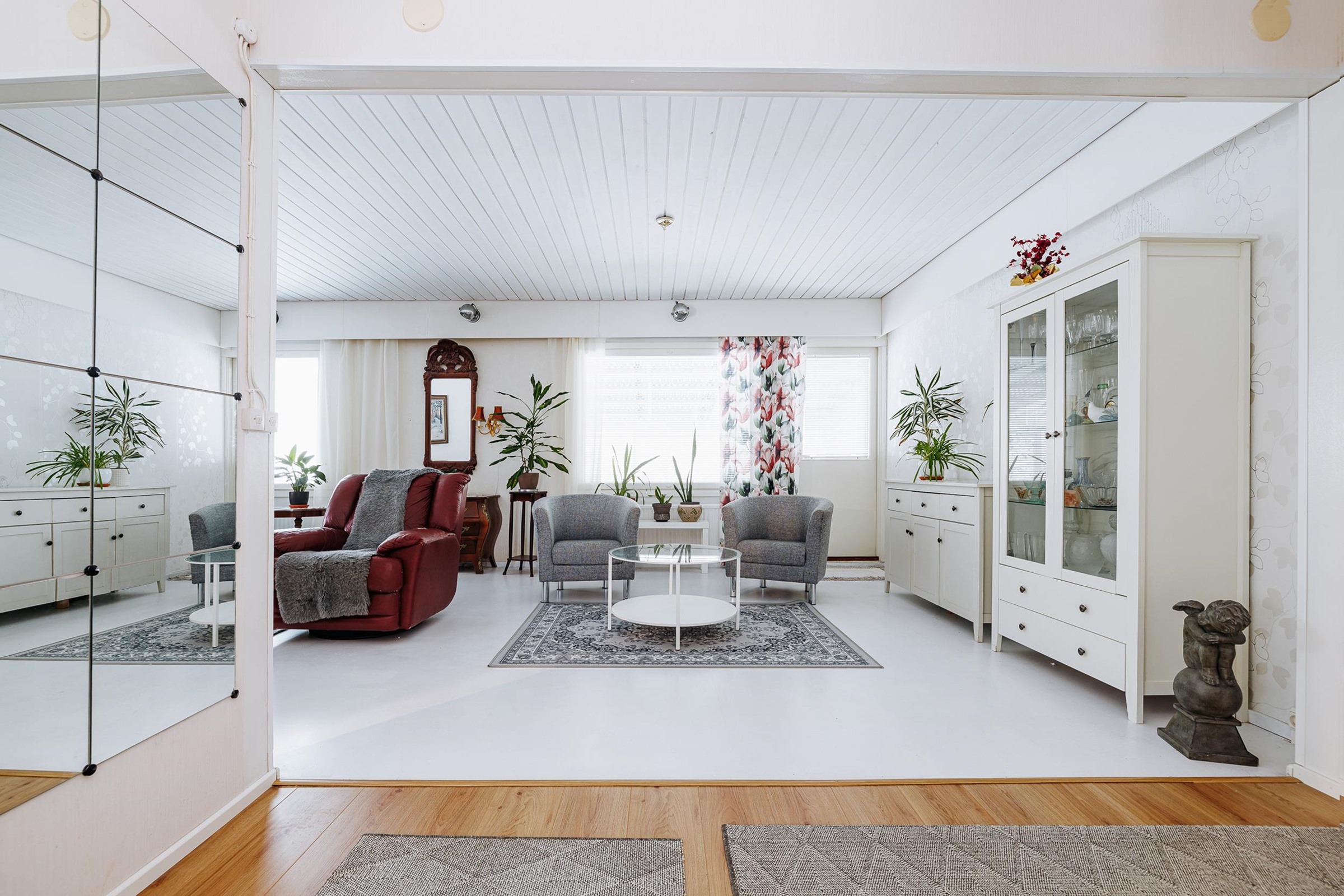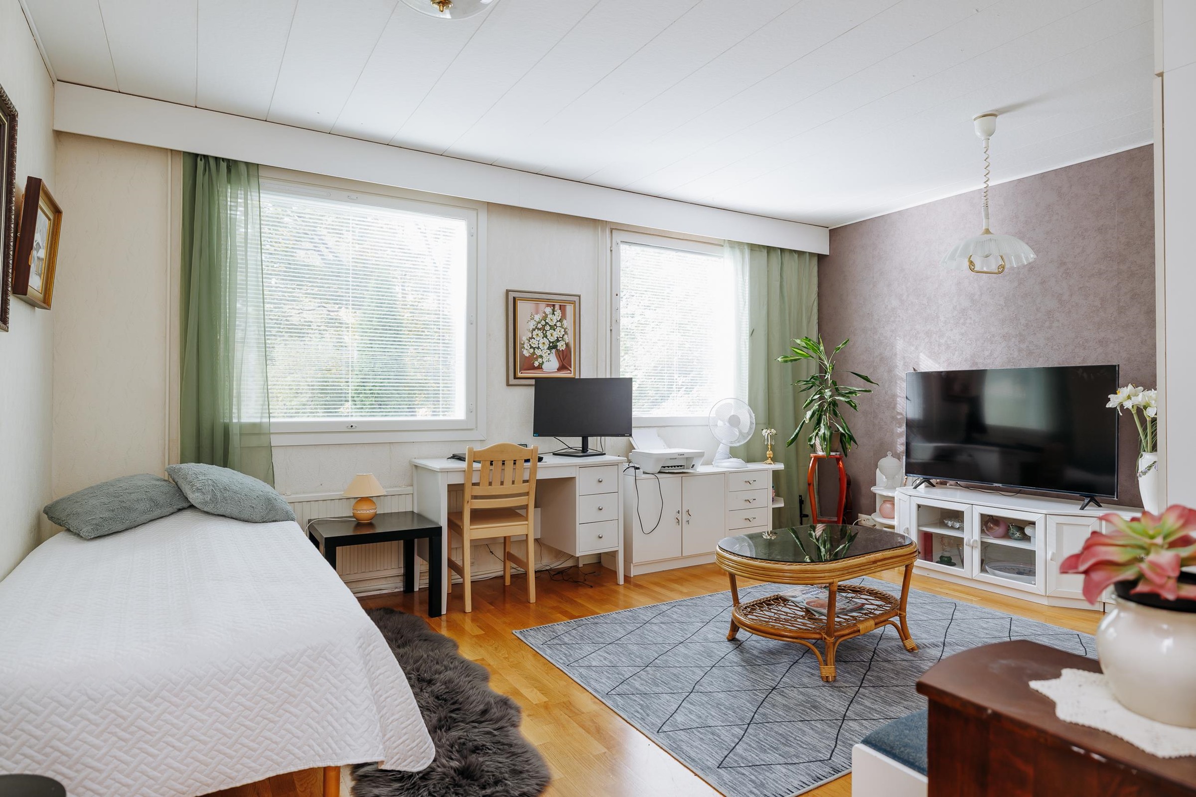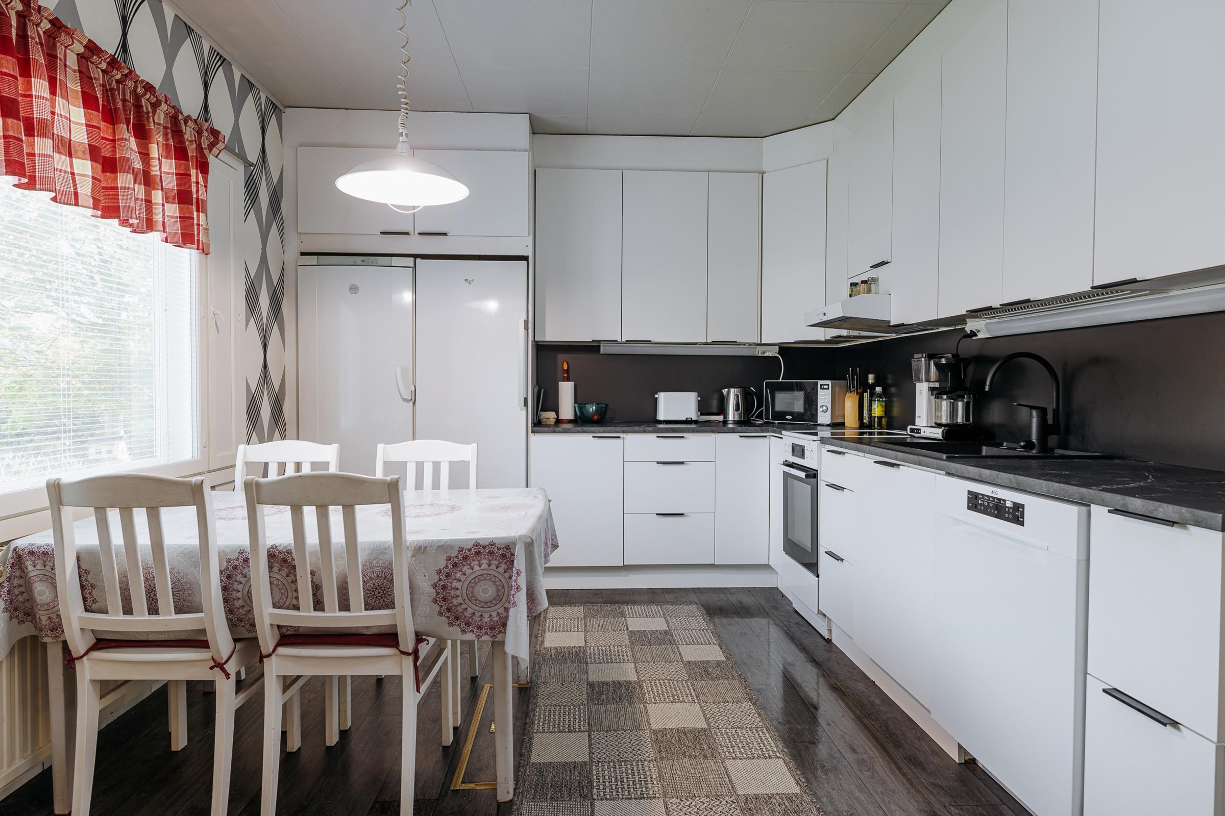 Asuintilat on jaettu toimivasti kahteen kerrokseen. Alakerrassa sijaitsee kaksi makuuhuonetta, vuonna 2024 remontoitu moderni keittiö, olohuone sekä kylpyhuone.Yläkerrasta löytyy kolme makuuhuonetta, erillinen wc sekä oma keittiötila, joka mahdollistaa joustavan asumisen esimerkiksi isommalle perheelle tai etätyöhön.
