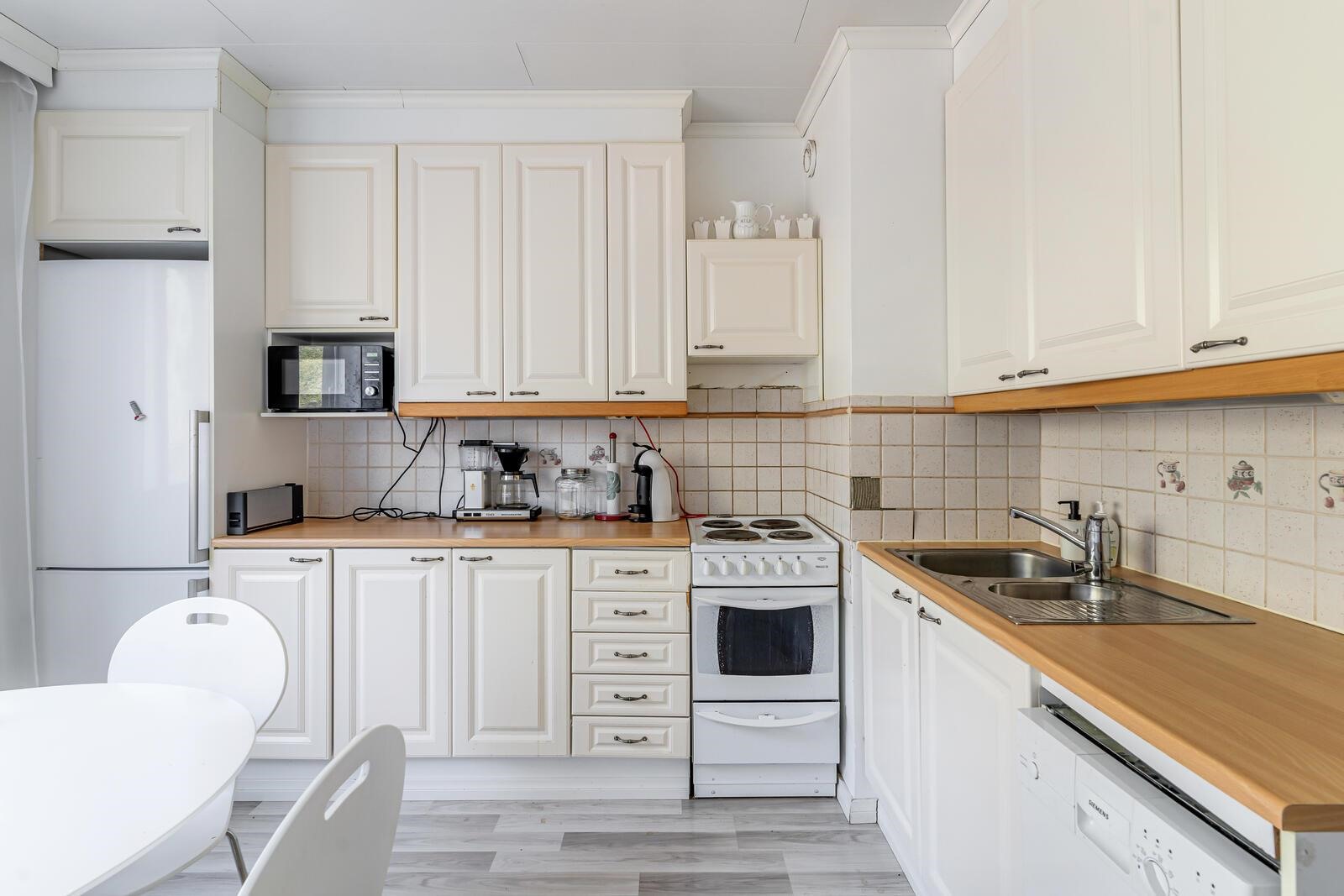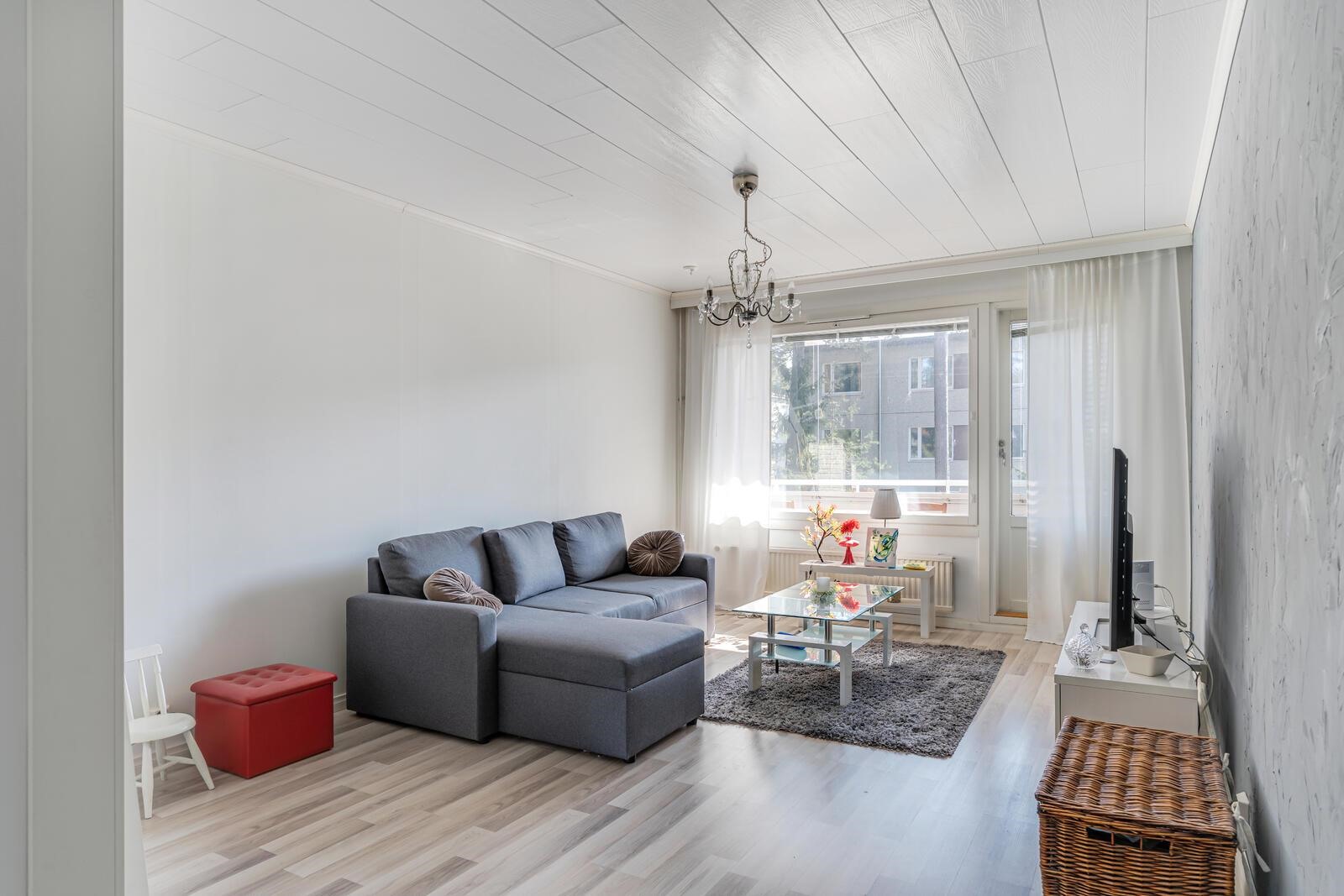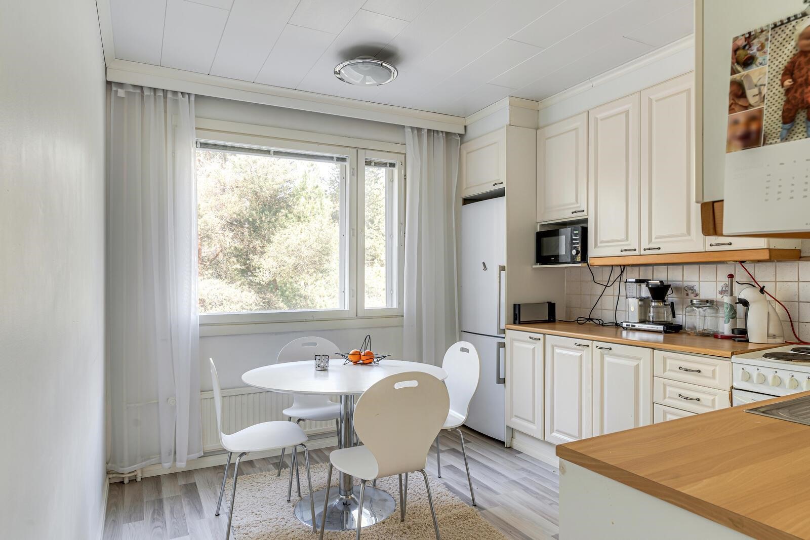 Asunnossa on kolme huonetta, keittiö ja kylpyhuone. Keittiöö uusitaan kaappien ovet ja tasot ennen seuraavaa vuokralaista. Keittiö on varustettu jääkaappipakastimella, lattialiedellä ja astianpesukoneella. Kylpyhuone uusitaan vuonna 2026 putkiremontin yhteydessä ja se sisältää lattialämmityksen, suihkuseinän sekä pesukoneliitännän. Lattiat ovat laminaattia ja seinät tapettia tai maalia. Asuntoon asennetaan viilentävä ilmalämpöpumppu, joka lisää asumismukavuutta kesähelteillä.