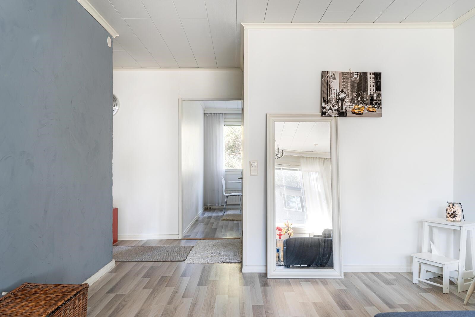 - Kylpyhuone uusittu 2026, suihkuseinä, peilikaappi, allaskaappi, pesukoneliitäntä, lattialämmitys, kiinteät valaisimet.