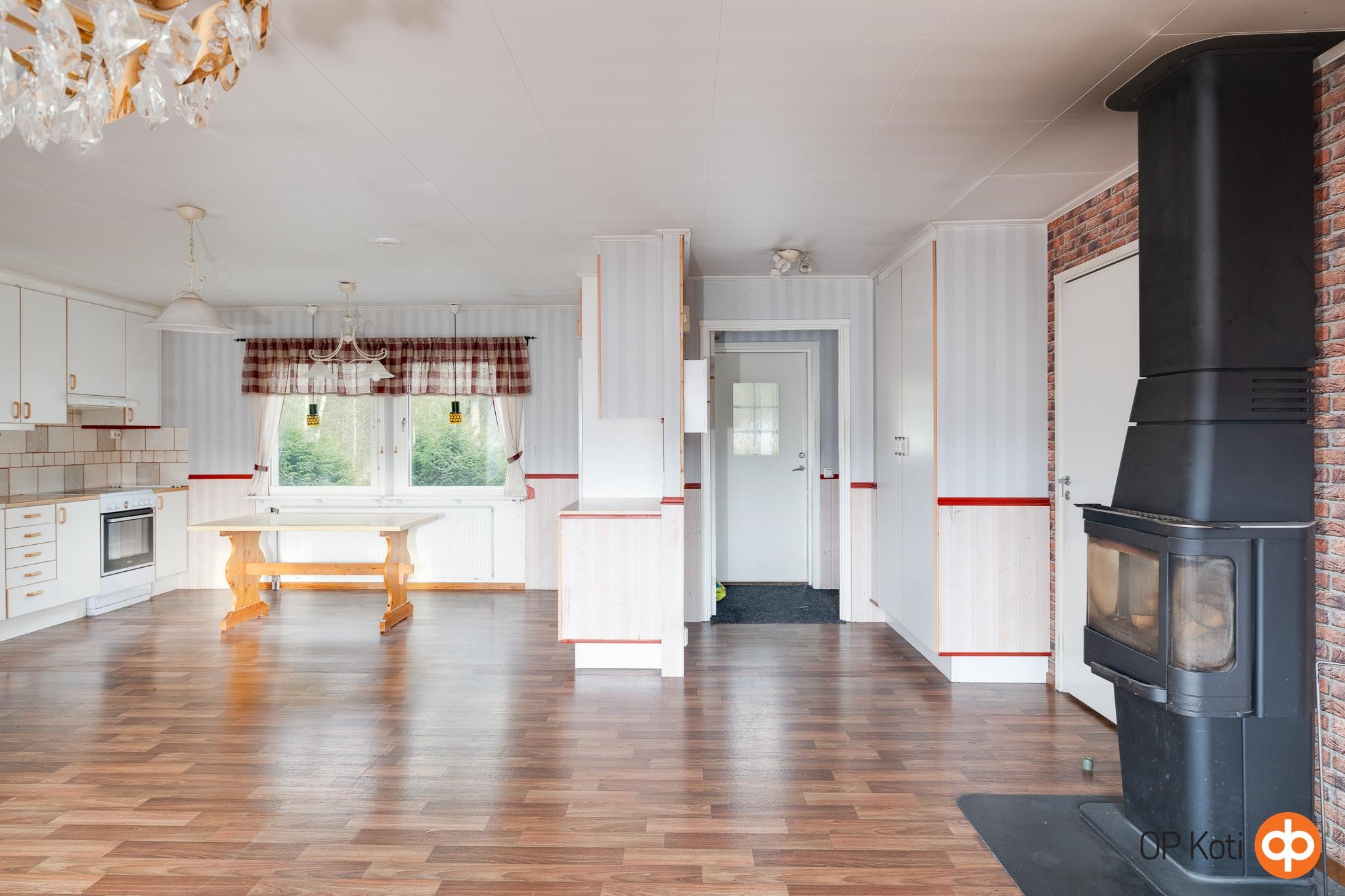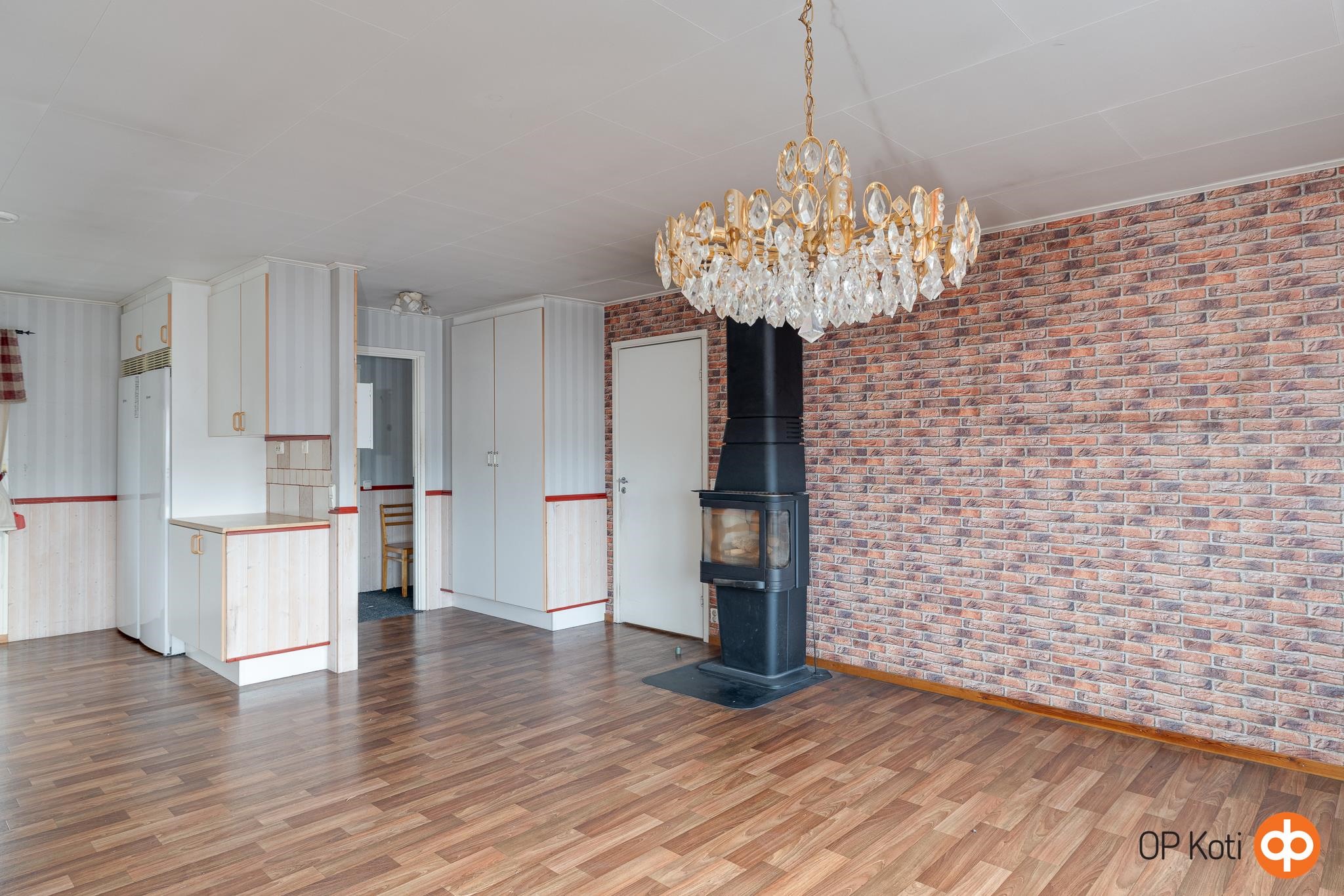 Talo tarjoaa toimivan pohjaratkaisun, jossa on kolme makuuhuonetta, avara olohuone, käytännöllinen keittiö sekä kodinhoitohuone, kylpyhuone ja sauna. Puuelementtirakenteinen talo on varusteltu vesikiertoisella patterilämmityksellä ja koneellisella ilmanvaihdolla. Keittiön varusteet ja kiinteät valaisimet kuuluvat kauppaan, ja lisämukavuutta tuo kaminamallinen takka. Talon kunto on tyydyttävä ja se kaipaa pintaremonttia, mutta tarjoaa samalla mahdollisuuden muokata tilat omien mieltymysten mukaan.