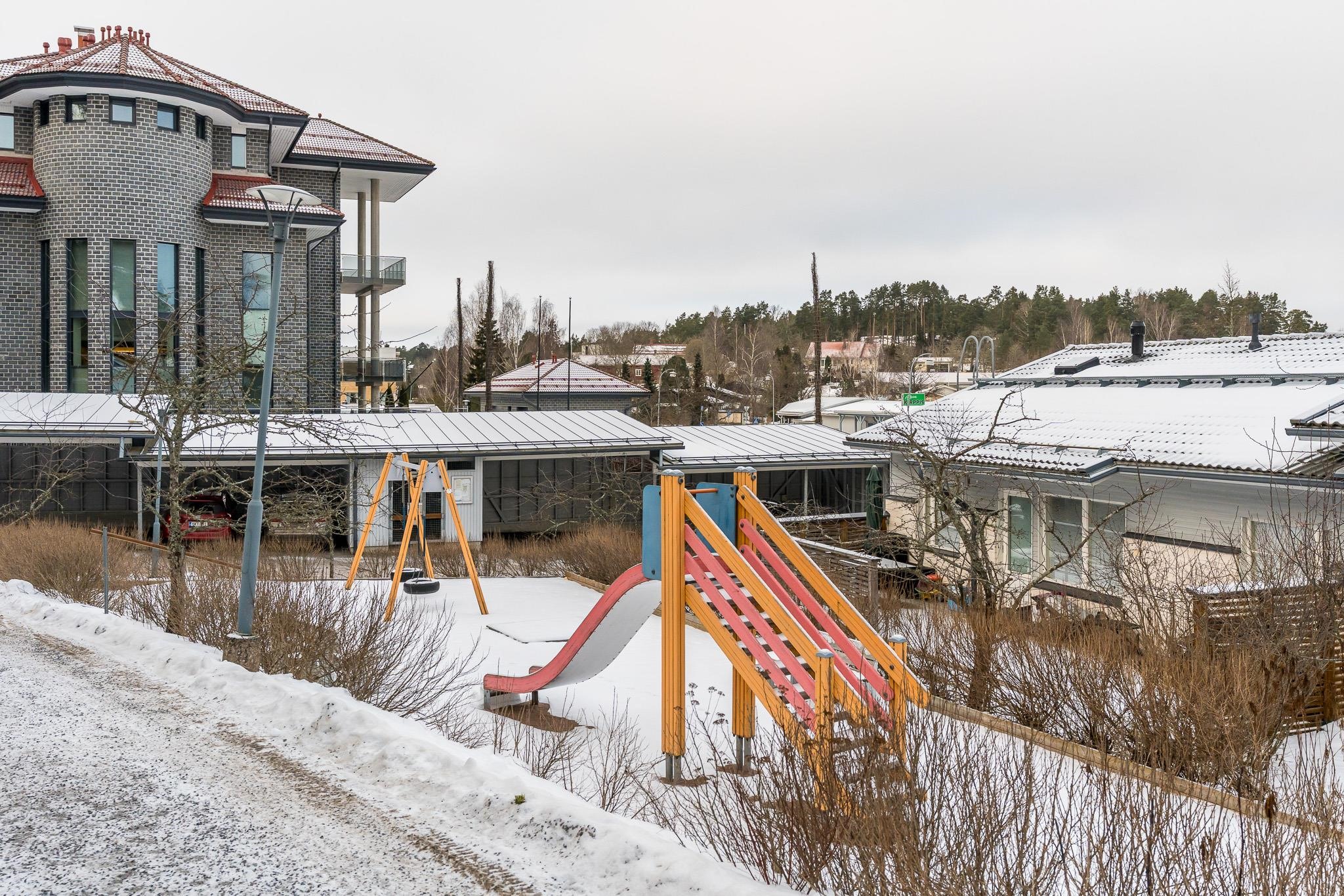 Palvelut: Ruokakauppa alueella. Koulut: Alueella. Päiväkoti: Alueella. Liikenneyhteydet: Föli n. 500 m