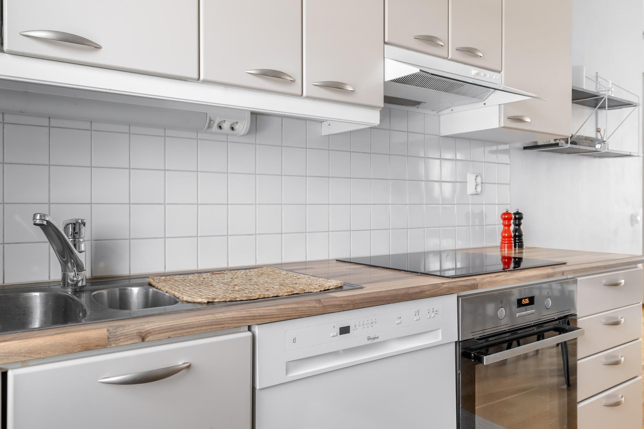- Jääkaappi 2024 uusittu, pakastekaappi 2024 uusittu, erillisuuni, liesitaso induktio, talotuuletin, astianpesukone, kaapistot, kiinteät valaisimet.