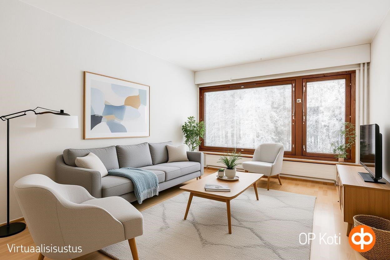 Valoisasta olohuoneesta on käynti erilliseen keittiöön, mikä tekee arjesta sujuvaa ja tilankäytöstä selkeää. Tämän kevytrakenteisen seinän voi halutessaan myös purkaa yhtenäiseski tilaksi olohuoneen kanssa. Kaksi tilavaa makuuhuonetta tarjoavat joustavat puitteet niin perheen tarpeisiin kuin etätyöhön. Asunnon ehdoton helmi on levyinen, lasitettu länsiparveke, joka kutsuu nauttimaan ilta-auringosta. Vaatehuone tuo runsaasti säilytystilaa ja kylpyhuoneessa on paikka pyykinpesukoneelle, mikä lisää asumismukavuutta.