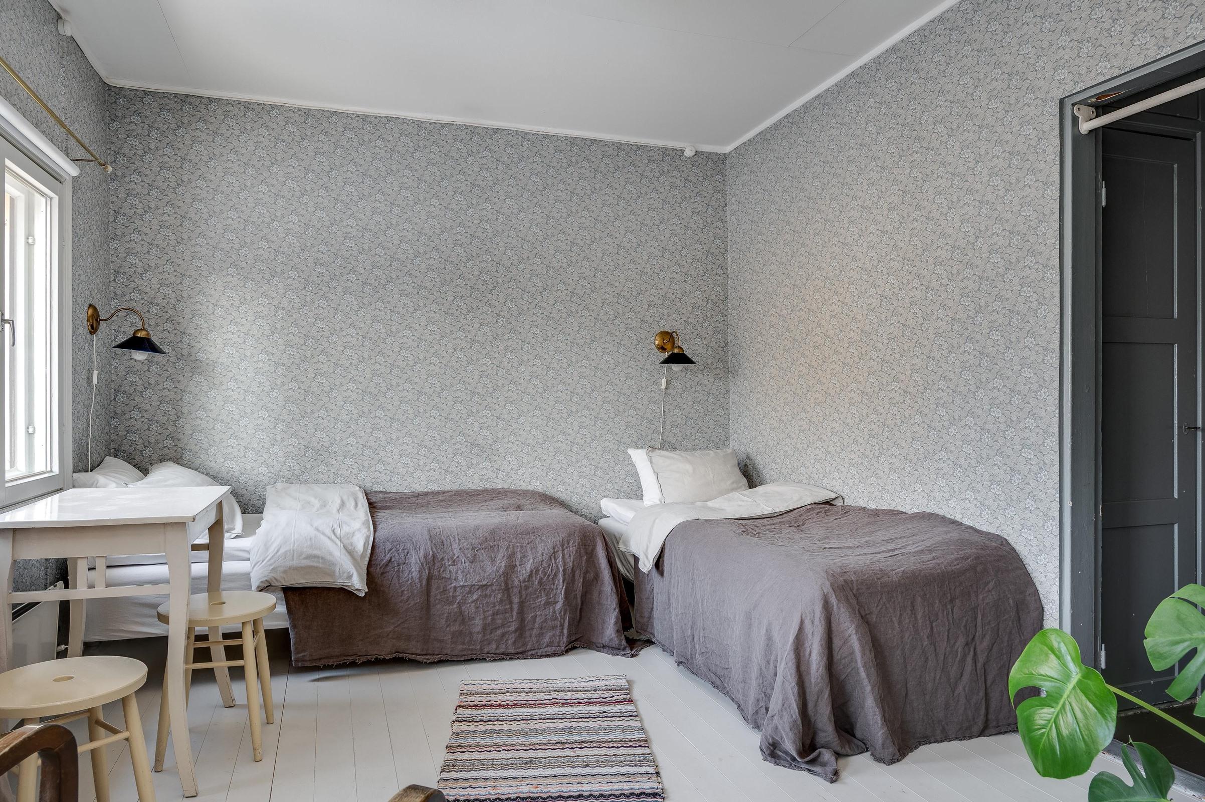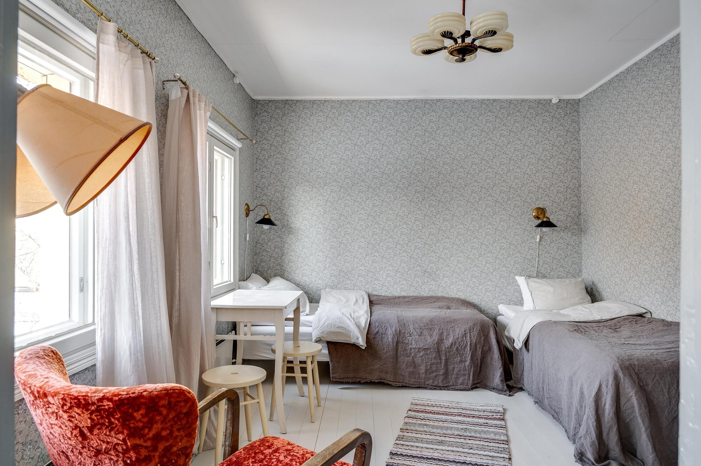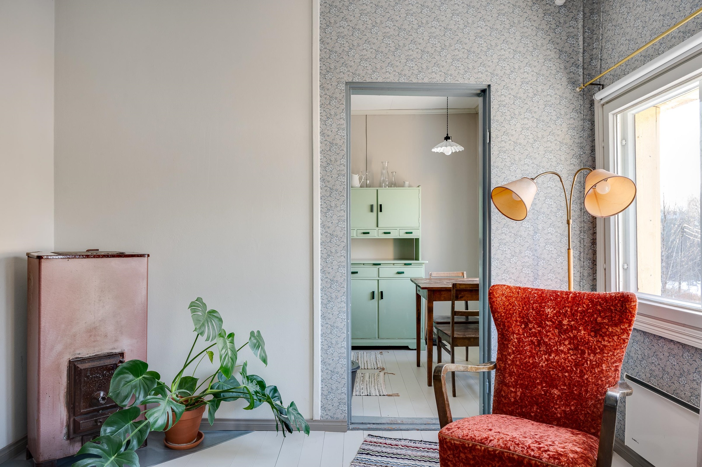 Keittiö: Lautalattia (alla runkolauta, päällä ohut laudoitus), seinät maalattu. Olohuone: Lautalattia (alla runkolauta, päällä ohut laudoitus), seinät tapetoitu. Kylpyhuone: Laatoitettu. Eteinen: Alkuperäinen lautalattia, seinät maalattu.