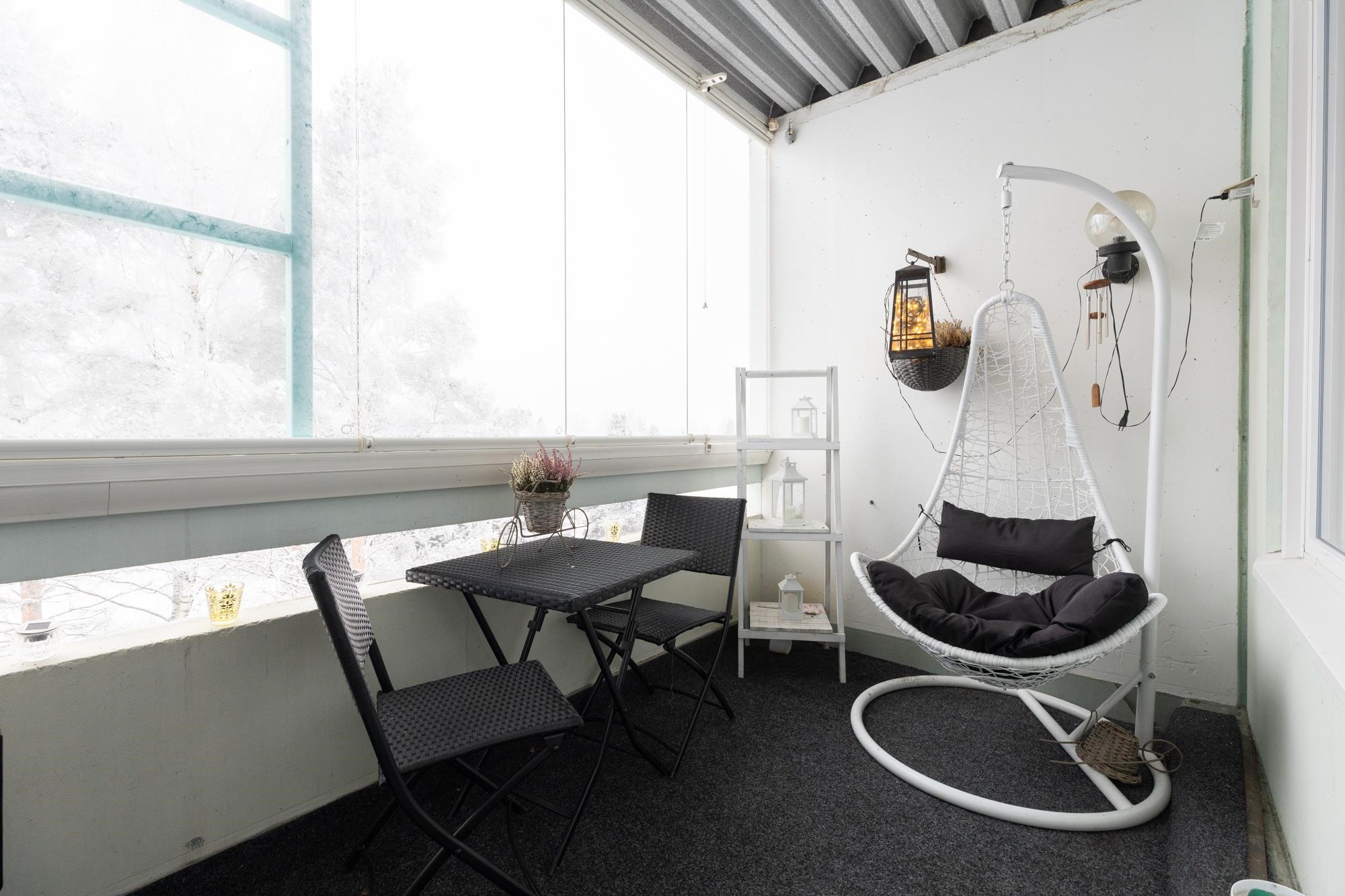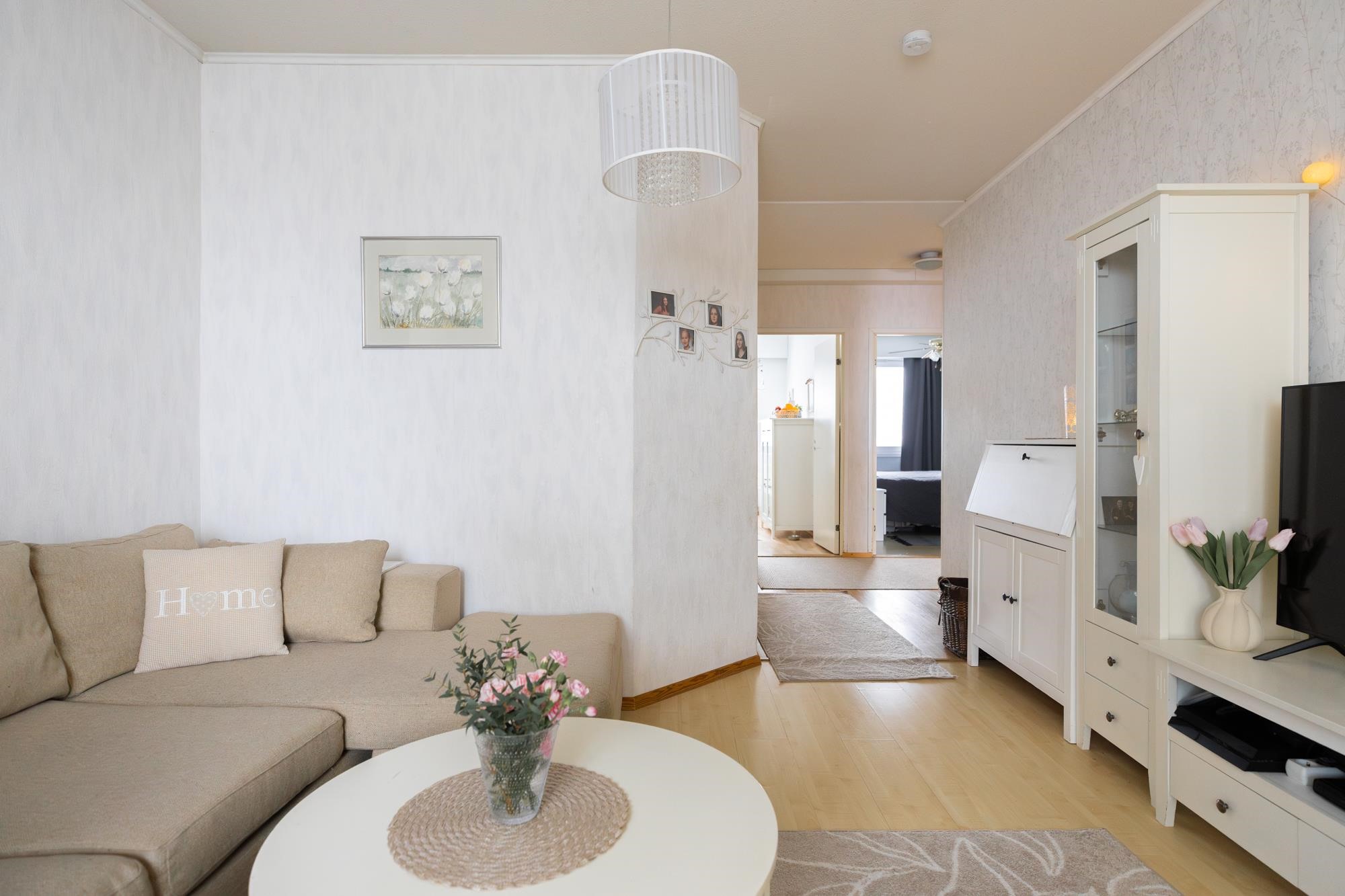 Asuntoon on tehty pintaremonttia vuosien saatossa ja se onkin varsin viihtyisä kokonaisuus. Tilat ovat valoisat ja pohjaratkaisu on onnistunut, jonka lisäksi säilytystilan määrä on optimaalinen. Mukavana lisänä on lasitettu parveke.