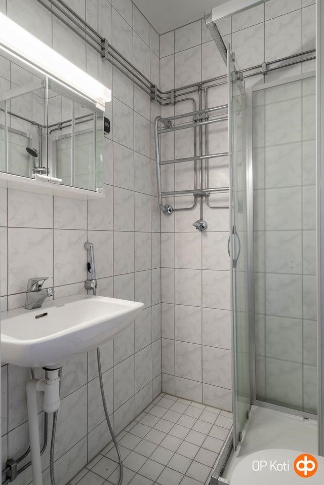 - Kylpyhuone Suihkukaappi asennettu 2009, suihku, suihkukaappi, peilikaappi, pesukoneliitäntä, kiinteät valaisimet, Pyyhekuivain.