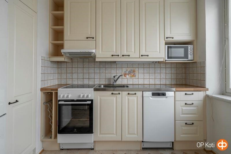 - Jääkaappipakastin, keraaminen liesi, liesituuletin, mikroaaltouuni, astianpesukone, kaapistot Uusittu 2009, kiinteät valaisimet.
