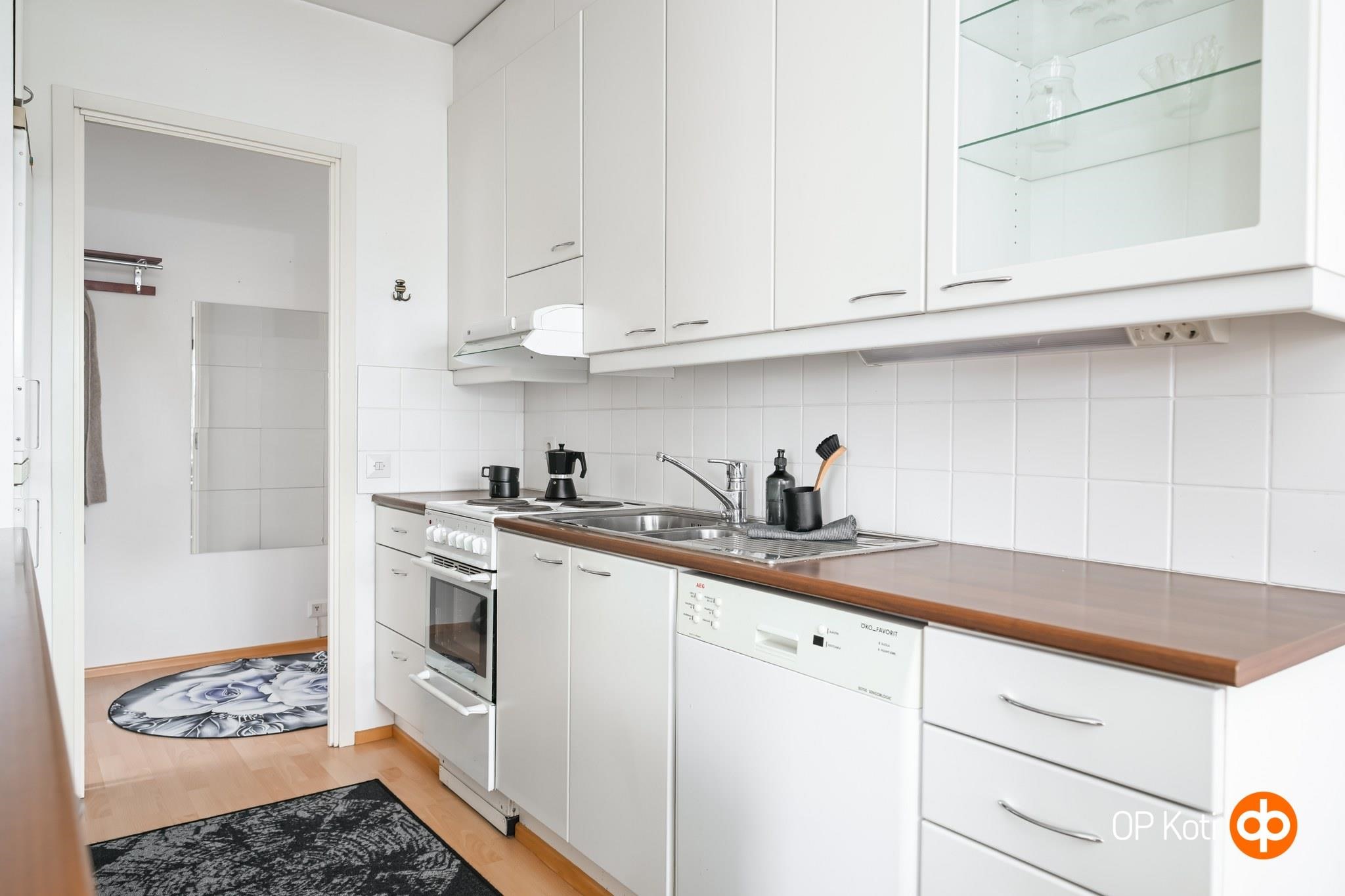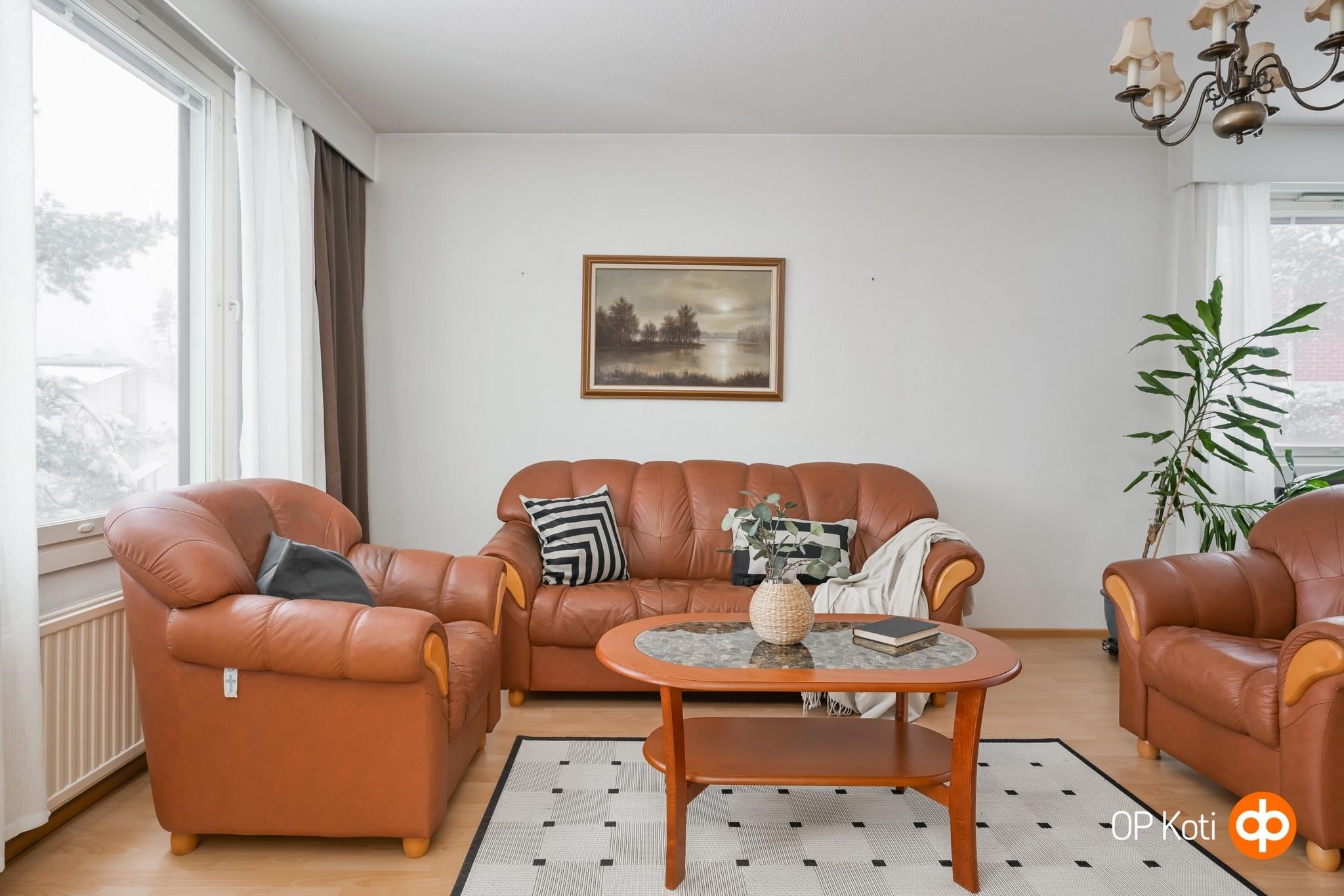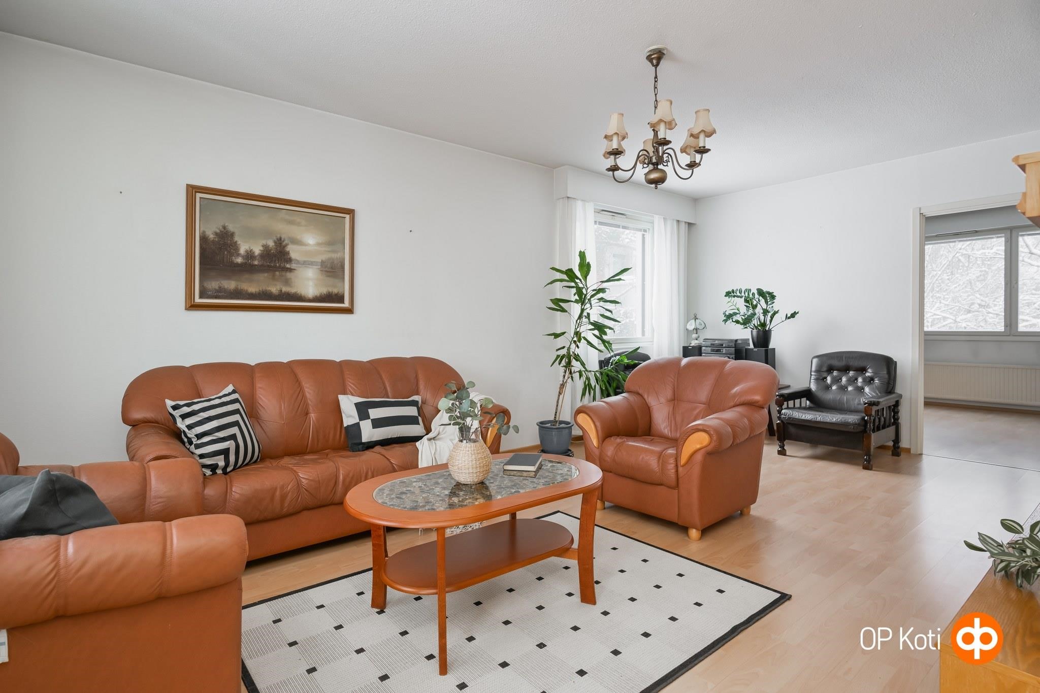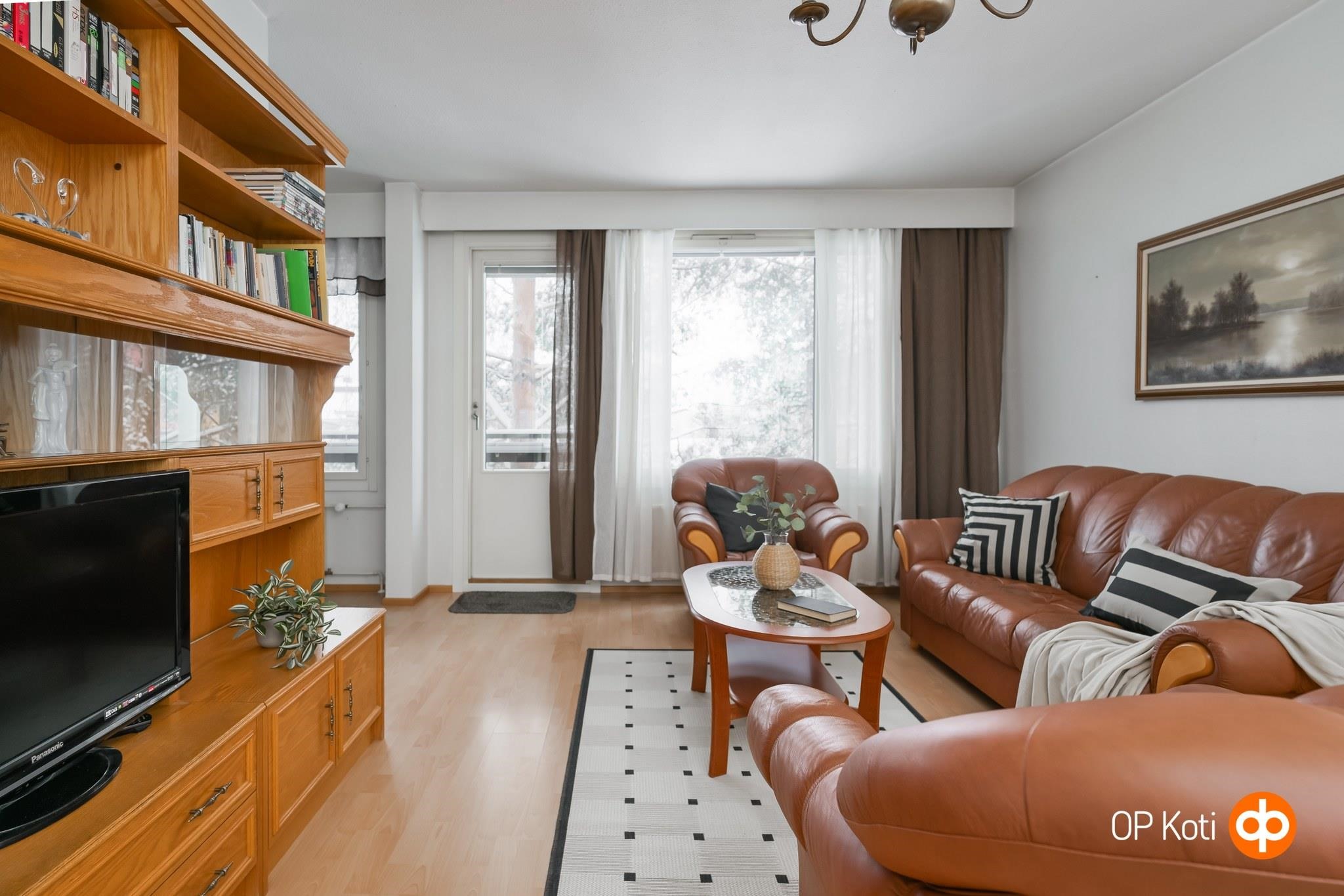 Tässä on heti vapaa kulmahuoneisto, jossa vain yhdellä seinällä on naapurit. Koti sijaitsee kolmannessa kerroksessa, hissittömässä talossa, mutta näkymät asunnosta ja lasitetulta parvekkeelta ovat sangen viihtyisät ja suojaisat. Koivut ja männyt suojaavat kivasti kesän paahteilta, kun leveä parveke on lounaaseen. Asunnon ikkunat ovat kolmeen suuntaan, tehden asunnosta entistä avaramman oloisen.