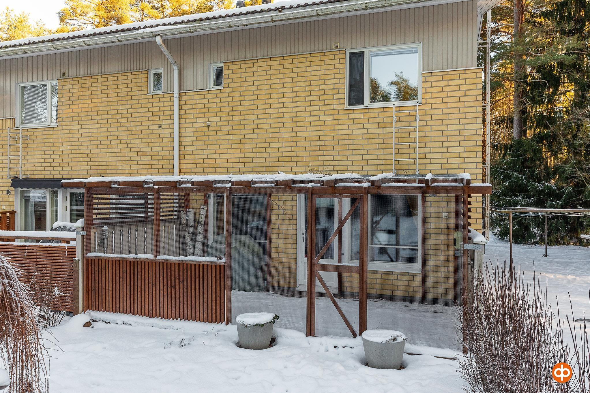 Pihapiiri on siisti ja hyvin hoidettu, ja päätyasunnon sijainti lisää yksityisyyttä ja rauhaa.