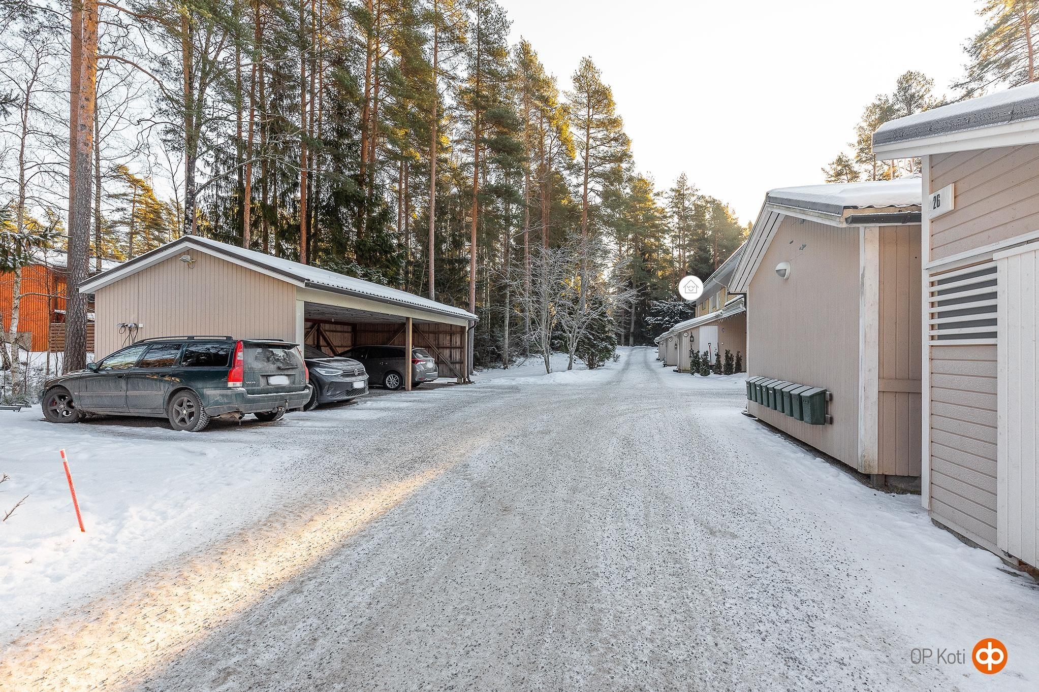 Autokatospaikka sisältyy huoneistoon ja helpottaa pysäköintiä ympäri vuoden.