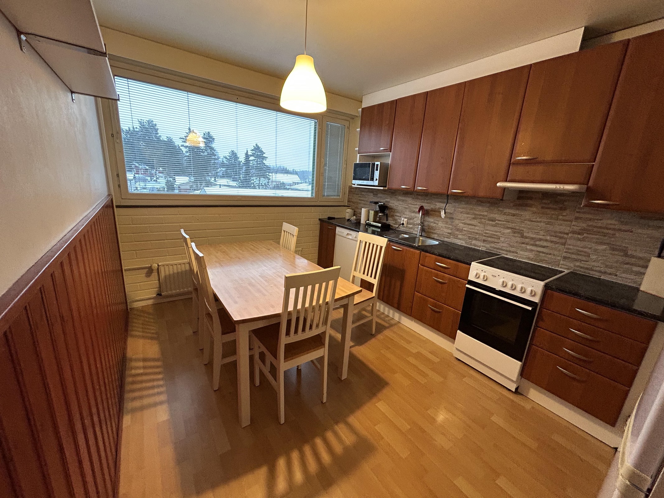 - Jääkaappipakastin, keraaminen liesi, liesituuletin, astianpesukone, kaapistot.