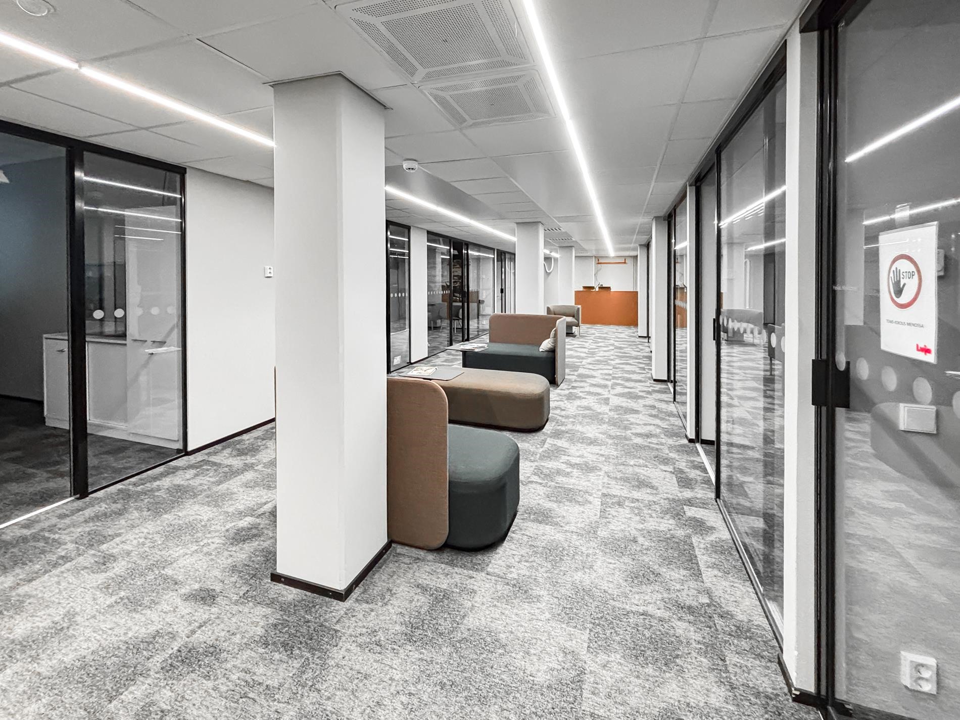 Tähän tilaan on käynti omalla sisäänkäynnillä sisäpihan porraskäytävän kautta. Tyylikkäät toimistohuoneet on sijoitettu avaran käytävän varrelle. Käytävältä löytyy istumapaikkoja esim. asiakkaita varten tai taukotilaksi. Toimistohuoneet ovat eri kokoisia, ja osa huoneista sopii mainiosti useammallekin työskentelijälle. Kaikki huoneet ovat ikkunallisia, ja näin ollen valoisia.