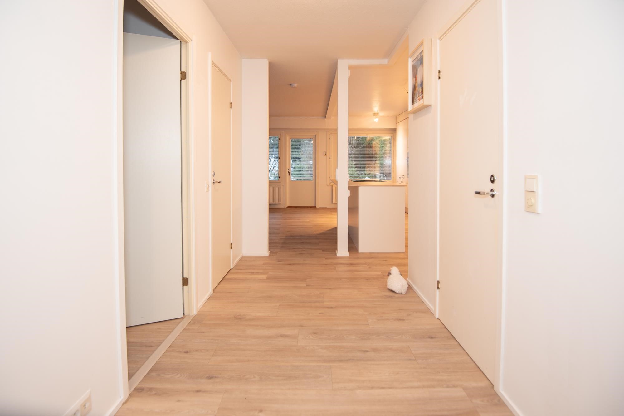 Huoneiston pohjaratkaisu on selkeä ja toimiva: kaksi isoa huonetta, tilava keittiö, jossa paljon kaappitilaa sekä aamiaskaappi. Tilava olohuone mahdollistaa monipuoliset sisustusratkaisut. Asunnosta löytyy oma sauna, vaatehuone sekä erillinen ulkovarasto. Laadukkaat materiaalit, siisti kunto ja vaaleat pinnat tuovat modernia ilmettä. Olohuoneesta on käynti omalle terassille ja piha-alueelle, jossa voit nauttia auringosta ja rauhasta.