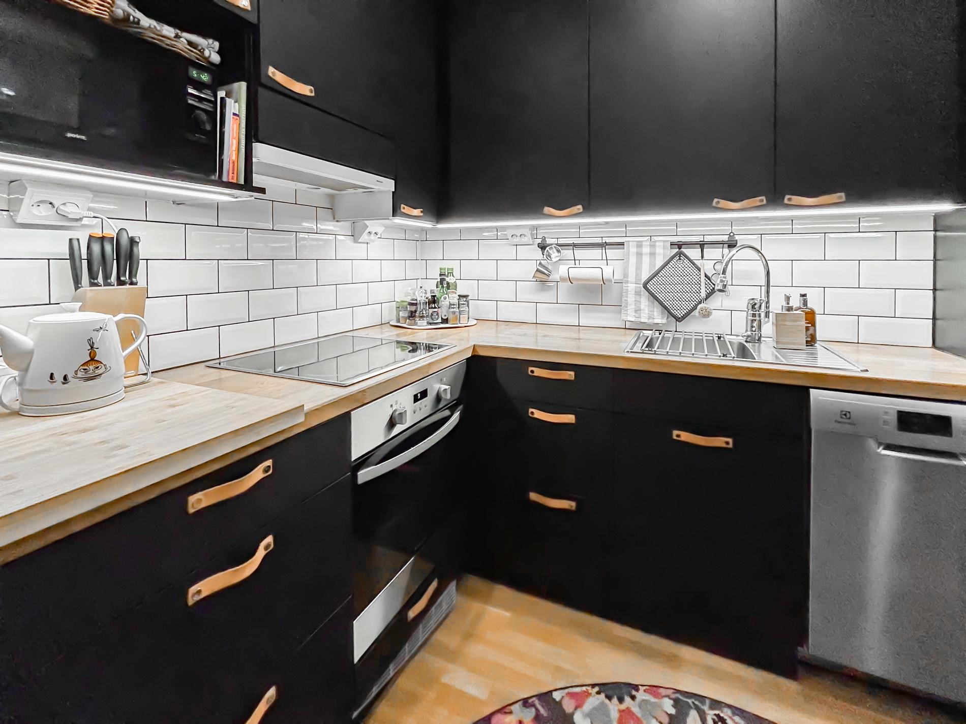 - Jääkaappi, pakastekaappi, erillisuuni, keraaminen liesi, liesituuletin, mikroaaltouuni, astianpesukone. keittiö remontoitu 2021