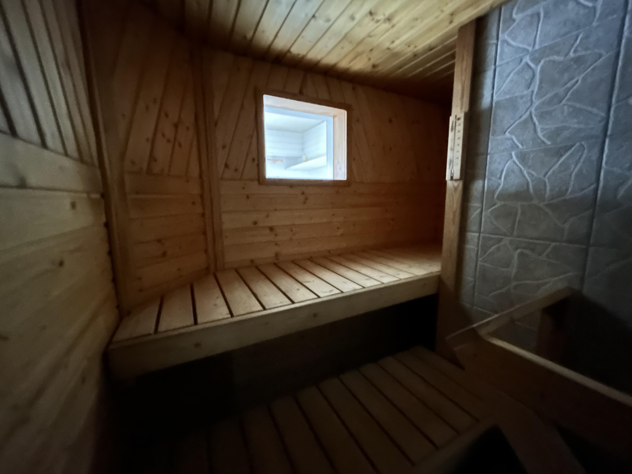 - Sauna, sähkökiuas, kylpyhuone, suihku, peilit, pesukoneliitäntä, kiinteät valaisimet.