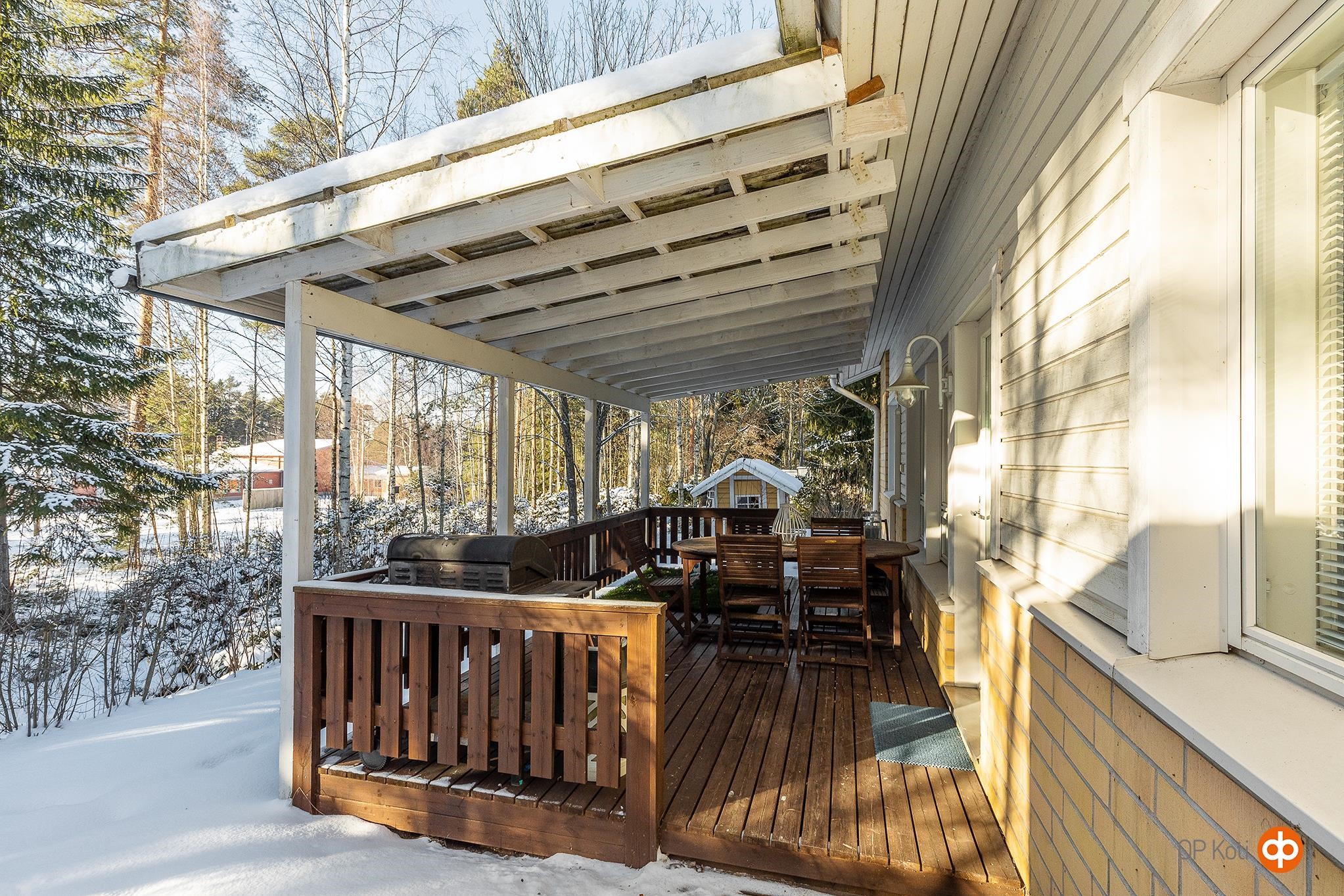 - 94,5 m2Asuintilojen pinta-ala sisältää lämpimän varaston, johon kulku autokatoksen kautta.