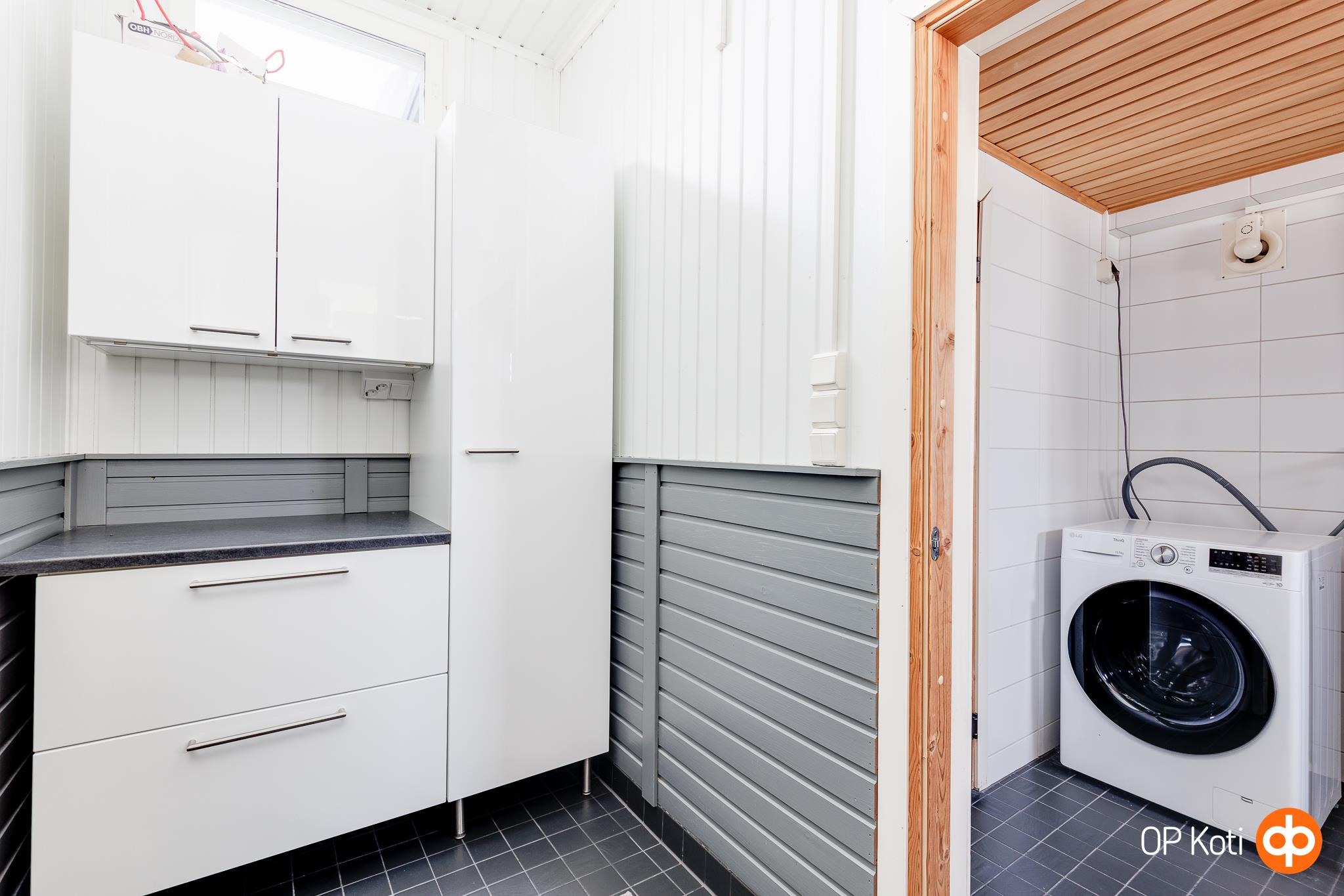 Kodissa on selkeä ja toimiva pohjaratkaisu, joka tarjoaa runsaasti tilaa niin yhdessäoloon kuin arjen askareisiinkin. Tilava olohuone ja käytännöllinen keittiö luovat miellyttävät puitteet yhteisille hetkille, ja kolme makuuhuonetta antavat omaa rauhaa isommallekin perheelle. Kodinhoitohuone tekee arjesta sujuvampaa, ja saunan sekä kylpyhuoneen uusitut pinnat tuovat asumiseen ripauksen modernia ylellisyyttä. Säilytystilaa löytyy runsaasti, ja arkea helpottavat varusteet, kuten valokuituyhteys sekä etäohjattava sähköauton latauspiste, tuovat asumiseen modernia mukavuutta.