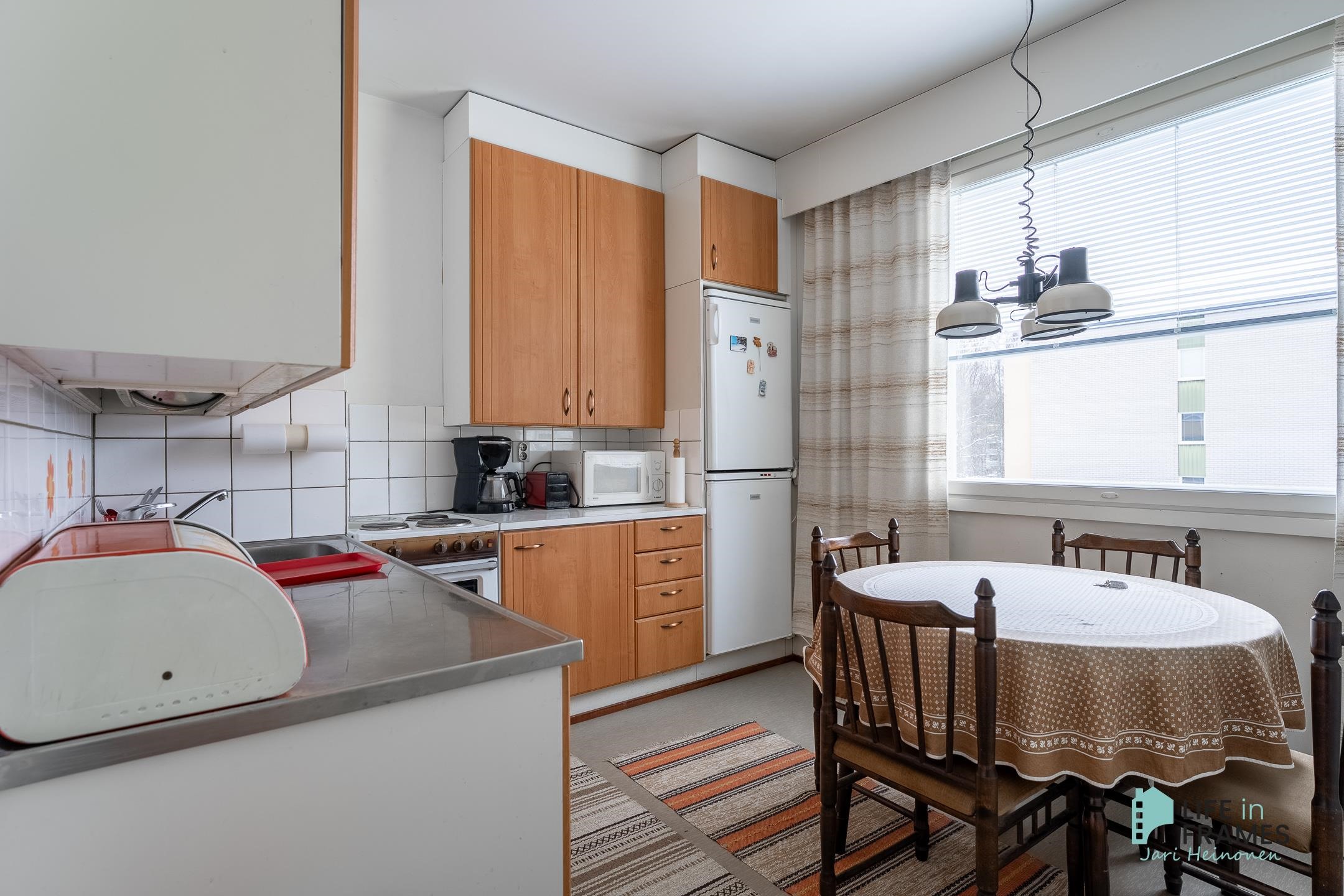 - Jääkaappipakastin, sähköliesi, kiinteät valaisimet.