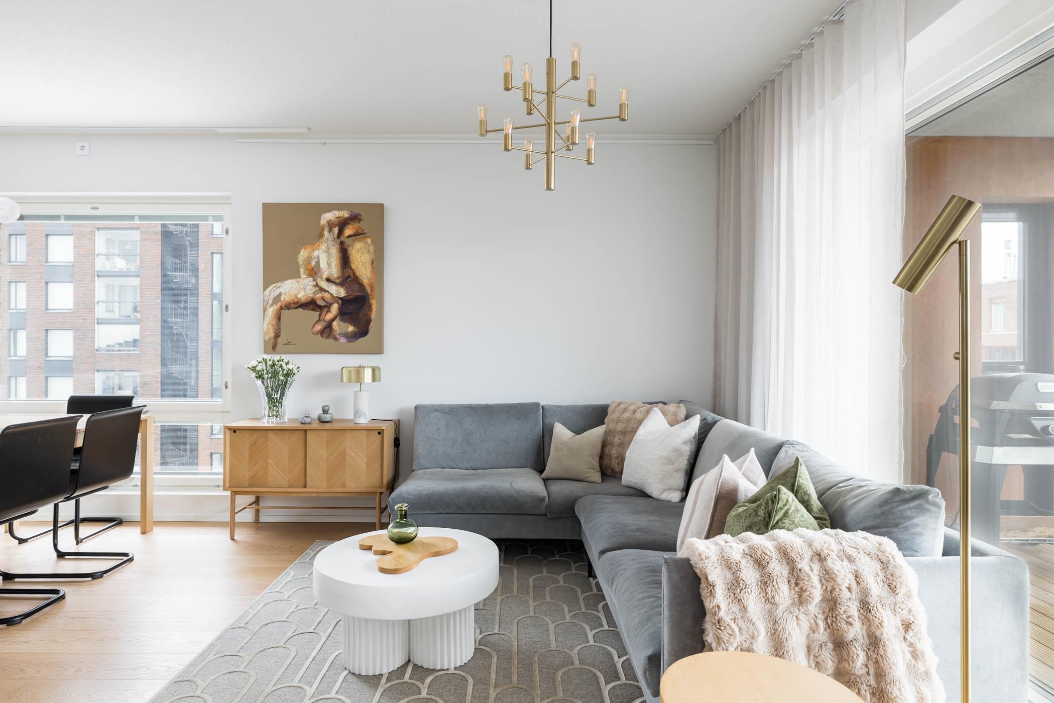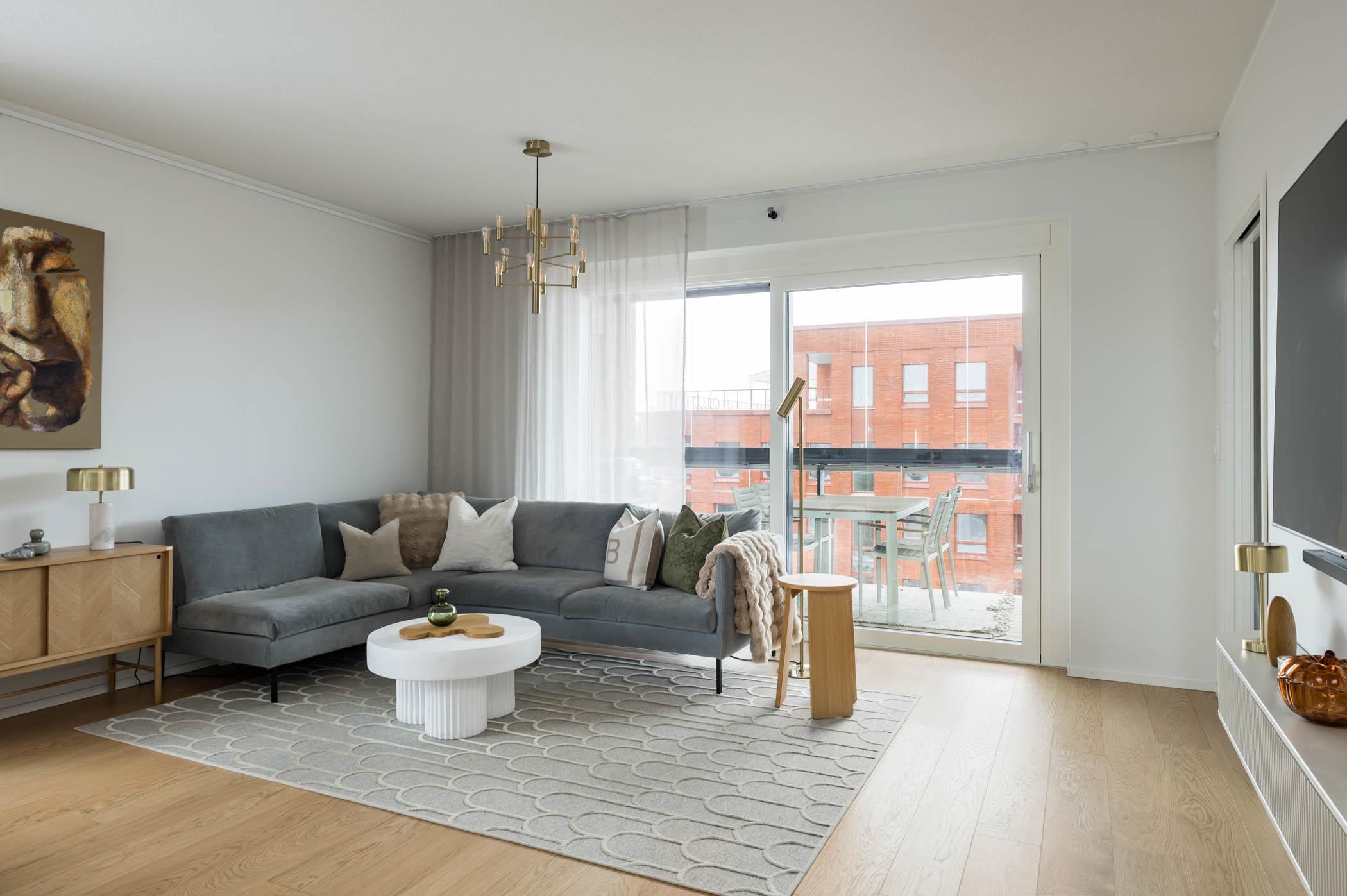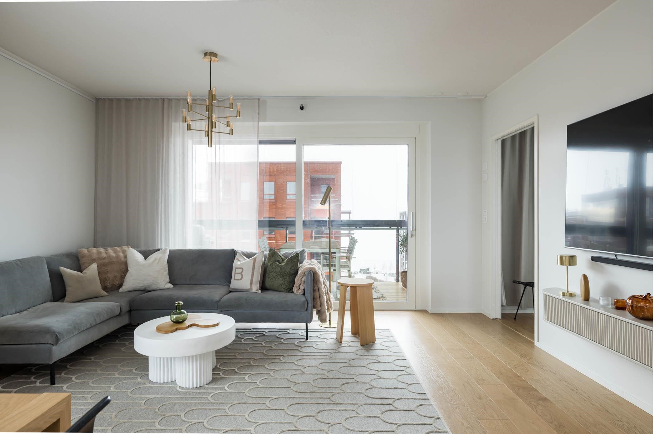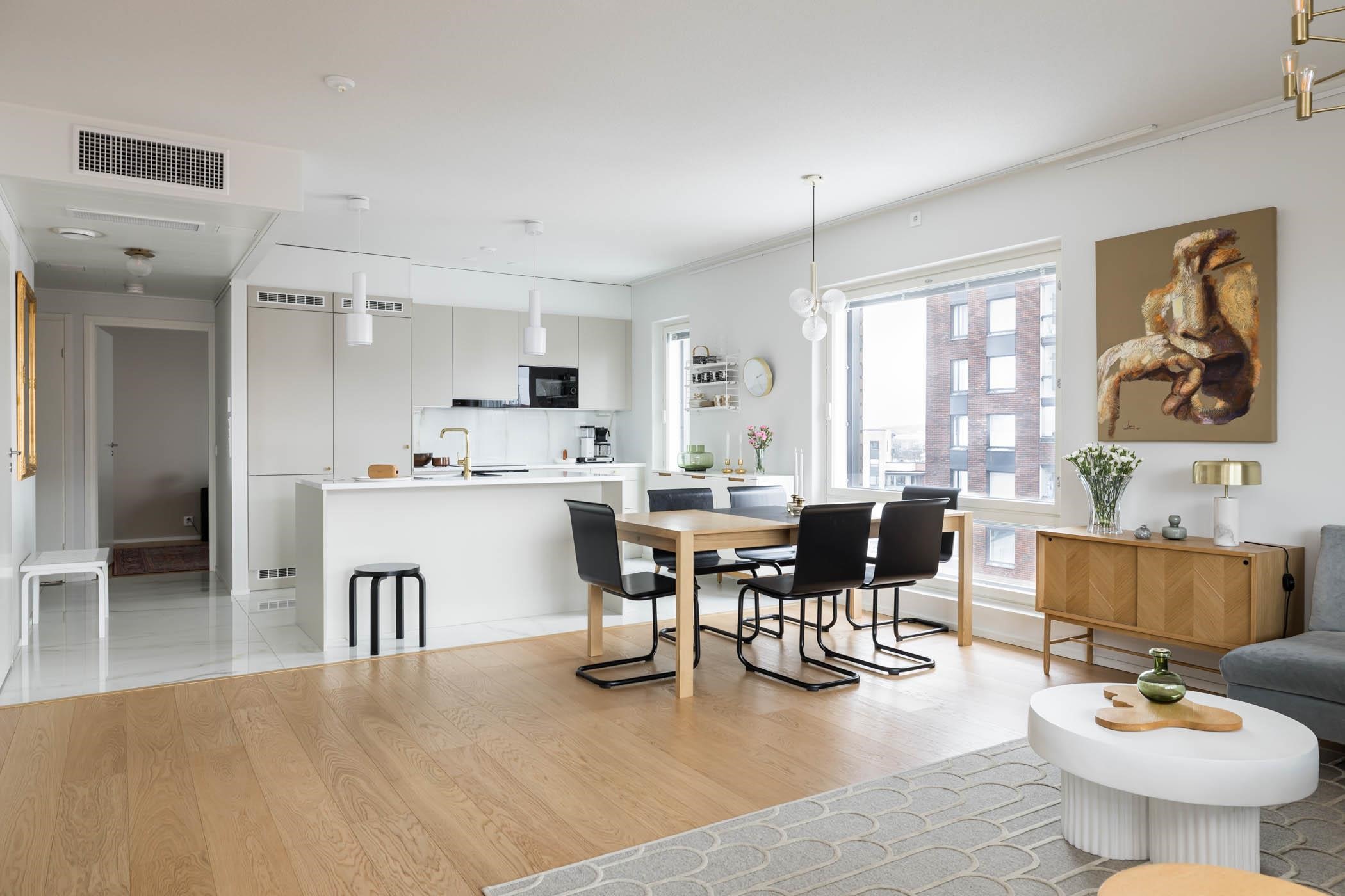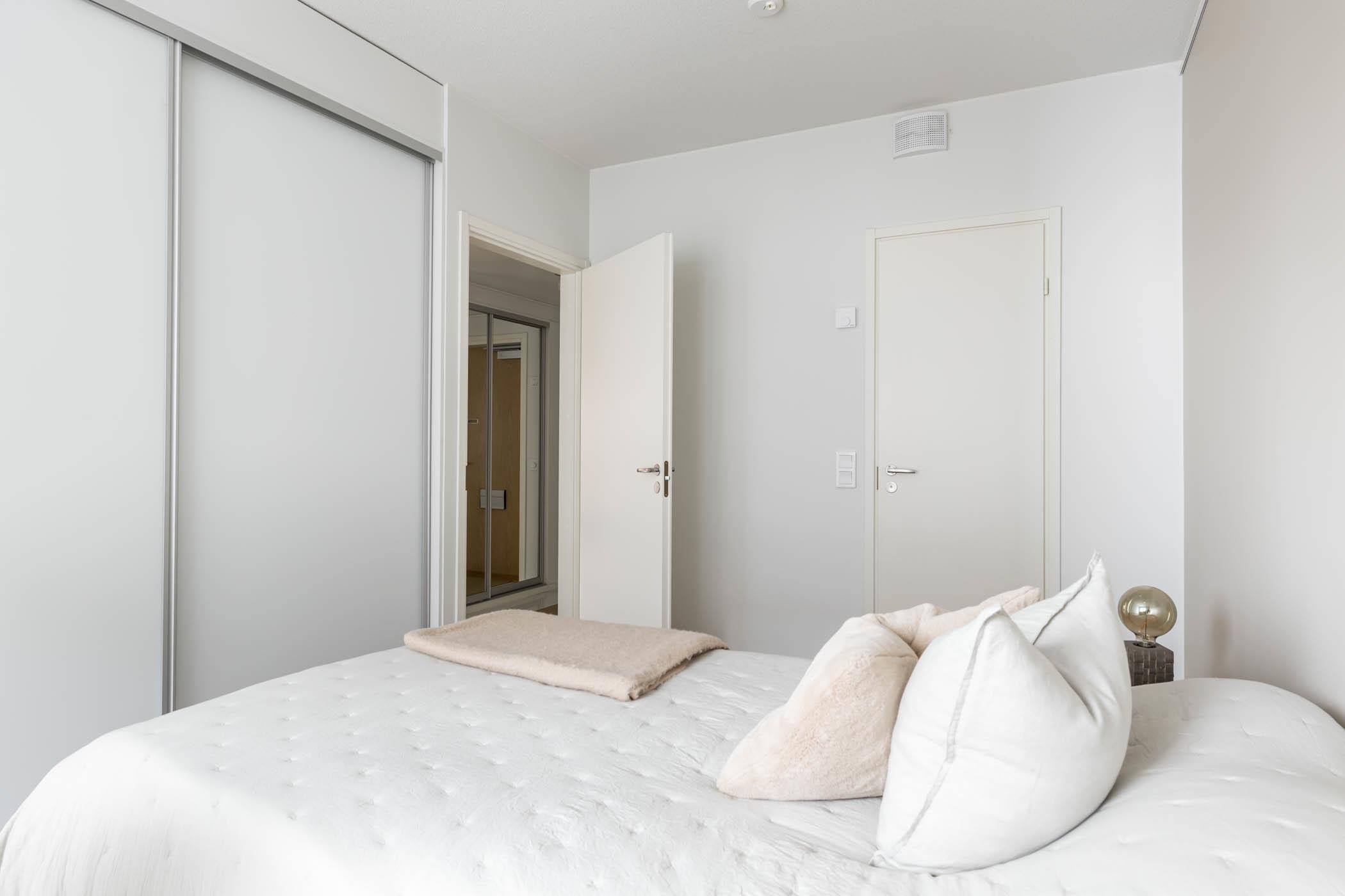Avara pohjaratkaisu, keittiön ja olohuoneen toimiva kokonaisuus sekä luonnonvalon kaunis kulku tuovat asumiseen miellyttävää avaruutta. Kylpyhuone ja sauna jatkavat samaa hillityn eleganttia linjaa laadukkaine materiaaleineen, ja erillinen kodinhoitohuone lisää arjen käytännöllisyyttä. Makuuhuoneet sijoittuvat pohjassa miellyttävästi ja tarjoavat rauhalliset tilat lepoon. Hyvät säilytystilat on aina plussaa; vaatehuoneen, kaapistojen ja irtaimistovaraston lisäksi on mahdollisuus ostaa erillisenä osakkeena erillinen lämmin varasto.