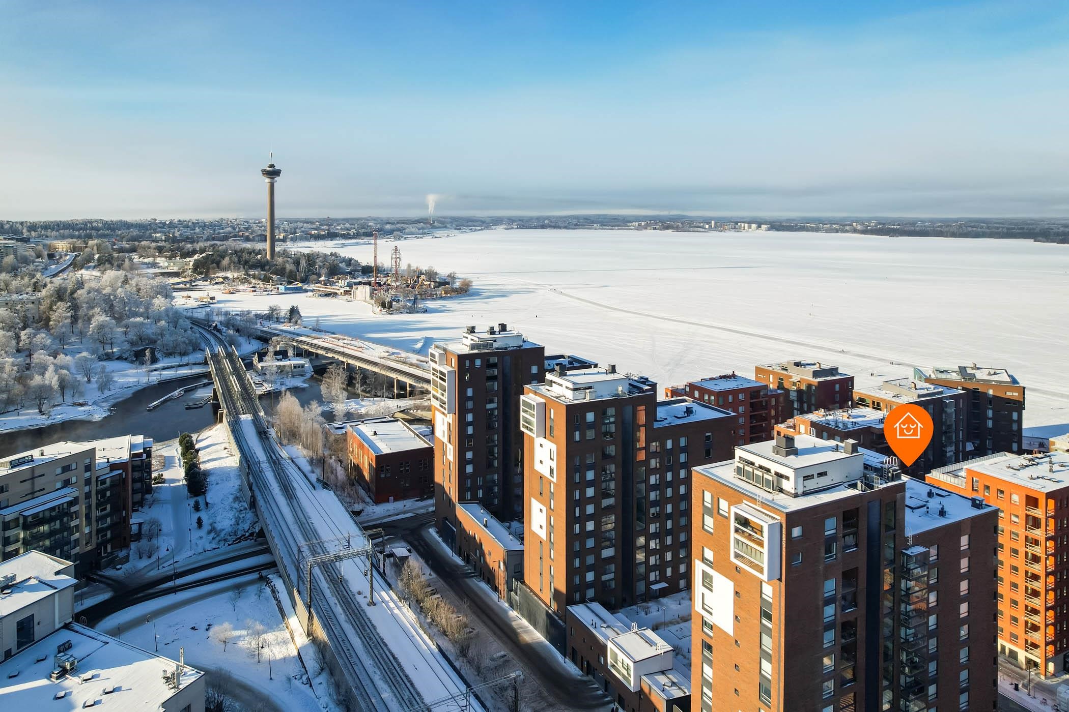 Tyylikäs 9. kerroksen saunallinen kulmahuoneisto tarjoaa laadukasta ja rauhallista asumista Tampereen parhaalla paikalla. Suuret ikkunat avautuvat Näsijärvelle, Näsinsillalle ja kanavareitille, tuoden upeat maisemat esiin vuoden jokaisena päivänä. Koko huoneiston levyinen lasitettu parveke tarjoaa viihtyisää lisätilaa aikaisin keväästä pitkälle syksyyn.