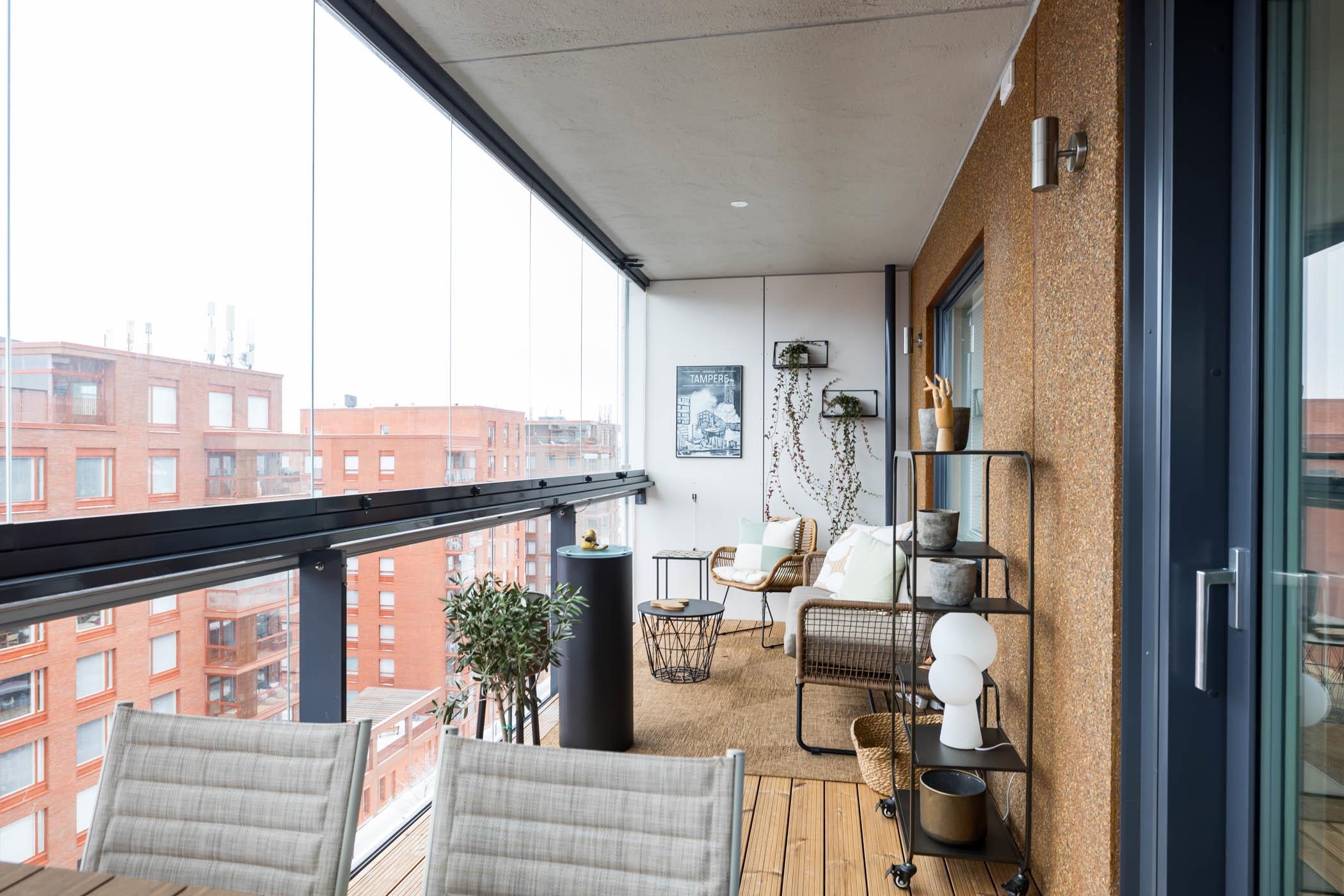 - Koko huoneiston levyinen lasitettu parveke on yksi tämän kodin helmistä. Lasitetulta parvekkeelta avautuu upeat maisemat kolmeen ilmansuuntaan länteen, pohjoiseen ja itään. Parvekkeelta avautuu maisemat Näsijärvelle, kanavareitille, Näisinsillalle ja kauniiseen lähiympäristöön.