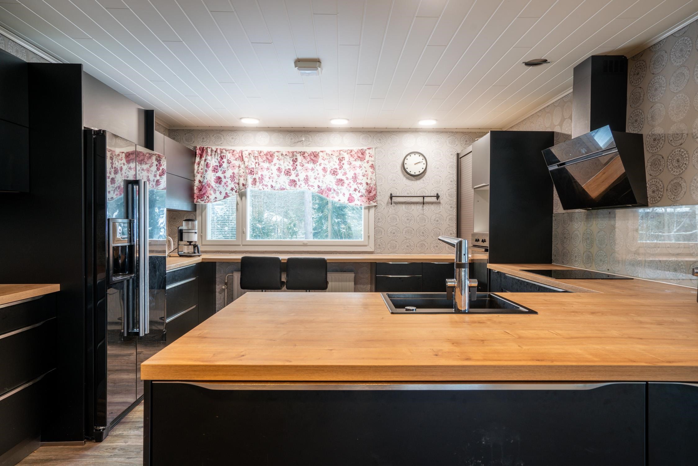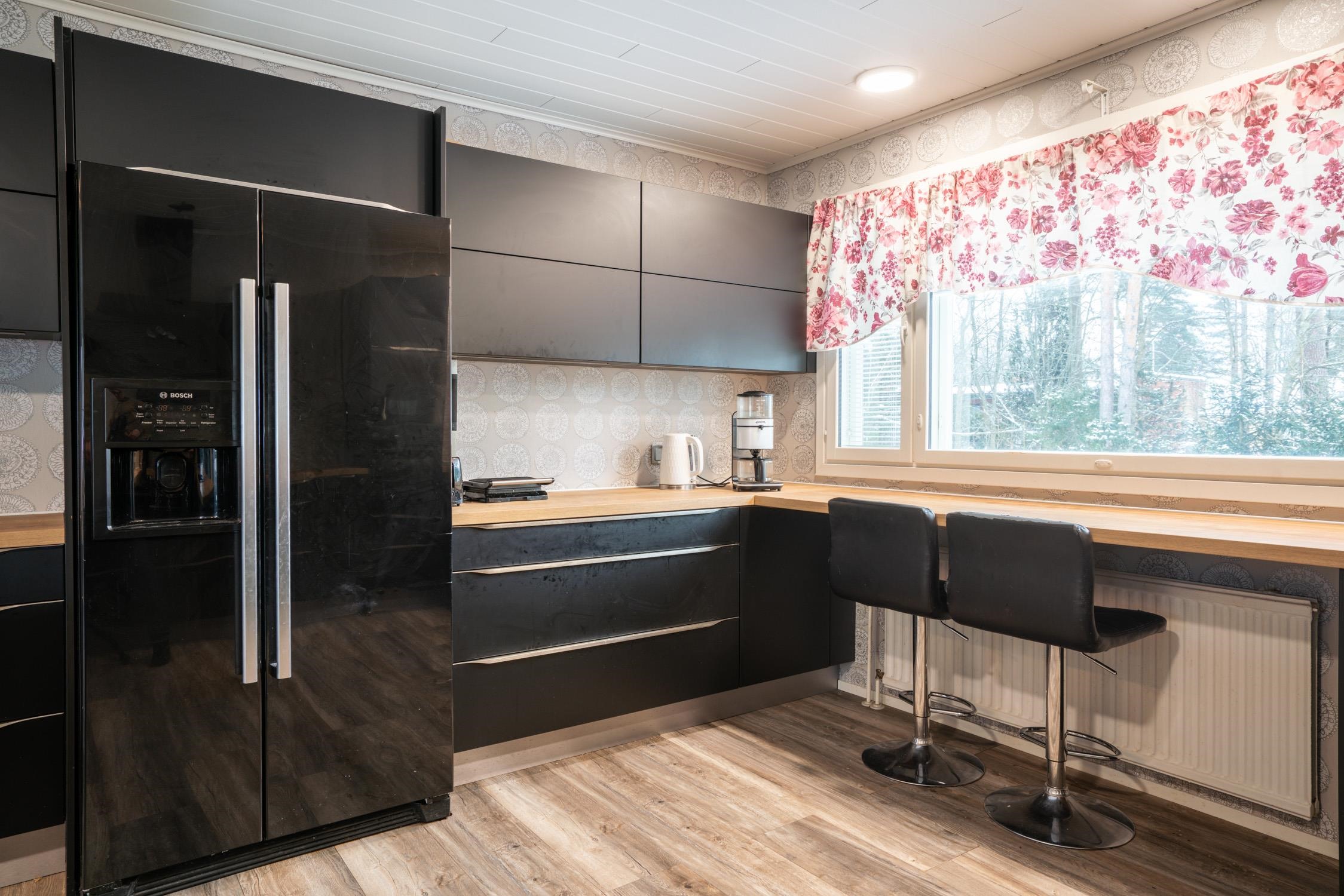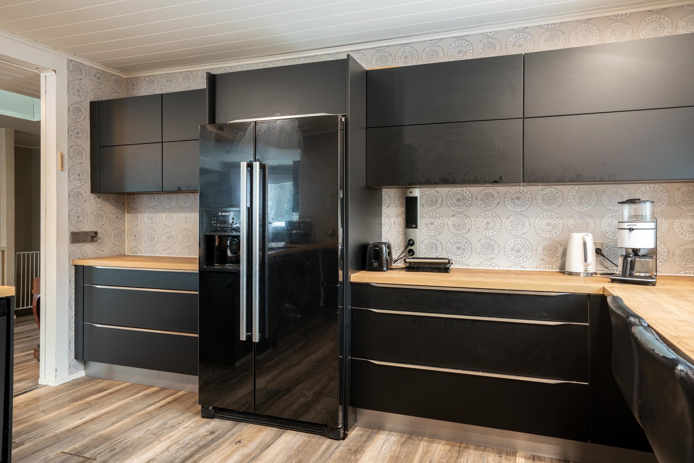 - Jääkaappipakastin Side-by-side, erillisuuni, liesitaso, induktioliesi, liesituuletin, astianpesukone. Keittiö remontoitu 2017. Noblessan kaapisto.