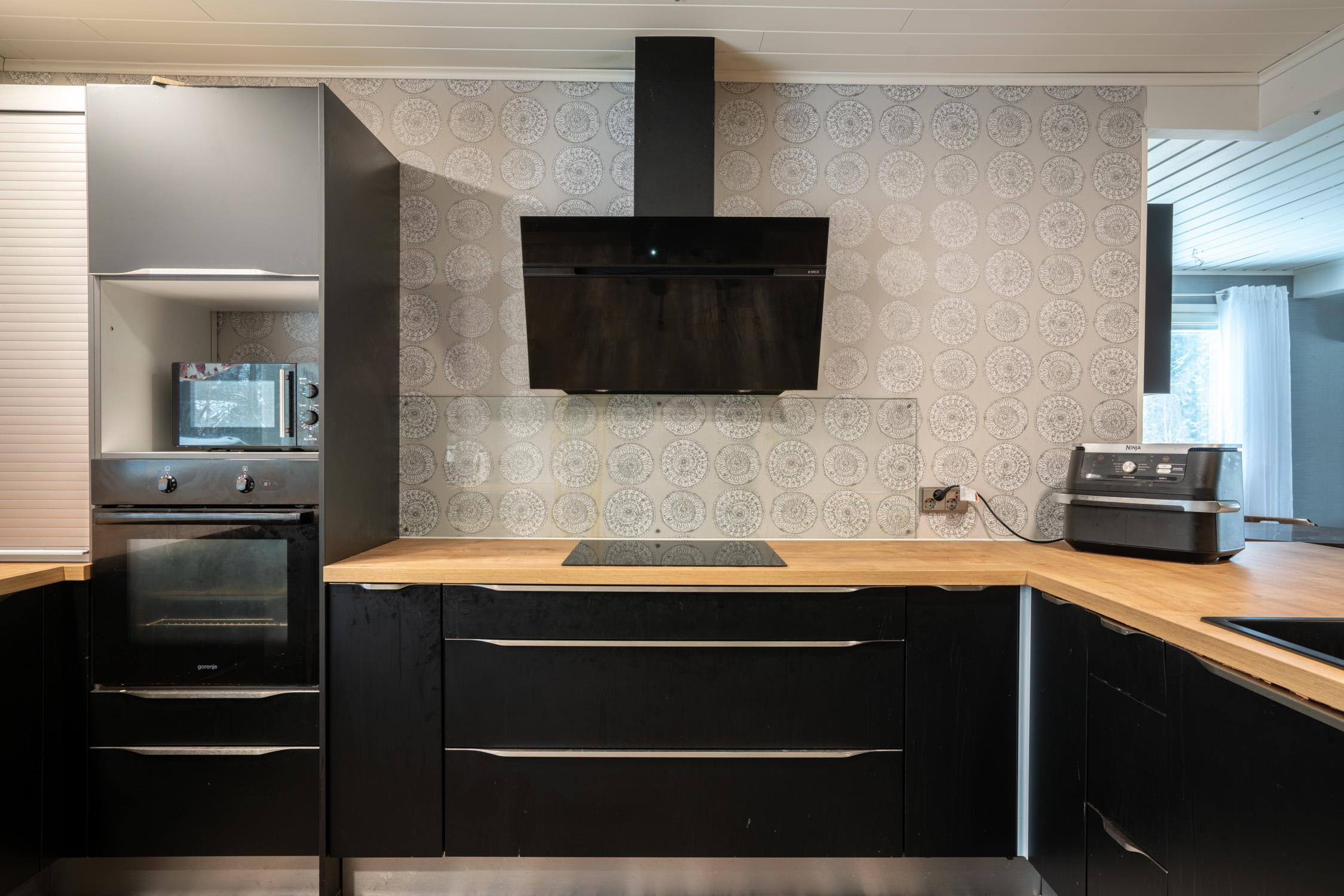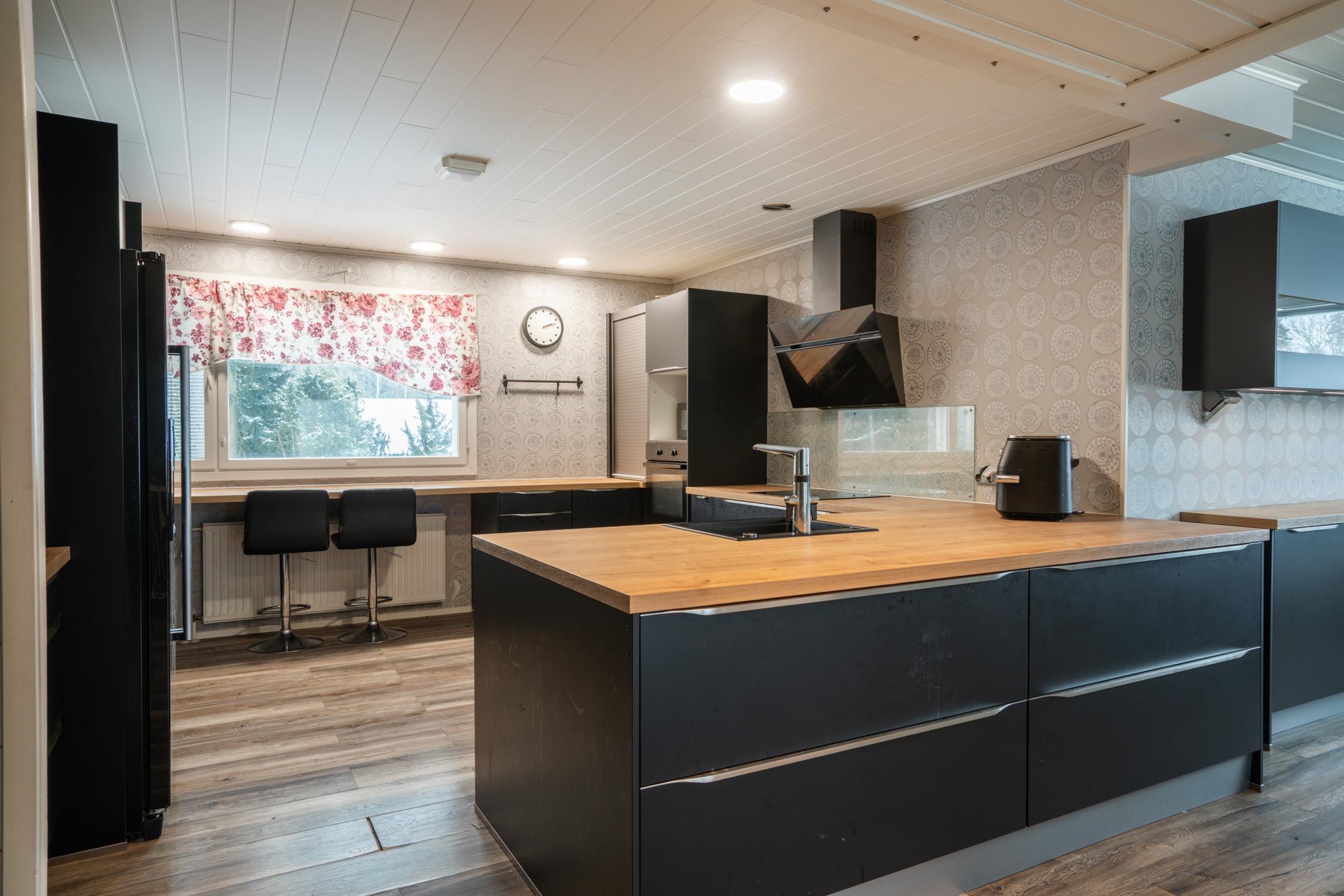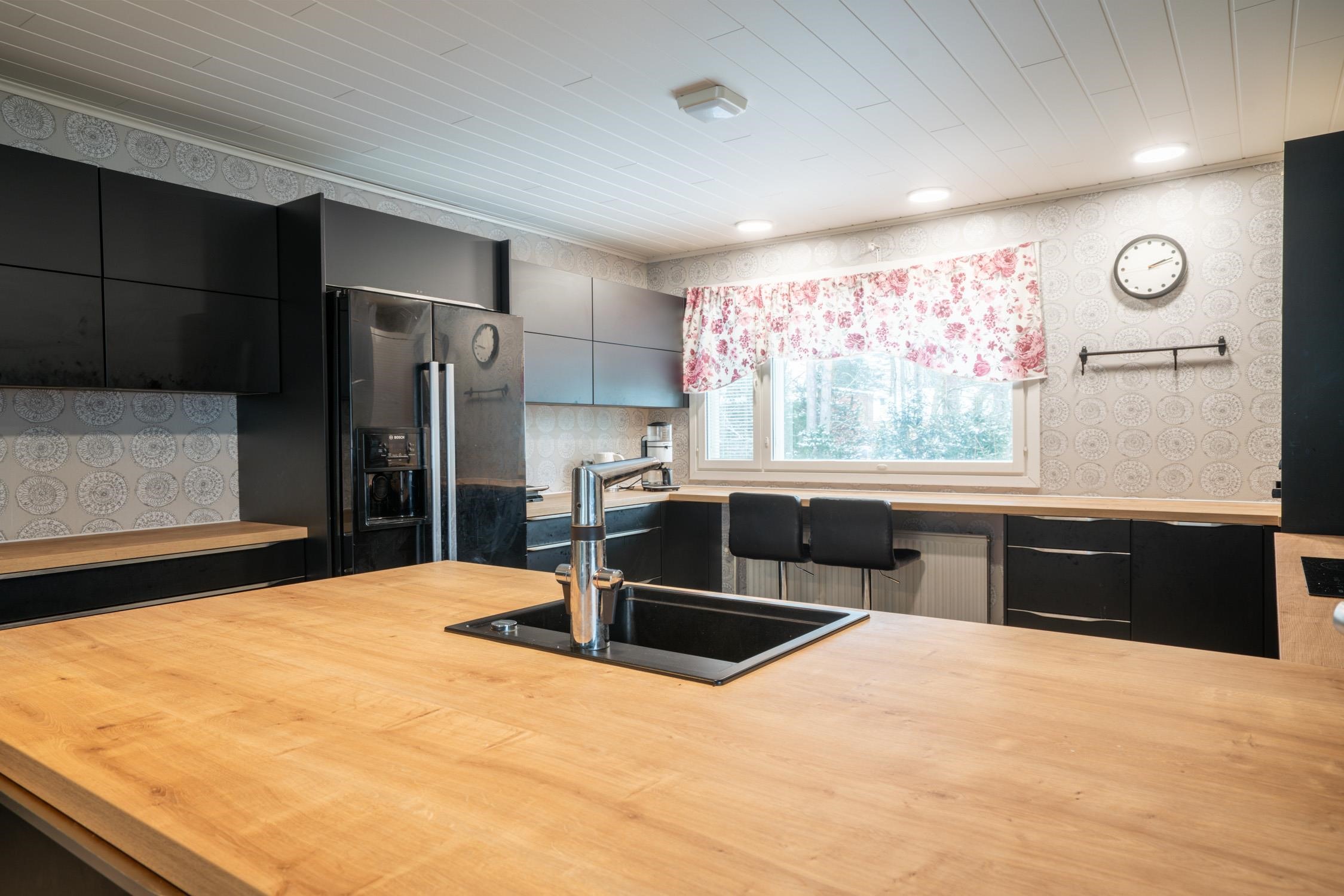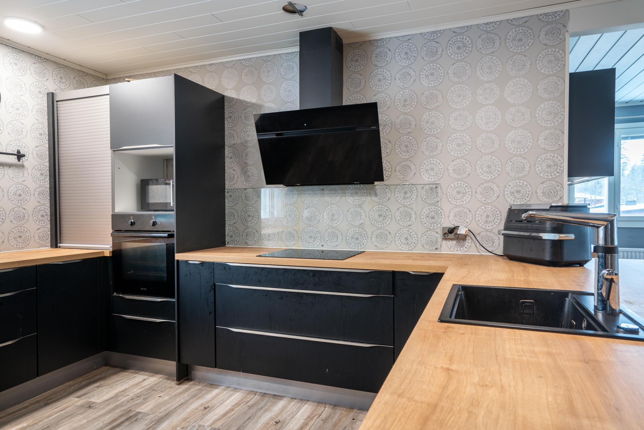 - Jääkaappipakastin Side-by-side, erillisuuni, liesitaso, induktioliesi, liesituuletin, astianpesukone. Keittiö remontoitu 2017. Noblessan kaapisto.