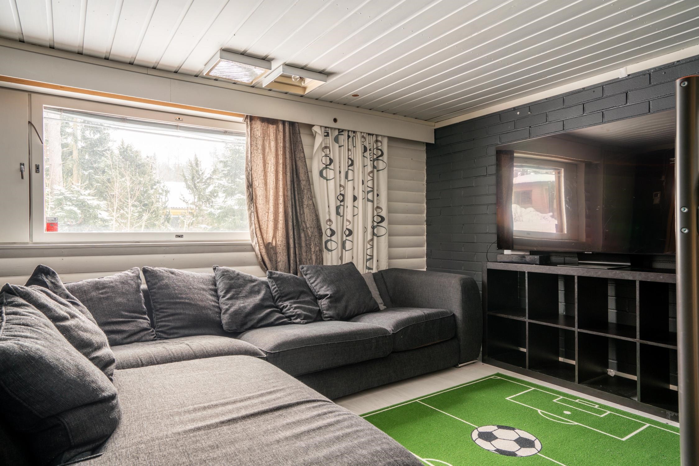 - 130 m2Muut tilat: kellarikerroksessa: takkahuone, askarteluhuone, wc, aula/eteinen, öljysäiliö, varasto, tekninen tila, autotalli. Muiden tilojen pinta-ala noin 130m² on arvioitu rakennuspiirustuksista. Rakennuspiirustusten mukaan kellarikerroksen rakennusala on 149m². Rakennuspiirustusten mukaan kellarikerroksen huonekorkeus on 2,25m.